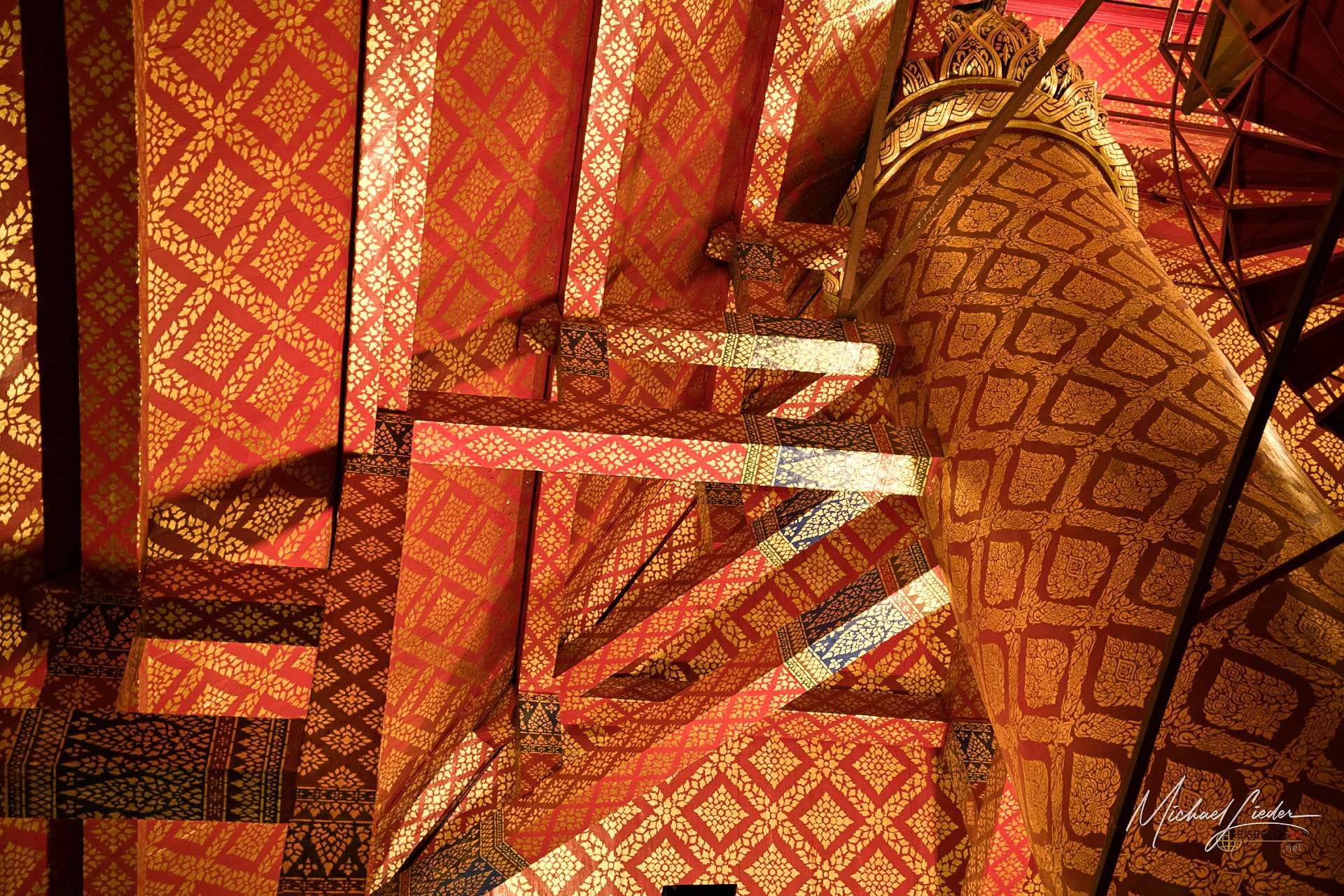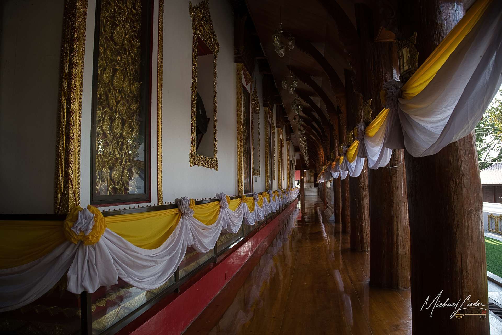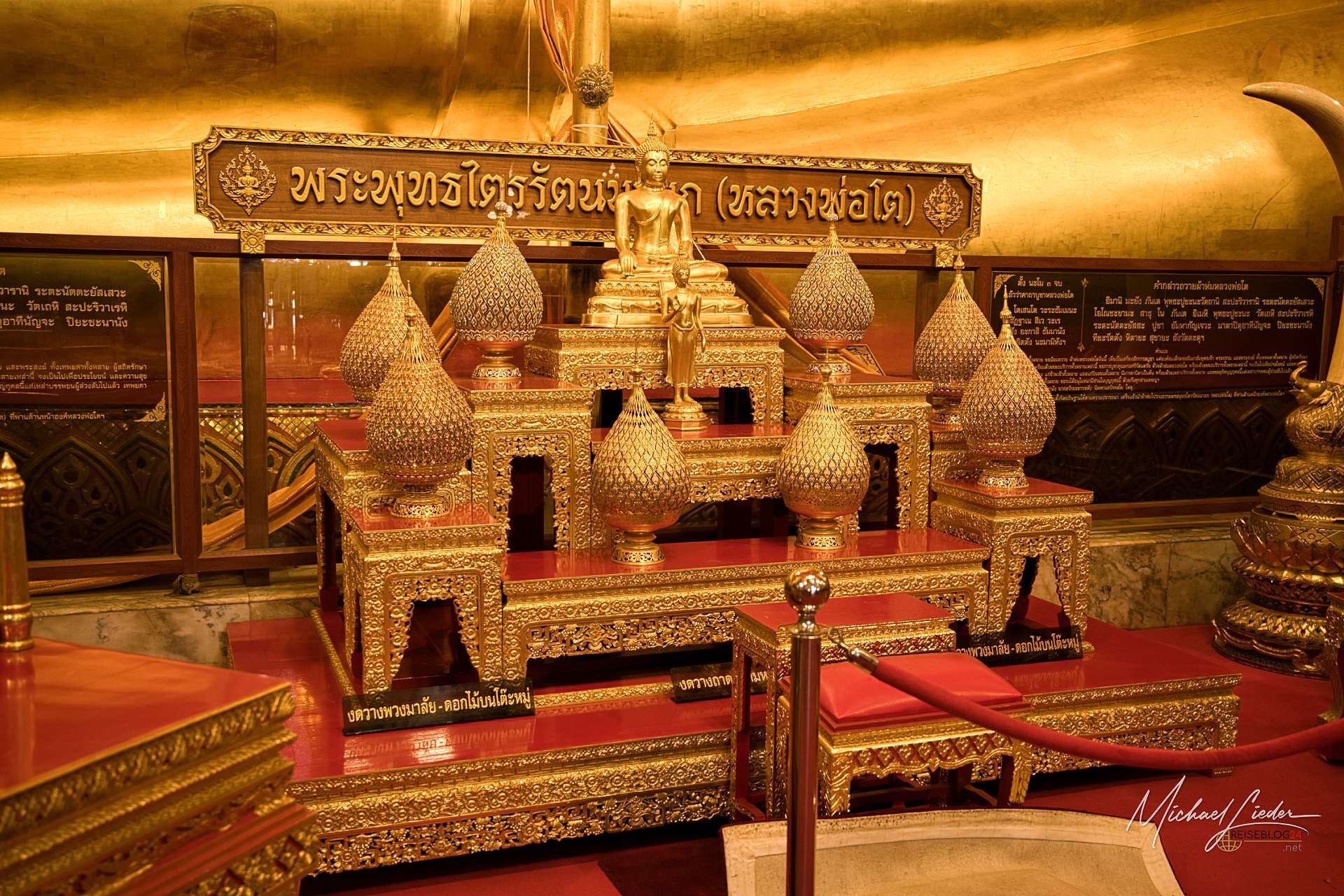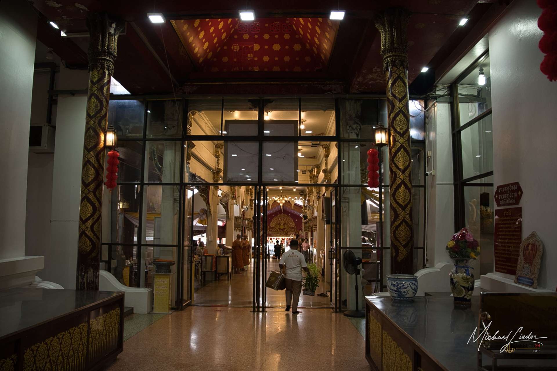 Der große Viharn wirkt wie eine eigene kleine Welt. Flankiert wird die Statue von Sariputta und Moggallana – zwei Figuren, die im Buddhismus ungefähr so viel Gewicht haben wie große Namen in anderen Religionen, nur ohne den ganzen PR-Apparat drumherum. Rundherum reihen sich unzählige kleine Buddha-Nischen, jede für sich ein leiser Moment, während draußen der Fluss unbeirrt weiterzieht, als hätte er all das schon tausendmal gesehen.