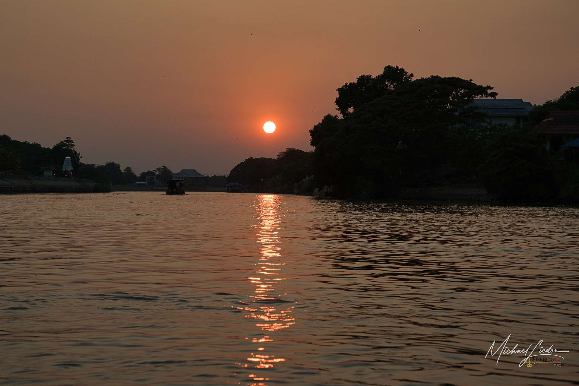 Ayutthaya liegt wie eine Insel im Zusammenspiel von drei Flüssen: dem Chao Phraya im Westen, dem Pa Sak im Osten und dem Lop Buri im Norden. Der Chao Phraya übernimmt dabei die Hauptrolle, zieht sich mächtig durch die Landschaft und umarmt die alte Stadt fast vollständig.