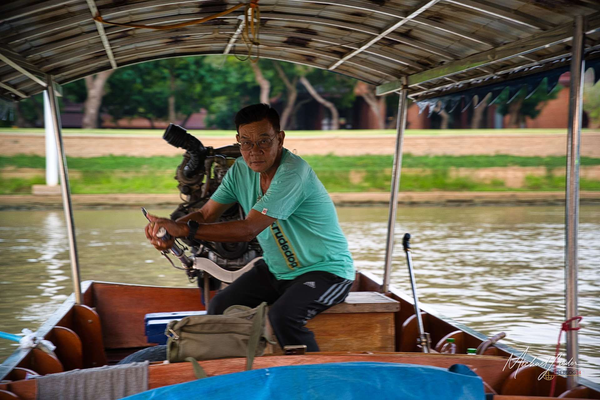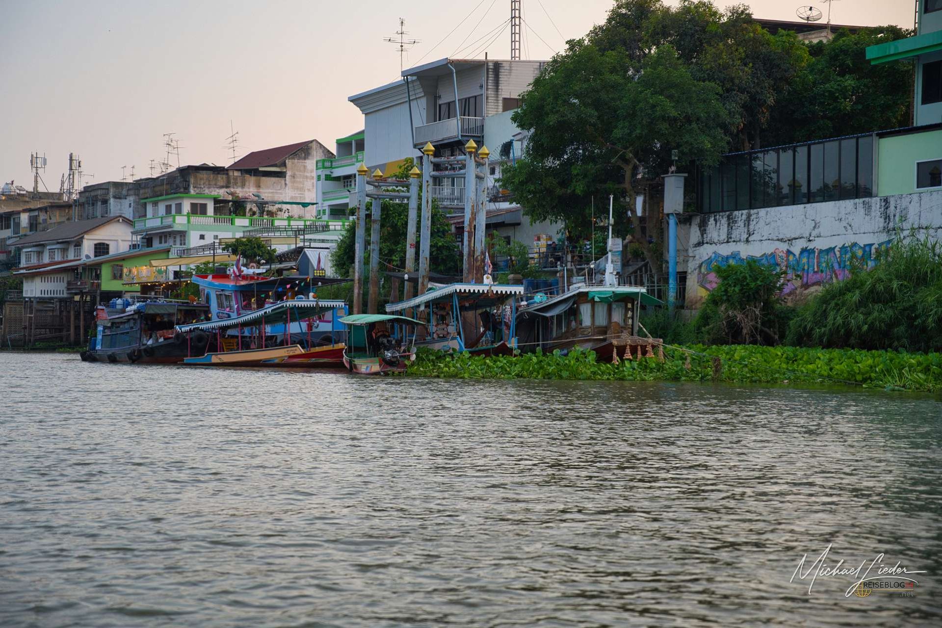 Für 1000 Baht gehörte das Boot plötzlich uns. Romantisch formuliert könnte man von Exklusivität sprechen. Realistisch betrachtet waren wir vermutlich einfach die letzten, die noch übrig waren. Aber manchmal ist genau das der Jackpot. Dieses langsame Dahingleiten hatte etwas Beruhigendes. Kein Lärm, kein Gedränge, nur Wasser, Licht und die Silhouetten der Stadt und ihrer Tempel im Abendlicht. Unser Kapitän hatte die Ruhe weg, steuerte uns an die besten Spots und legte immer wieder kleine Stopps ein, damit wir fotografieren konnten, ohne uns wie Touristen auf Zeitdruck zu fühlen.
