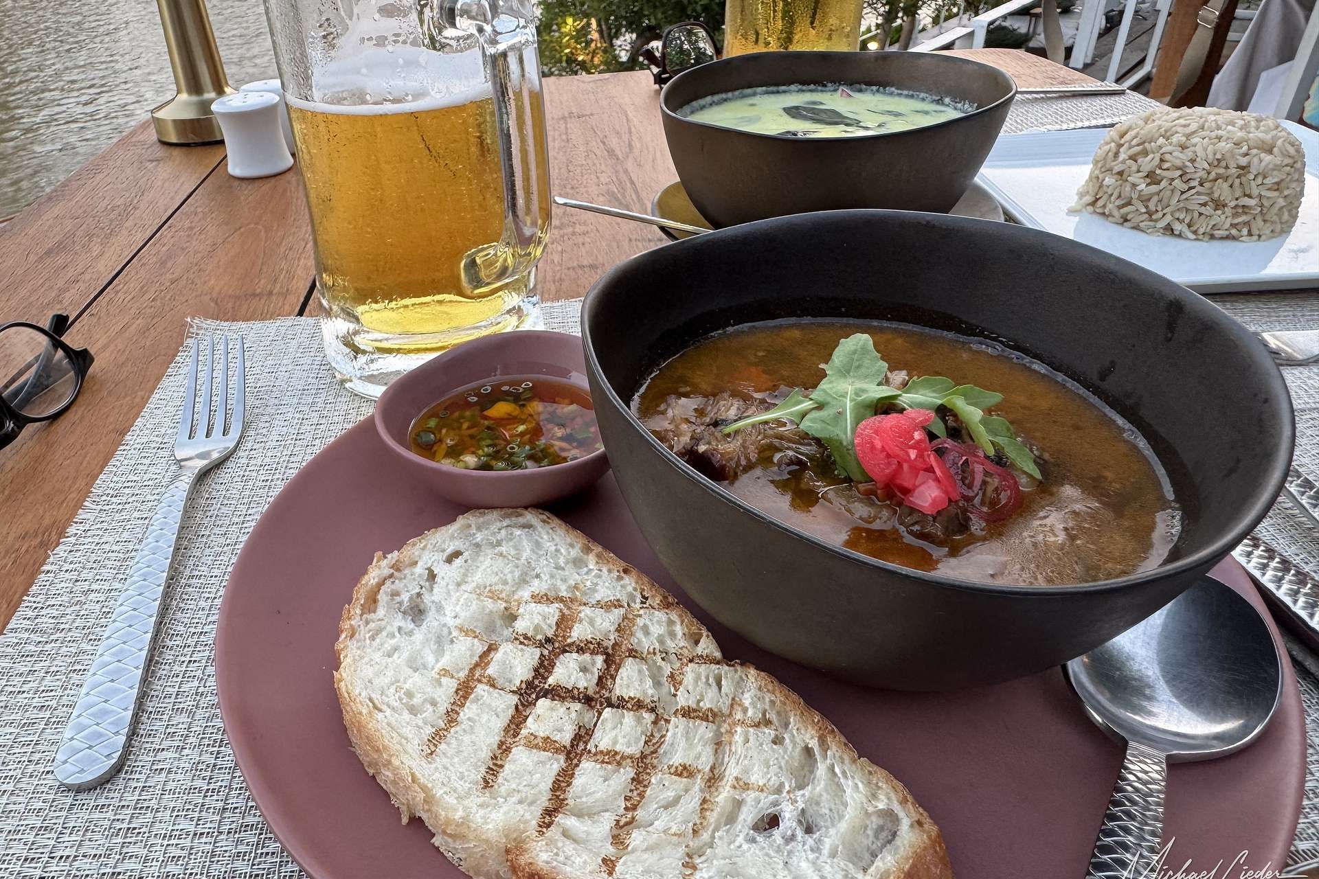 Und dann gibt es noch die andere Seite: à la carte, ein bisschen schicker, aber ohne diese steife Attitüde, die einem den Appetit verdirbt. Die Restaurants ziehen sich wie eine lockere Perlenkette entlang des Flusses, jedes mit eigenem Charakter, aber alle mit dieser entspannten Selbstverständlichkeit, die man sich als Reisender eigentlich wünscht.