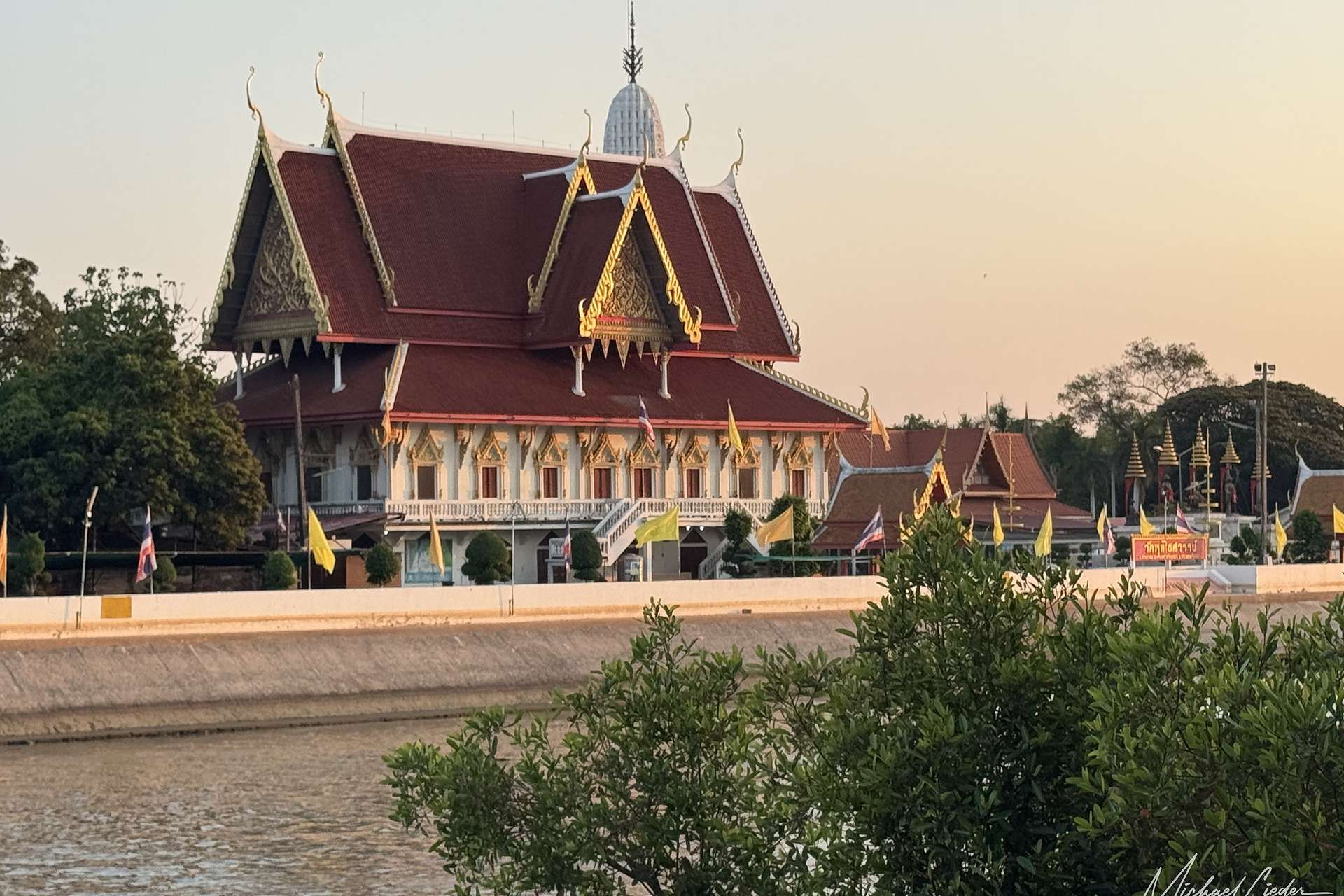 Am Ufer des Pa-Sak-Flusses, ein Stück südöstlich der alten Inselstadt Ayutthaya, steht dieser Tempel und macht genau das, was viele Orte längst verlernt haben: Er lebt. Kein museales Schweigen, kein inszeniertes Ruinengefühl für Instagram. Stattdessen Mönche, die hier ihren Alltag verbringen, beten, lernen, lehren – und ganz nebenbei mit einer Ruhe durch die Hallen gleiten, die man selbst nach drei Kaffees nicht erreicht.