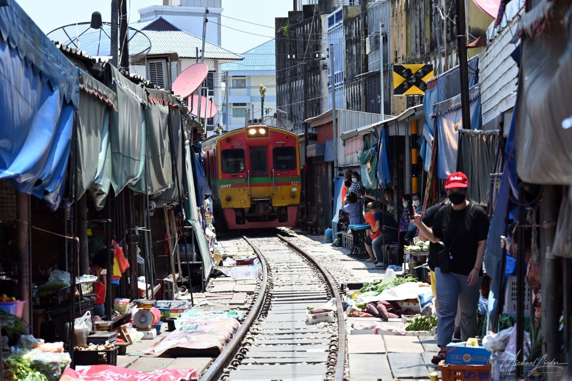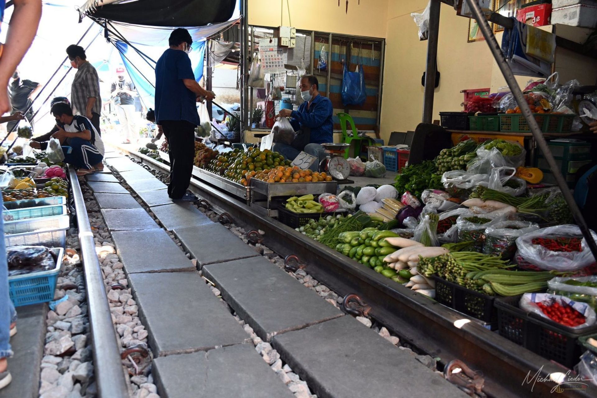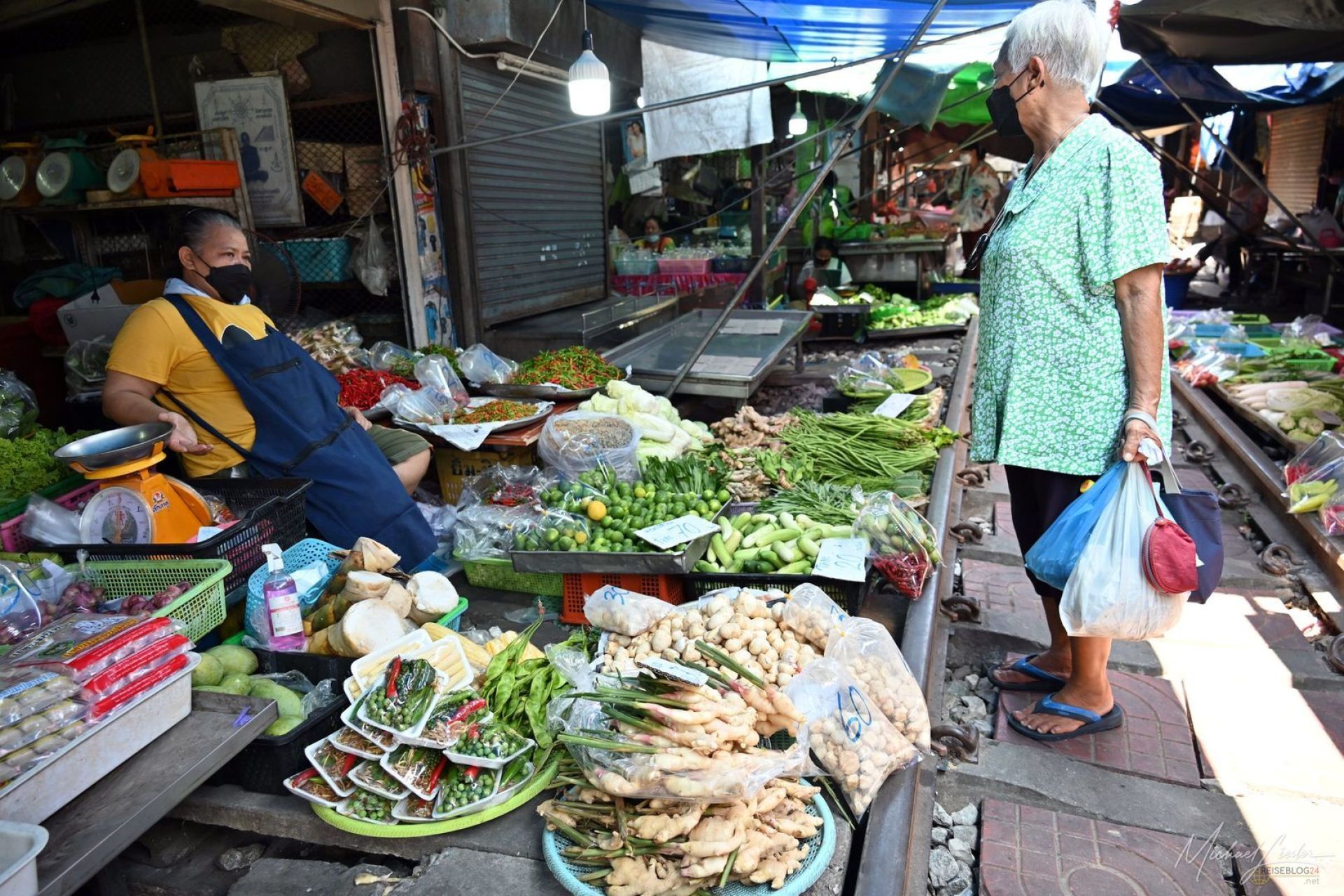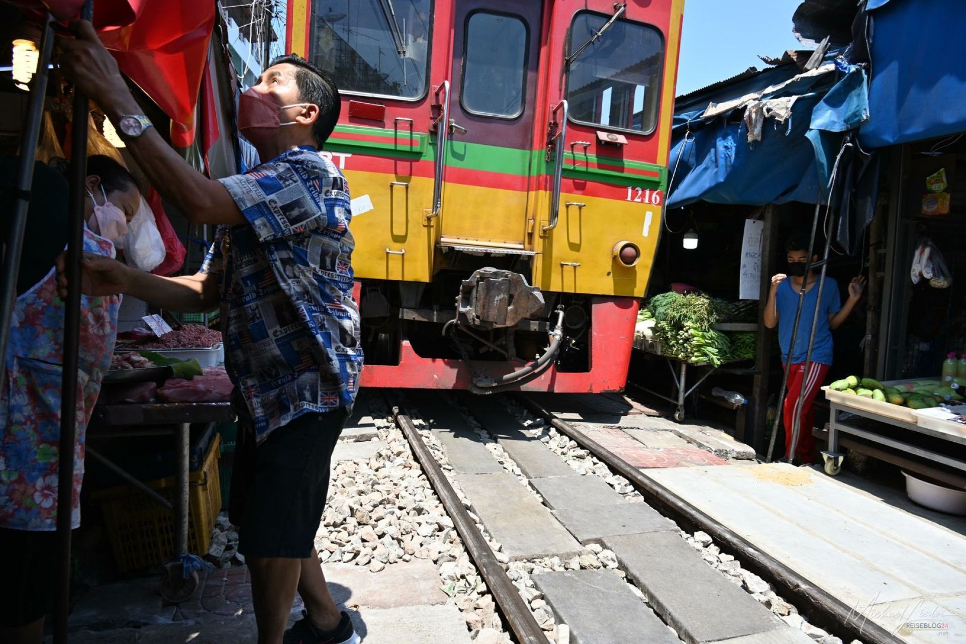 Der Moment, wenn der Zug kommt, ist erstaunlich unspektakulär. Kein Drama, kein nervöses Geschrei. Stattdessen ein leises Signal, ein kurzer Blickwechsel – und plötzlich beginnt sich der Markt zu verwandeln. Planen werden hochgezogen, Stände rücken ein paar Zentimeter zurück, alles greift ineinander wie ein eingespieltes Uhrwerk. Während man selbst noch versucht zu begreifen, ob man jetzt besser aus dem Weg gehen sollte, ist hier längst alles geregelt.