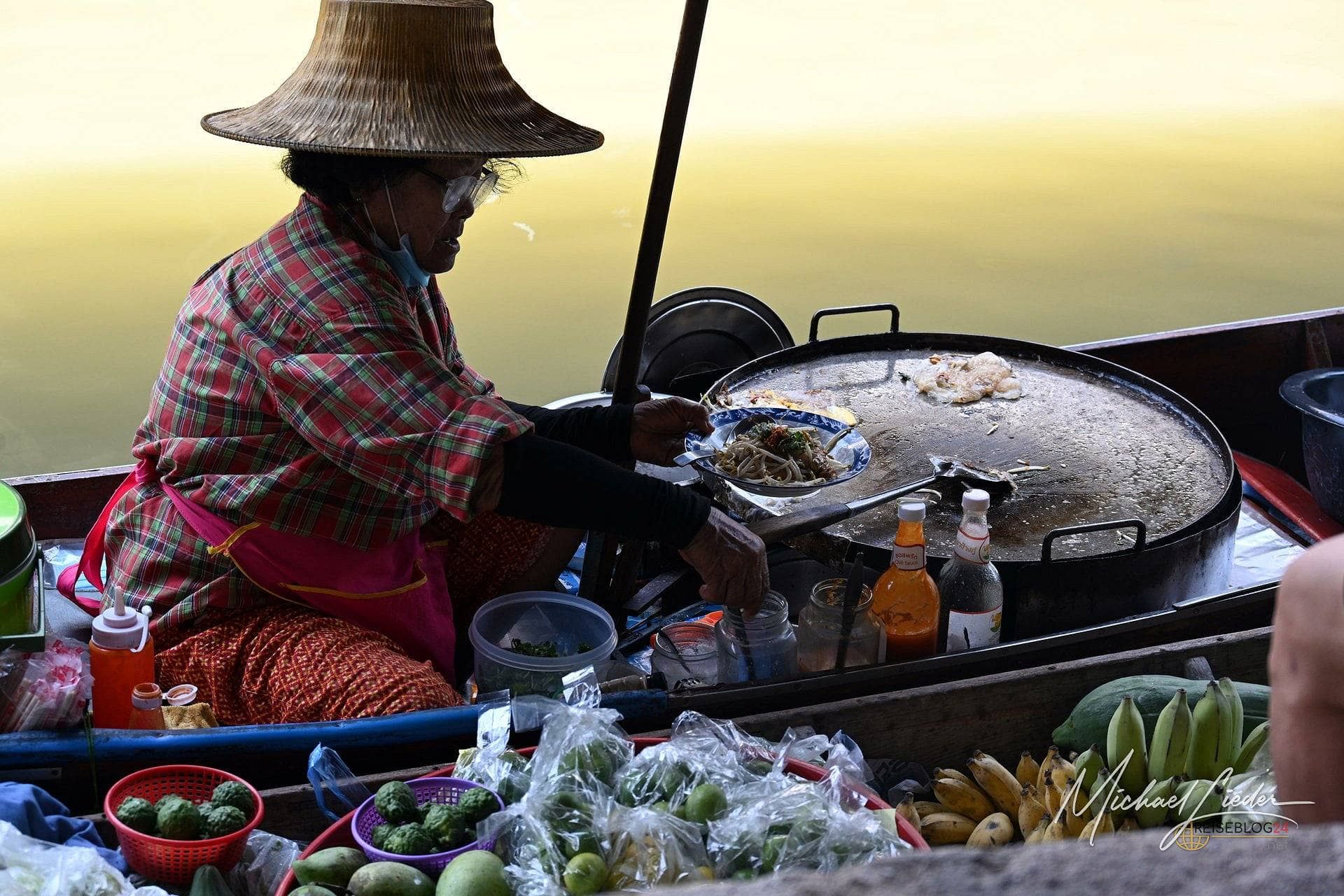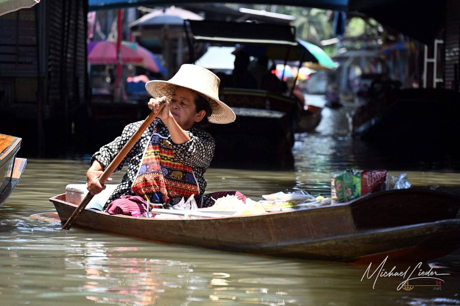 Damnoen Saduak ist kein verstecktes Juwel, das darauf wartet, entdeckt zu werden. Dafür ist es viel zu laut, zu bunt und zu bekannt. Aber ich denke, darin liegt der Reiz. Wer bereit ist, das Offensichtliche auszuhalten und sich auf das kleine Chaos einzulassen, bekommt kein perfektes Postkartenmotiv – sondern ein Stück Thailand, das sich selbst nicht ganz ernst nimmt und genau deshalb denke ich oft mit einem Lächeln daran zurück.