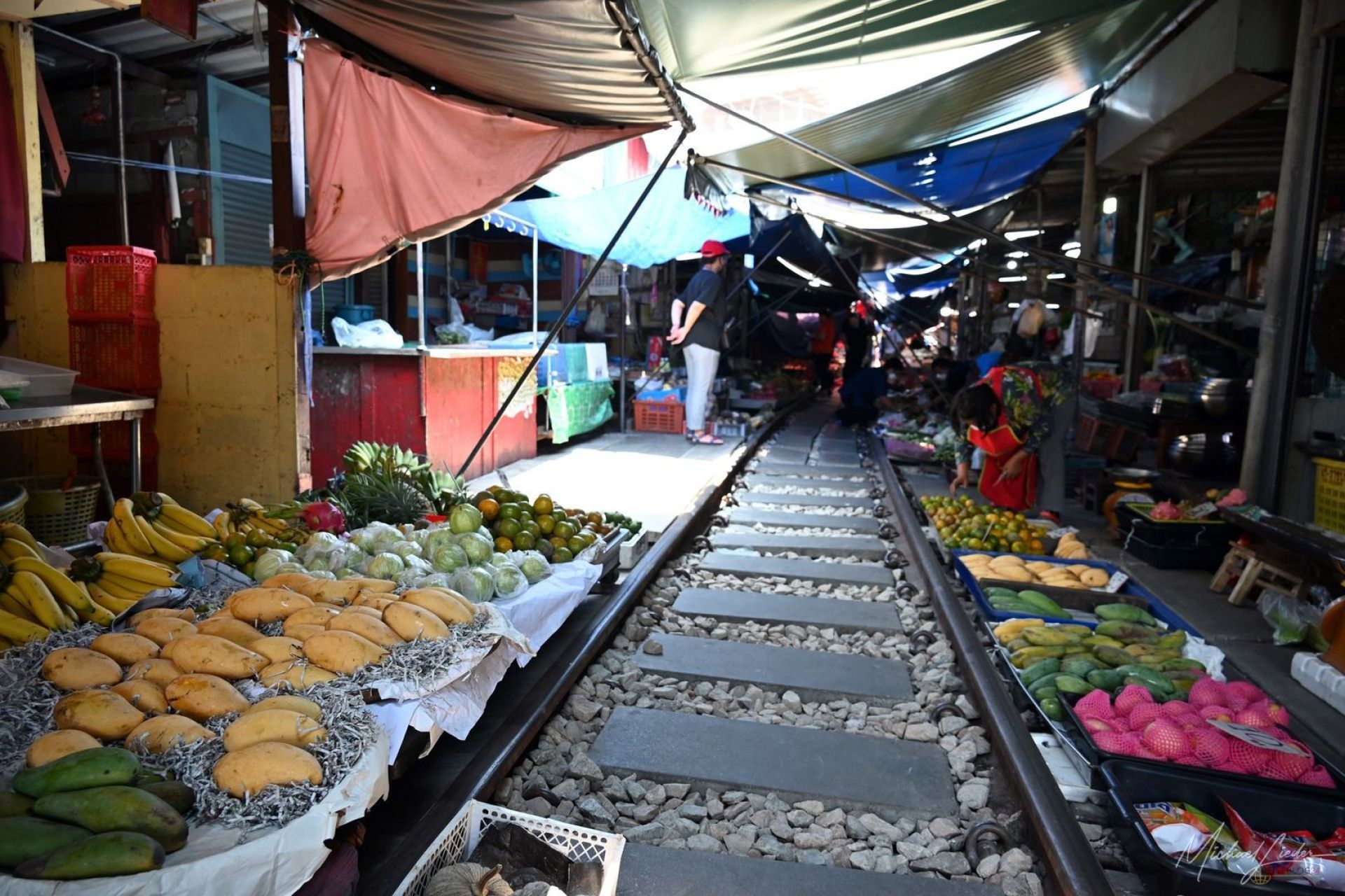Es gibt Orte, bei denen man automatisch misstrauisch wird. Nicht, weil sie gefährlich sind, sondern weil sie sich anfühlen wie eine dieser Geschichten, die irgendjemand beim dritten Bier erfunden hat. Der Railway Market in Mae Klong gehört genau in diese Kategorie. Zwischen Fischgeruch, tropischer Hitze und Obstständen, die sich scheinbar bis in alle Richtungen ausbreiten, kommt unweigerlich dieser Gedanke: Hier fährt doch niemals ernsthaft ein Zug durch.