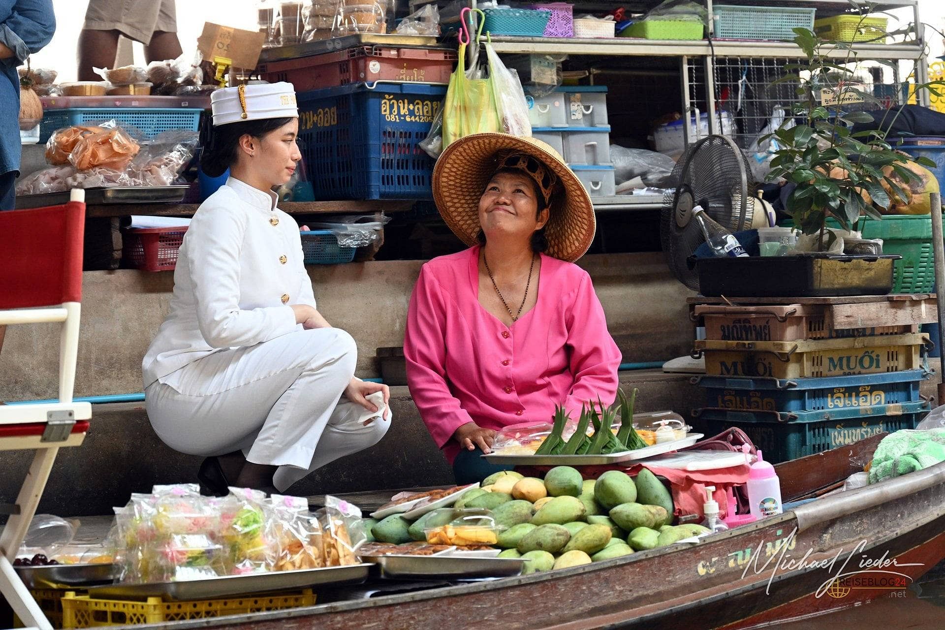 Natürlich ist das hier touristisch. Nicht etwas, sondern ziemlich offensichtlich. Kameras klicken im Dauerfeuer, Longtail-Boote knattern durchs Wasser, und jemand versucht, dir noch schnell eine Kokosnuss zu verkaufen, bevor du überhaupt verstanden hast, wie du hier gelandet bist. Aber genau zwischen diesen Momenten blitzt sie auf, diese eigentliche Idee eines schwimmenden Marktes – lebendig, improvisiert, manchmal charmant chaotisch.
