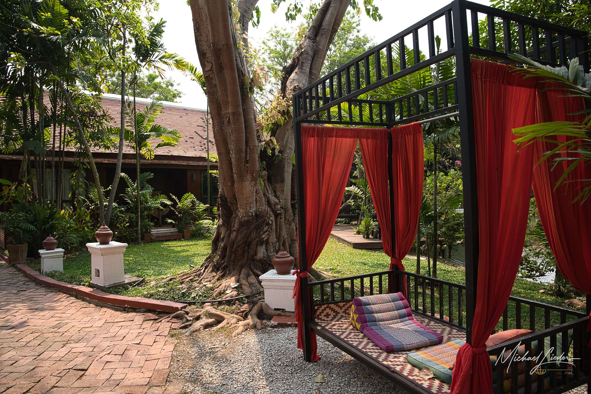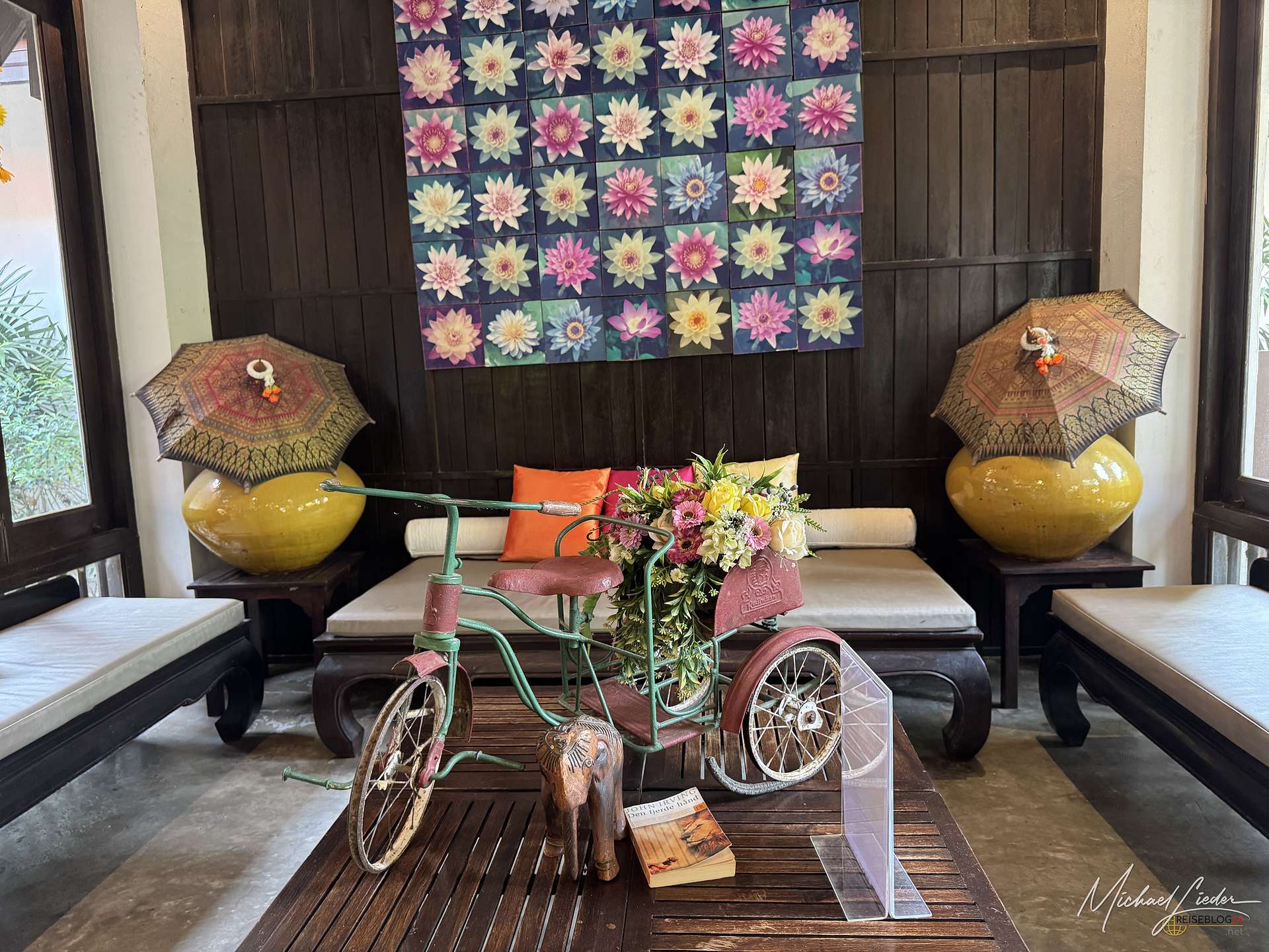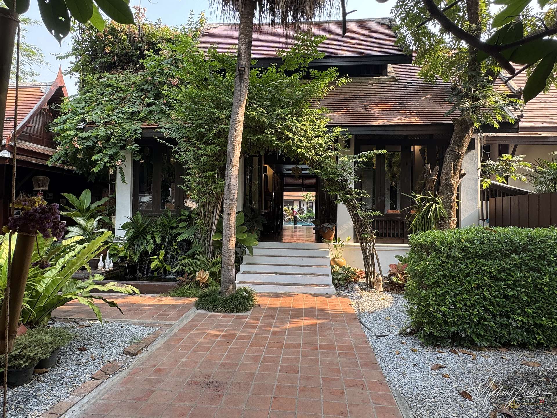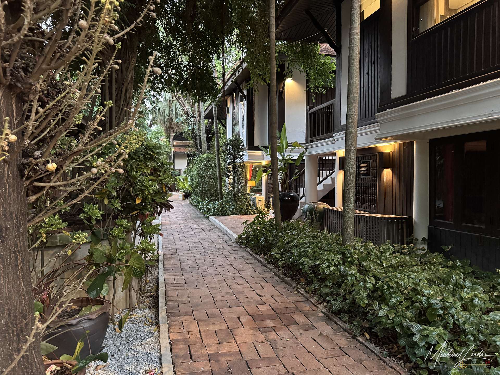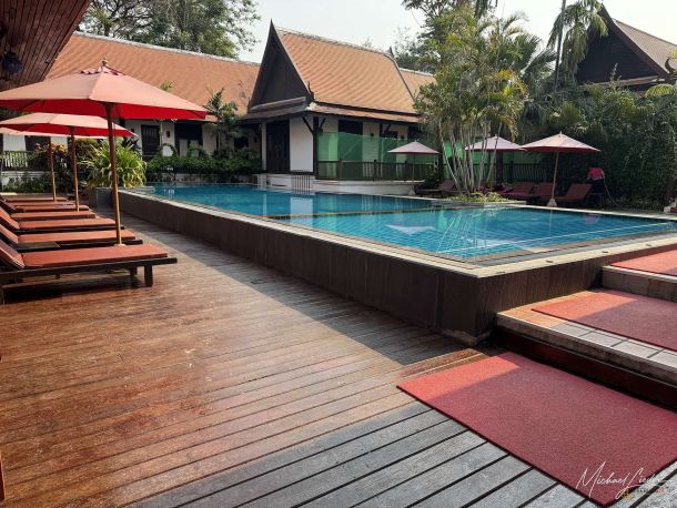 Vom Hotel aus ließ sich die Stadt und auch die nähere Umgebung bequem erkunden. Mit dem Mietwagen war das natürlich besonders einfach, aber auch per Fahrrad ist man hier völlig problemlos unterwegs. Besonders positiv überrascht hat mich die Gartenanlage. Das Hotel liegt mitten in einer üppigen, wunderbar gepflegten grünen Oase, die ich in Zentralthailand so ehrlich gesagt nicht erwartet hätte. Gerade in der High Season, wenn die Hitze zuverlässig jede Bewegung in eine kleine Tagesaufgabe verwandelt, war dieses satte Grün nicht nur schön anzusehen, sondern auch ein echter Segen. Bäume, Schatten und ein angenehmes Umfeld sind dann plötzlich mehr wert als jede noch so dekorative Hotellobby. Hier wirkte vieles angenehm entspannt, stimmig und einfach wohltuend.