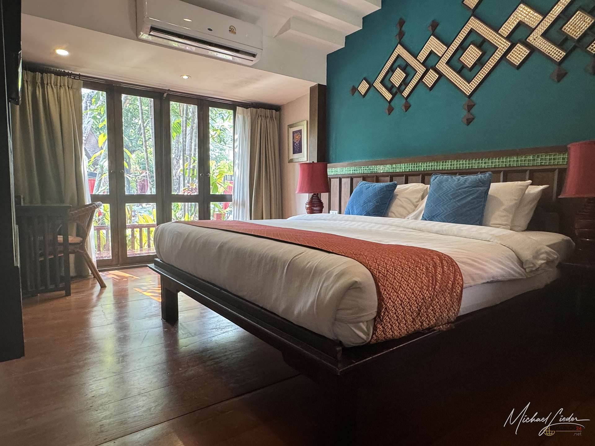 Im Hotel gibt es verschiedene Zimmertypen, wir haben uns für einen Bungalow mit großem Doppelbett entschieden und würden das jederzeit wieder so machen. Gerade für ein paar entspannte Tage ist das eine erstaunlich angenehme Art, seine Zeit zu verbringen, weit weg vom klassischen Hotelflur-Charme, der oft ungefähr so viel Atmosphäre hat wie ein Wartezimmer mit Klimageräusch. Besonders positiv fiel direkt bei der Ankunft auf, dass das Zimmer bereits vorbereitet war. Die Klimaanlage lief schon, was in dieser Gegend kein Luxus, sondern fast schon ein Akt gelebter Gastfreundschaft ist. Nach ein paar Minuten draußen weiß man so etwas nämlich deutlich mehr zu schätzen als jede noch so kunstvoll gefaltete Handtuchfigur.