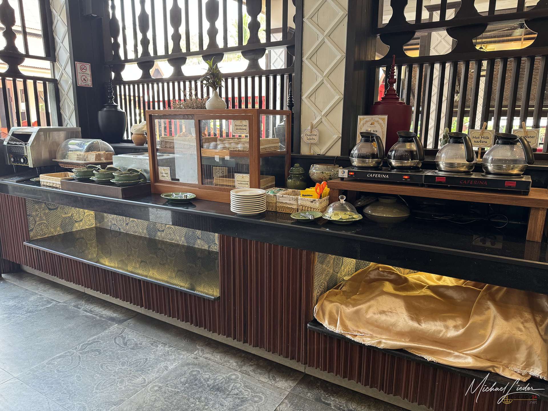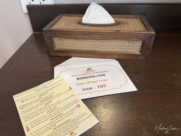 Wie an vielen Orten in Thailand gibt sich auch hier das Personal große Mühe, den Aufenthalt so angenehm wie möglich zu machen, nur eben erfreulicherweise ohne dieses aufgesetzte Dauerlächeln, das andernorts manchmal schon zur kleinen Kunstform erhoben wird. Schon bei der Ankunft beginnt der Service sehr aufmerksam: Das Gepäck wird direkt am Parkplatz übernommen, mit einem großen Wagen zur Rezeption und später weiter bis zum Bungalow gebracht. Dort wartet erst einmal ein kalter Tee, der nach der Anreise nicht nur willkommen ist, sondern fast schon wie eine kleine Rettung wirkt.