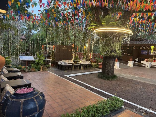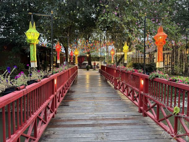 Über das große Gelände zieht sich ein kleiner Fluss, der an einer Stelle angestaut wird und dem Ort noch einmal mehr Ruhe verleiht. An den Ufern laden gemütliche Sitzplätze zum Verweilen ein. Besonders schön sind diese offenen, dekorativen Liegeflächen unter schattigen Bäumen, irgendwo zwischen Tagesbett und thailändischer Entspannungskunst. Wie die genau heißen, weiß vermutlich nur jemand mit Innenarchitektur-Diplom, aber bequem und stimmungsvoll sind sie allemal. Überall merkt man, dass Bestehendes erhalten und sinnvoll eingebunden wurde. Genau das macht den Charakter dieses Hotels aus: keine seelenlose Perfektion, sondern eine kleine Oase mit Persönlichkeit.