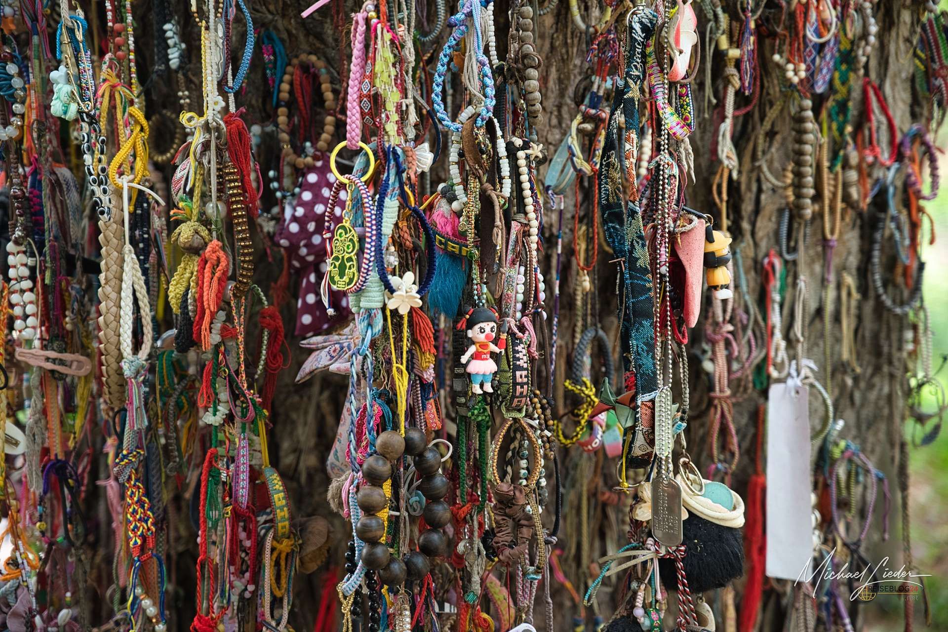 Ich gehe zwischen den Bäumen hindurch, die heute Schatten spenden, wo früher Schreie waren. Es ist ruhig. Unnatürlich ruhig. Und dann stehe ich vor diesem Baum. Bunte Bänder, kleine Stofftiere, Spielzeug. Ein Ort, der aussieht, als hätte jemand versucht, etwas Unfassbares mit Farbe zu überdecken.