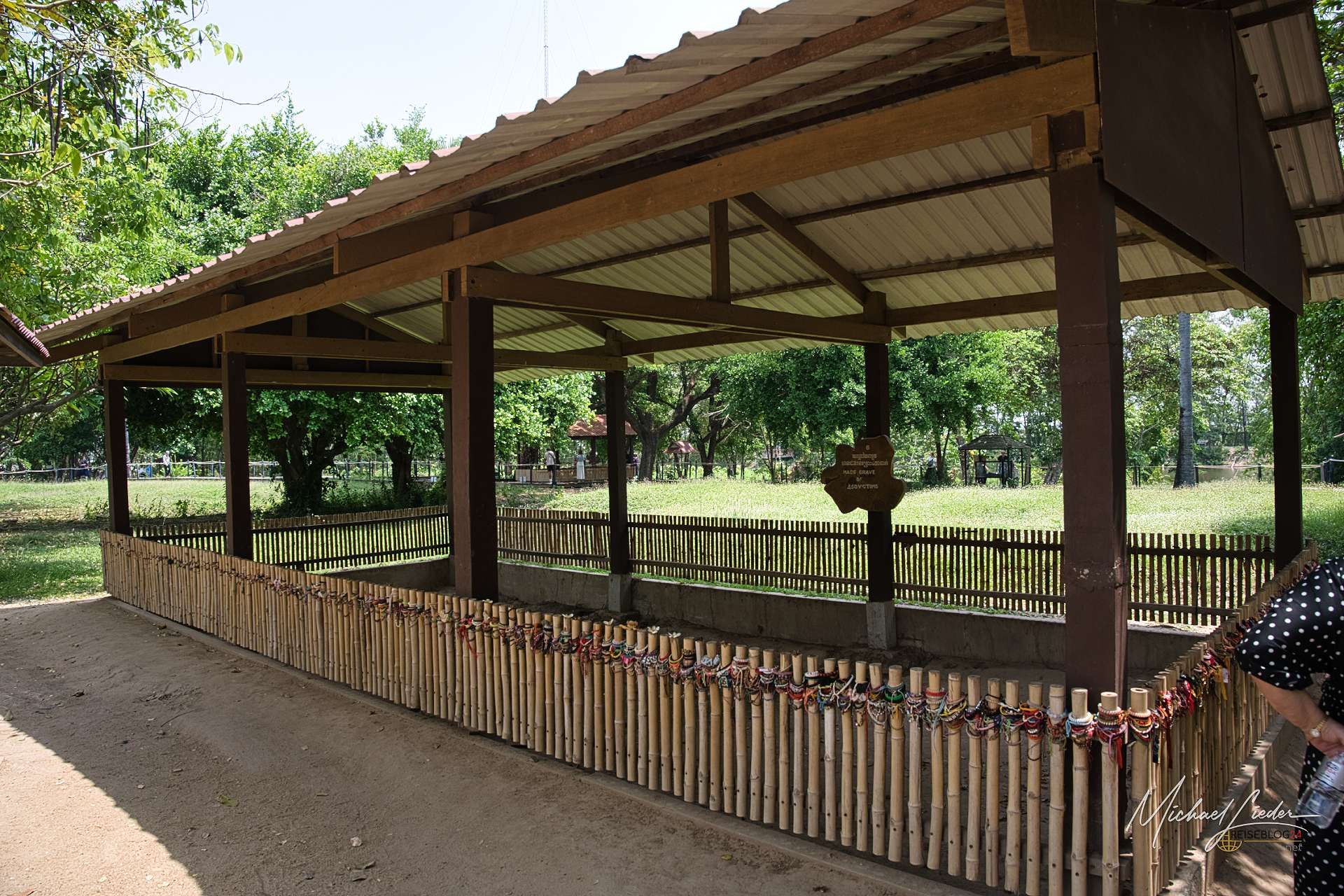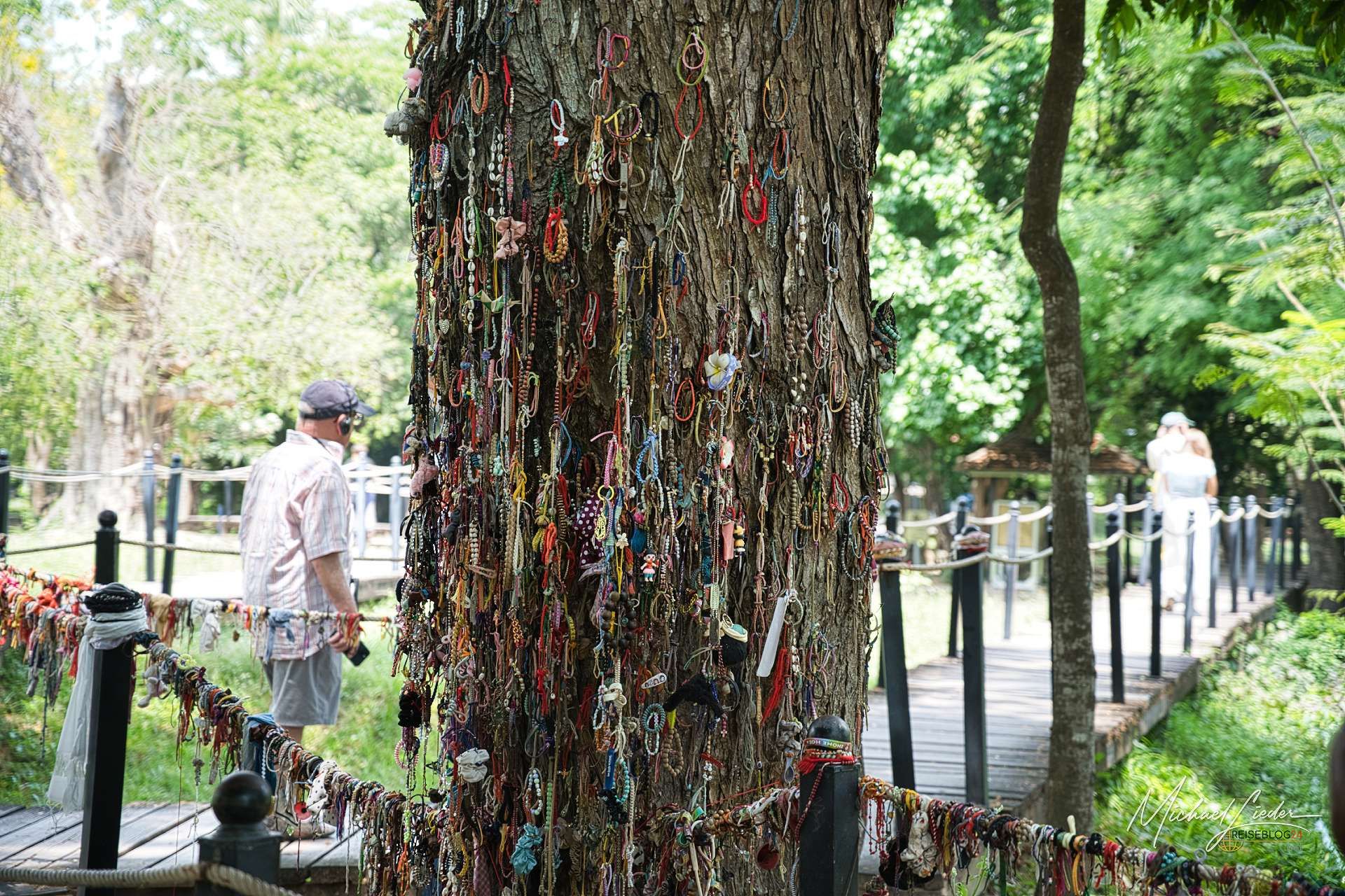Schon beim Betreten spüre ich, dass dieser Ort anders ist. Es ist ruhig. Ungewöhnlich ruhig. Keine Marktstände, kein Stimmengewirr, nur ein paar Besucher, die langsam über die Wege gehen. Der Boden wirkt auf den ersten Blick unscheinbar, fast friedlich. Wiese, ein paar Bäume, ein kleiner Teich. Und doch weiß ich, dass genau hier tausende Menschen ermordet und in Massengräbern verscharrt wurden. Ich gehe langsam weiter. An manchen Stellen stehen kleine Tafeln, die erklären, was hier vorgefallen ist. Ein Baum, an dem früher Lautsprecher hingen, um Schreie zu übertönen. Eine Vertiefung im Boden – ein ehemaliges Massengrab. Und plötzlich sehe ich etwas im Sand liegen: kleine Stoffreste. Später auch Knochenfragmente. Nach starken Regenfällen, erzählt der Audioguide, spült die Erde immer wieder Relikte an die Oberfläche. Geschichte liegt hier nicht hinter Glasvitrinen. Sie liegt direkt vor meinen Füßen. Im Zentrum der Anlage steht die Stupa. Ein hoher, gläserner Turm, gefüllt mit tausenden Schädeln. Ich bleibe eine ganze Weile davor stehen. Jeder einzelne Schädel steht für ein Leben, für eine Geschichte, für jemanden, der einmal Familie hatte, Träume, vielleicht ganz gewöhnliche Pläne für den nächsten Tag.