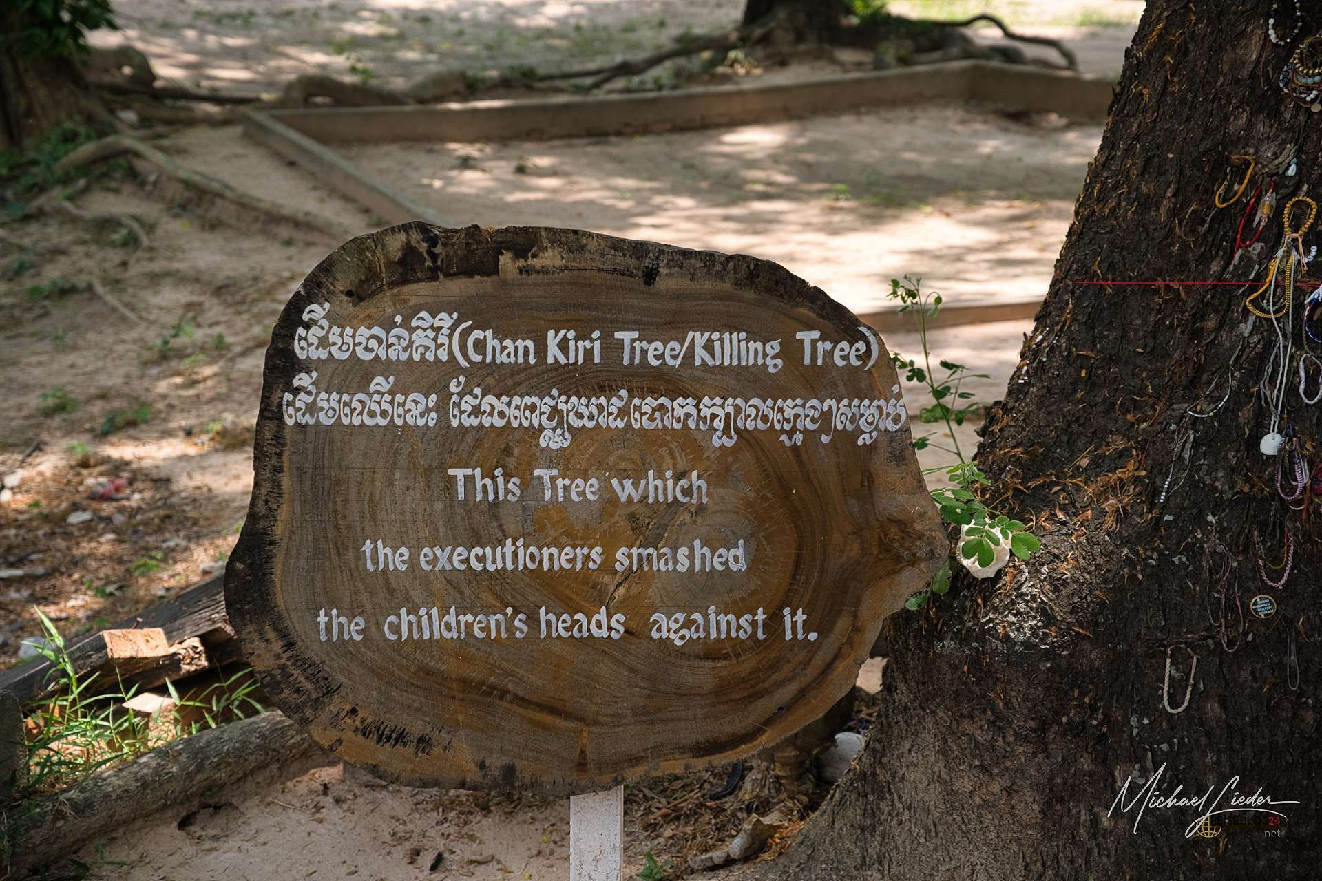 Hier wurden Babys ermordet. Sie wurden aus den Armen ihrer Eltern gerissen, an den Beinen gepackt und gegen diesen Baum geschlagen. Kein Zynismus, kein Versuch der Übertreibung – genau so ist es geschehen. Ich stehe davor und merke, wie einem dieser Ort nicht nur in den Kopf, sondern irgendwo tiefer rutscht. Worte helfen hier nicht mehr. Vielleicht sollen sie es auch gar nicht.