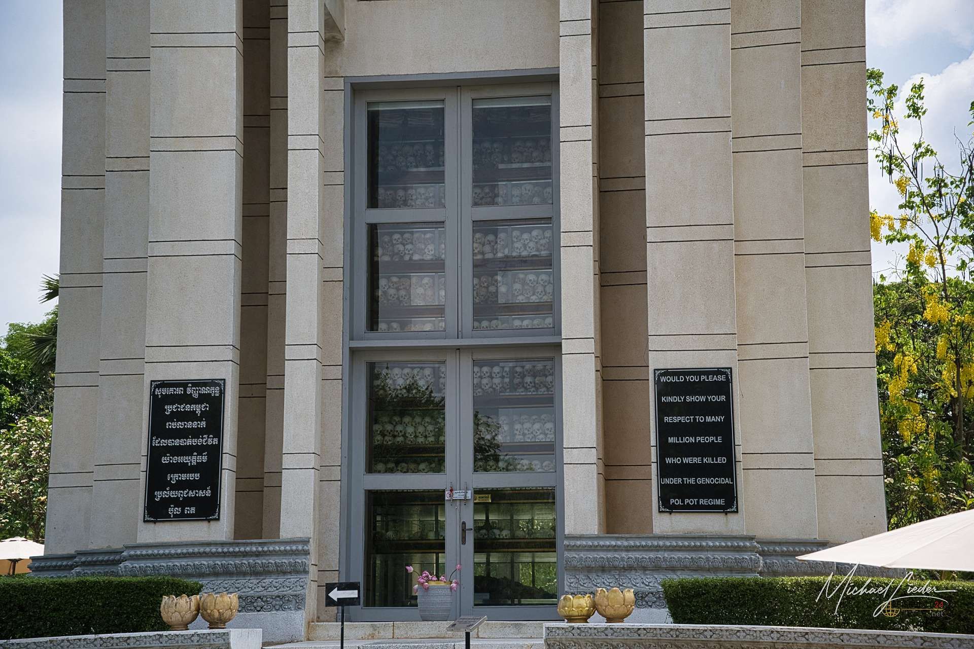 Im Zentrum ragt die Stupa auf. Ein Mahnmal, gefüllt mit tausenden Schädeln. Keine Inszenierung, kein Versuch, es „schön“ zu machen. Einfach nur die stille, brutale Wahrheit. Man steht davor und merkt, wie klein die eigenen Worte plötzlich werden. Es gibt hier nichts zu erklären, nichts zu relativieren. Nur das Bewusstsein, dass Menschen zu Dingen fähig sind, die man lieber nicht zu Ende denkt.