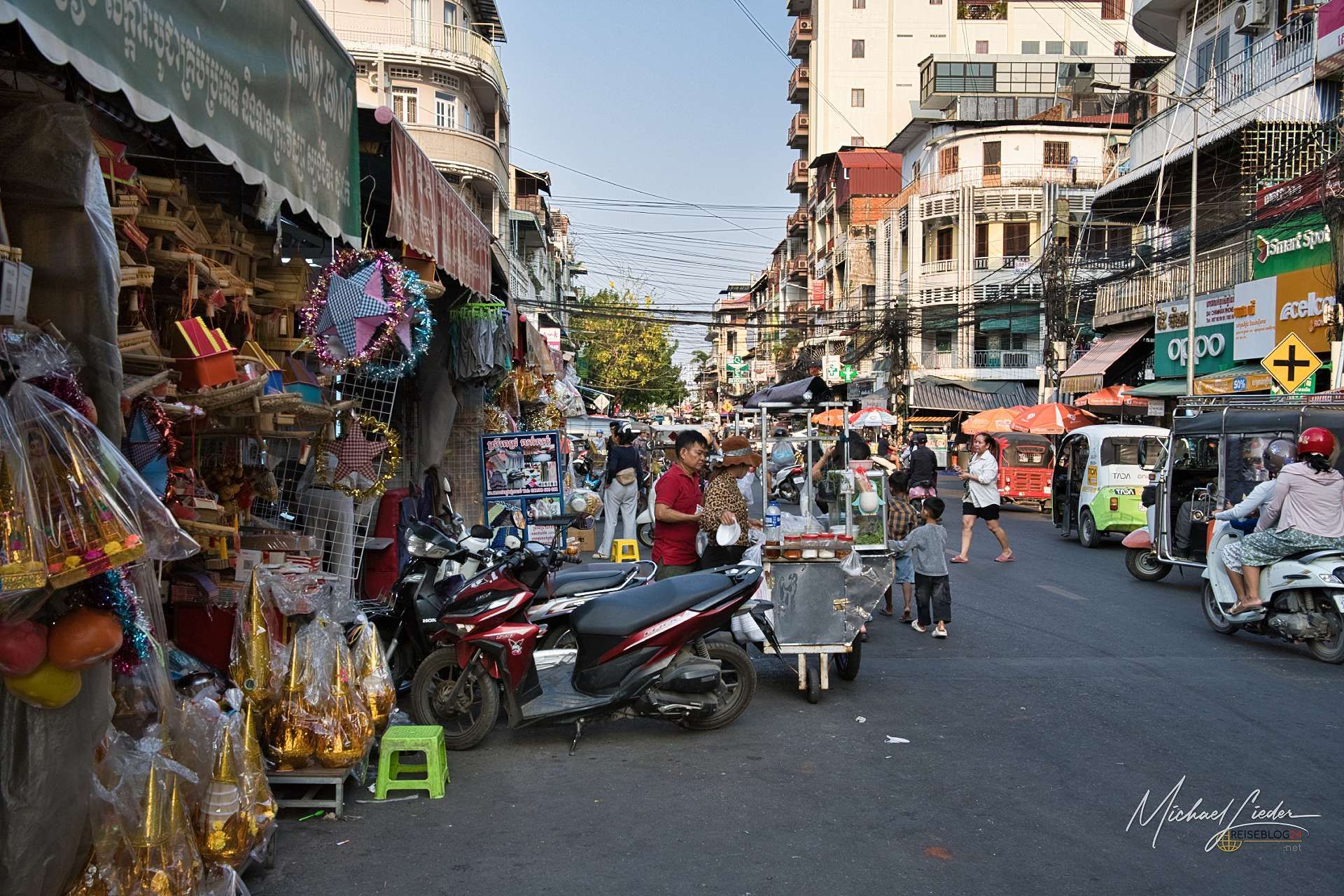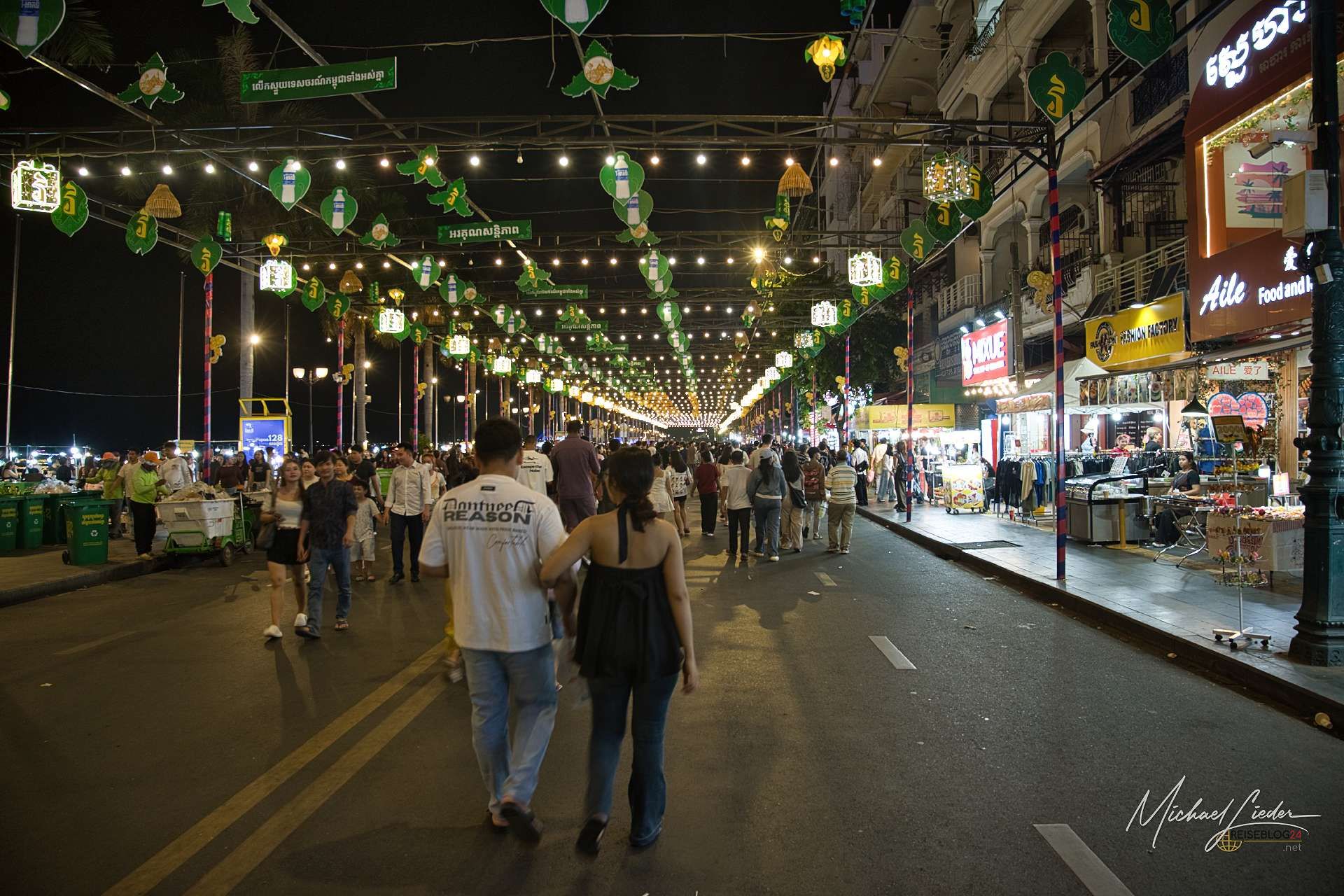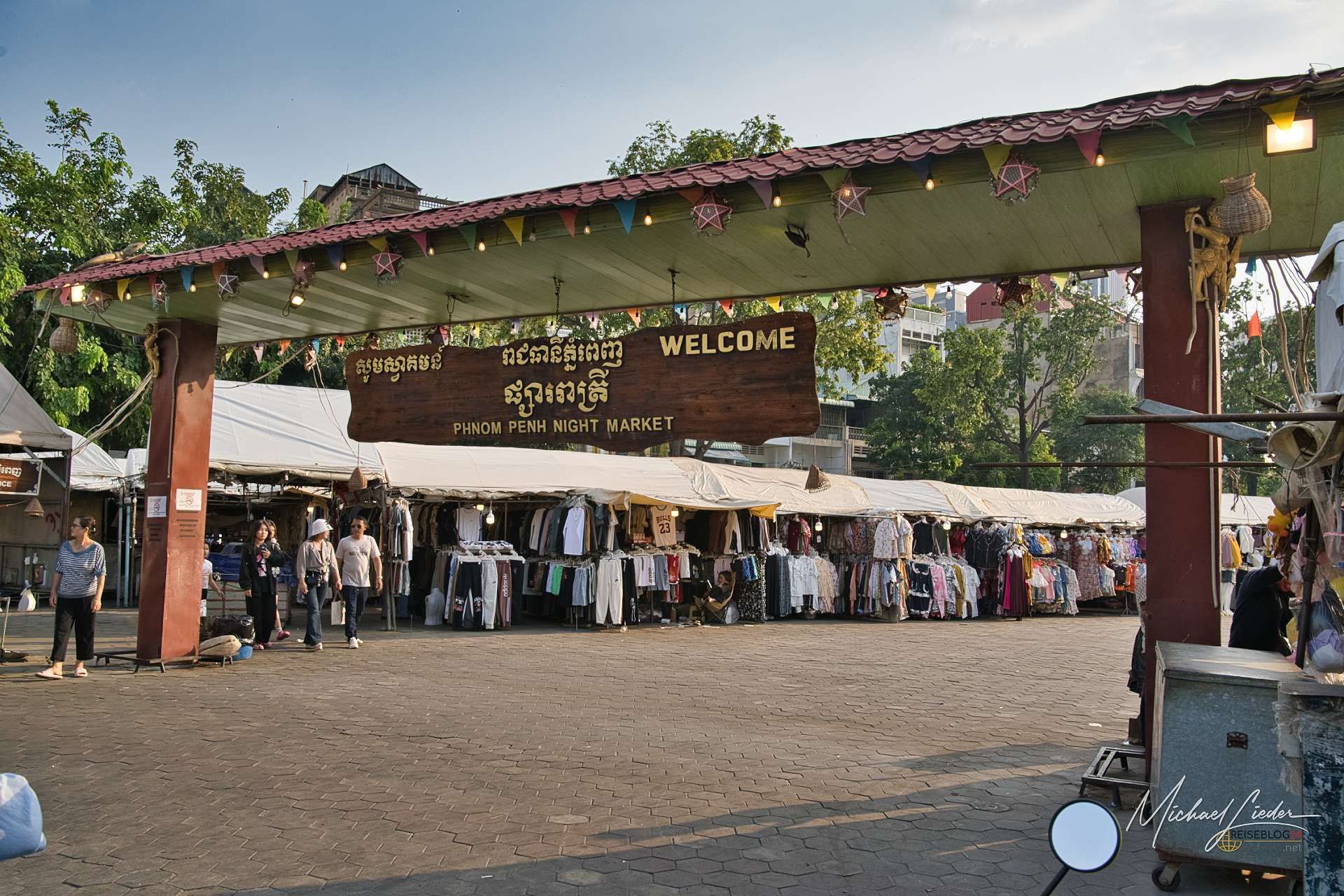 Wer an der Riverside entlang Richtung Innenstadt schlendert, wird zwangsläufig links abbiegen. Nicht aus Planung, eher aus diesem diffusen Gefühl heraus, dass dort noch etwas Unbekanntes wartet. Und tatsächlich landet man irgendwann auf dem Night Market von Phnom Penh. Der Name verspricht zunächst das Offensichtliche: Essen, Chaos, Garküchen. Die Realität ist… nun ja, deutlich gesitteter.