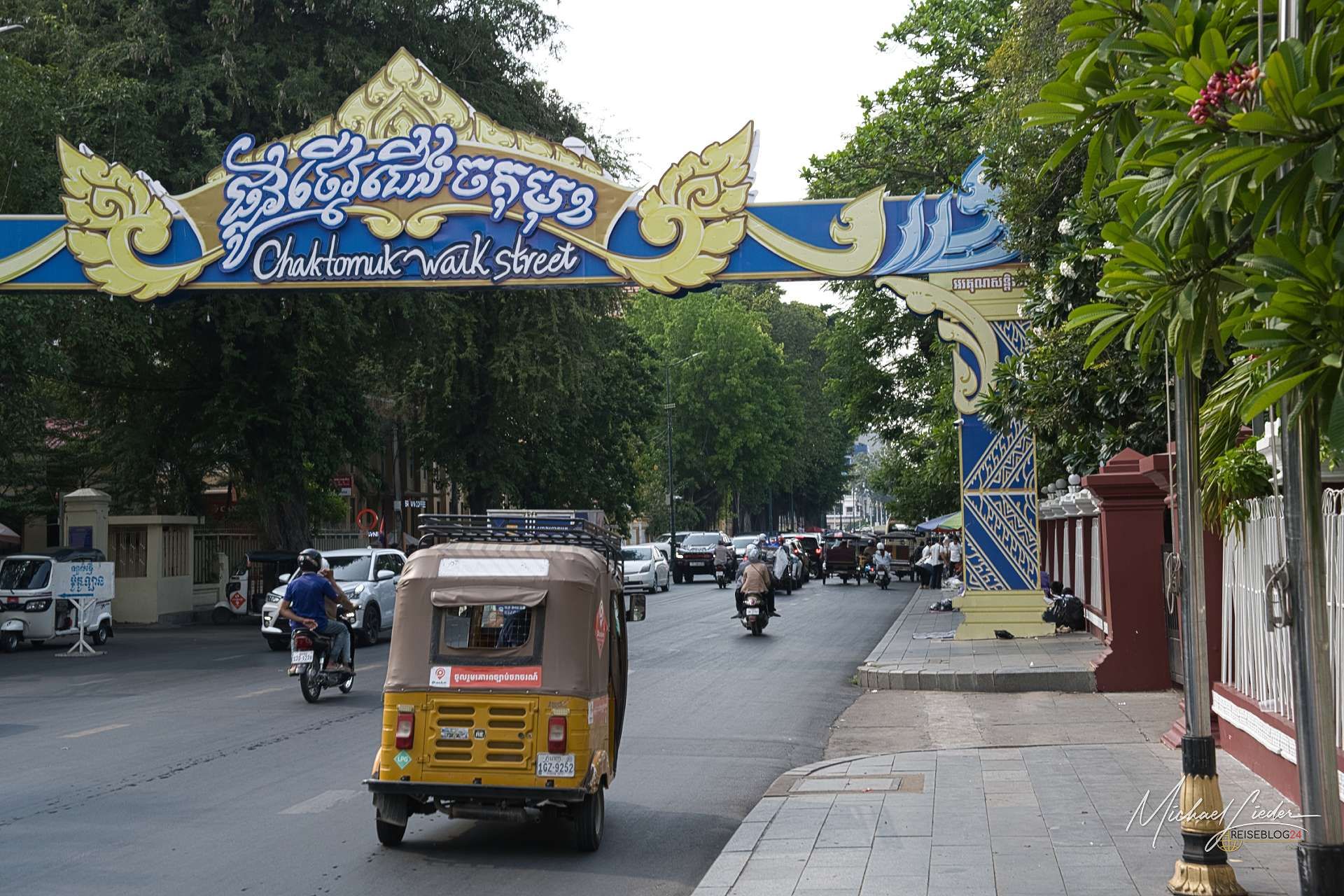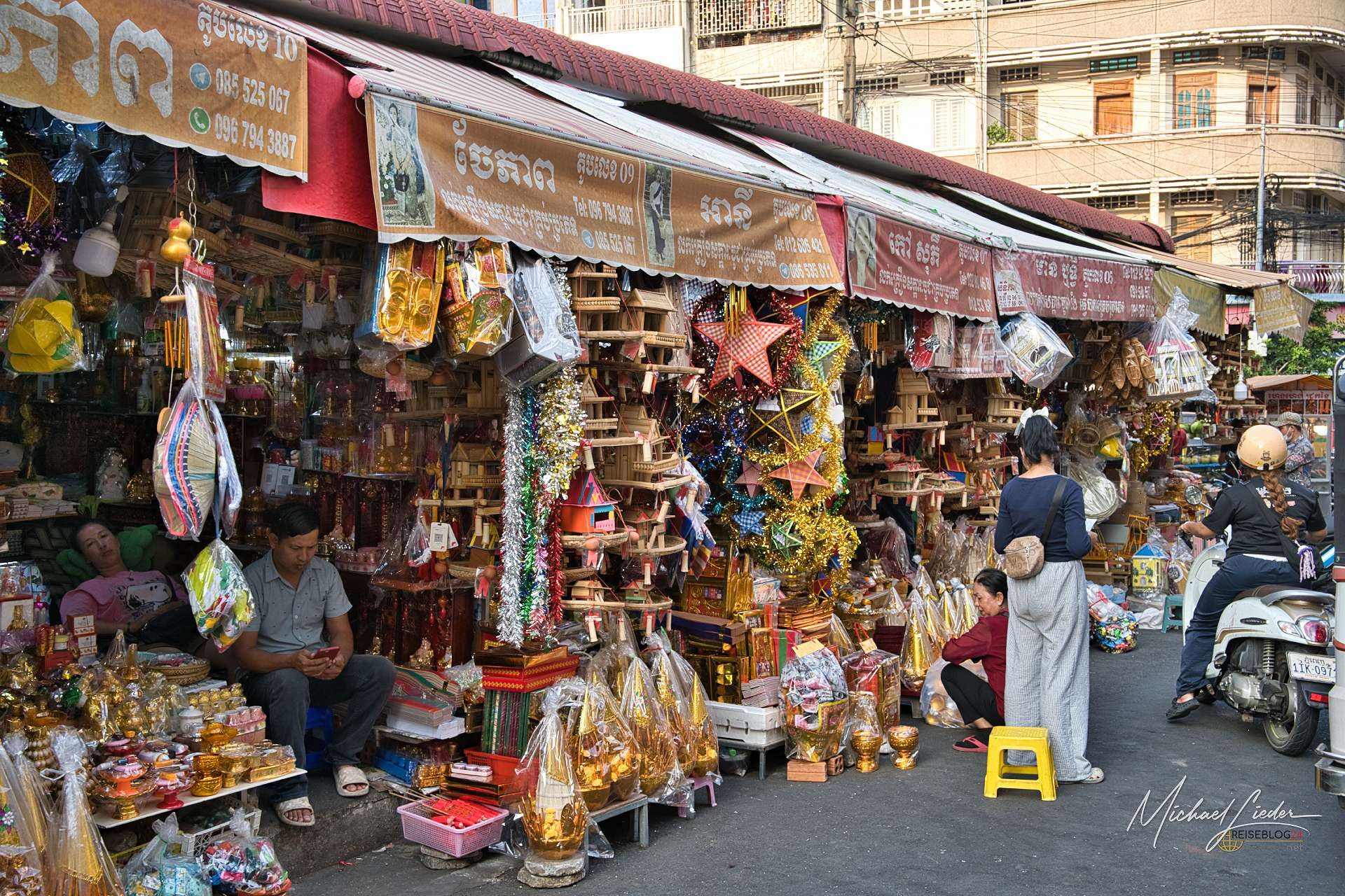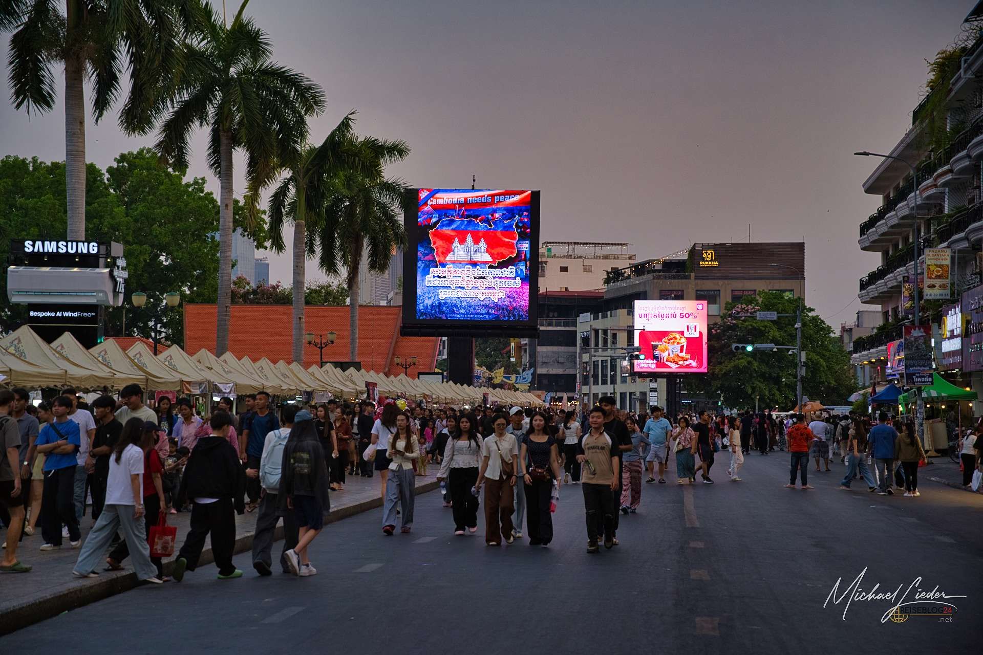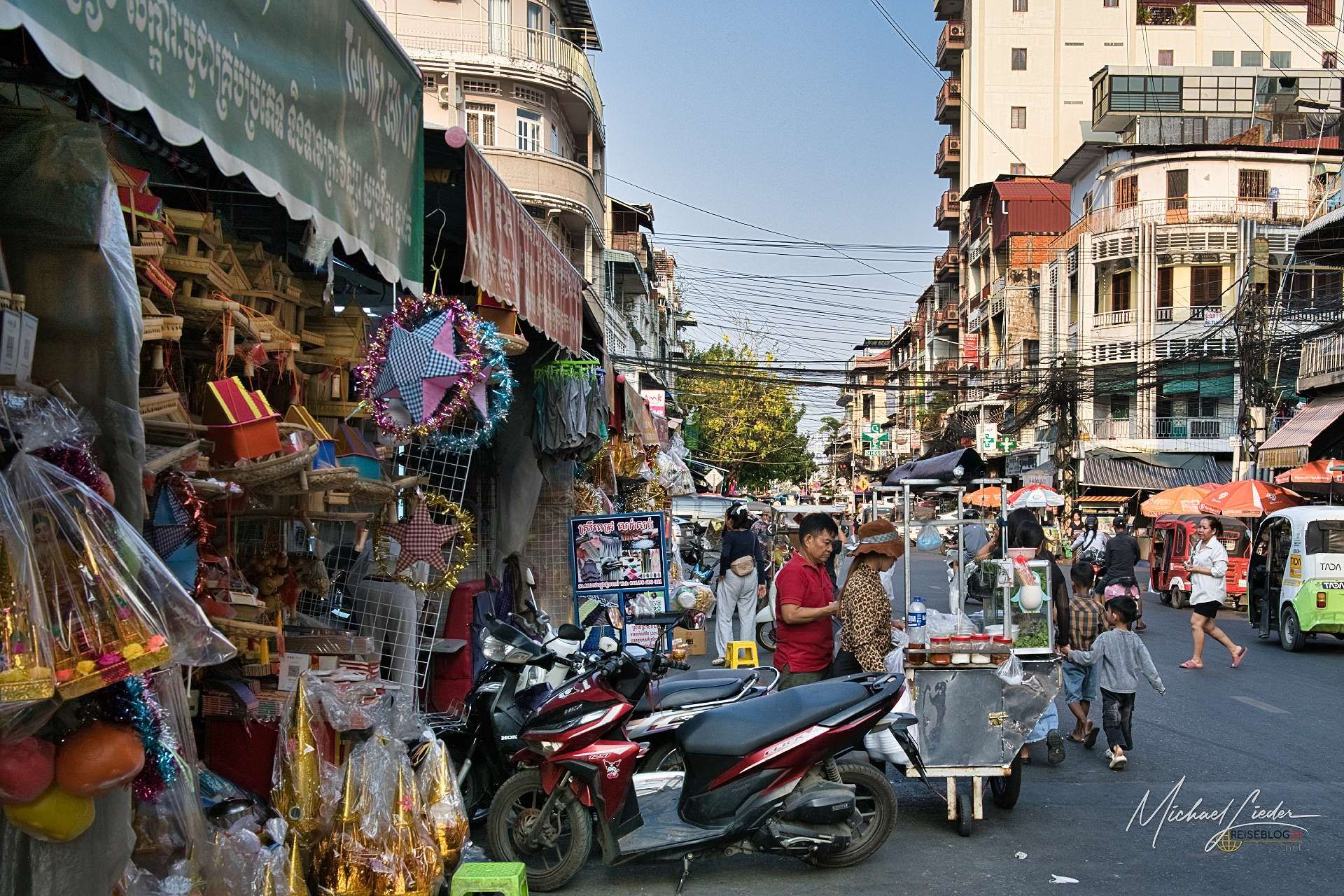 Wer an der Riverside entlang Richtung Innenstadt schlendert, wird zwangsläufig links abbiegen. Nicht aus Planung, eher aus diesem diffusen Gefühl heraus, dass dort noch etwas Unbekanntes wartet. Und tatsächlich landet man irgendwann auf dem Night Market von Phnom Penh. Der Name verspricht zunächst das Offensichtliche: Essen, Chaos, Garküchen. Die Realität ist… nun ja, deutlich gesitteter.