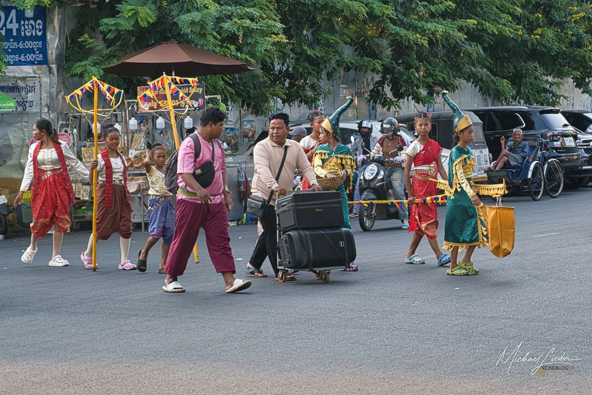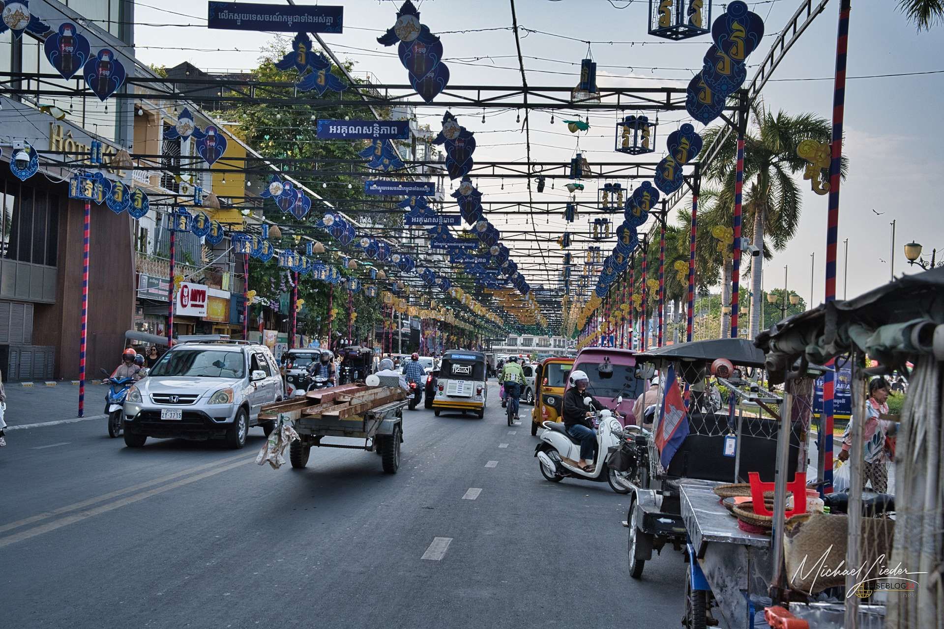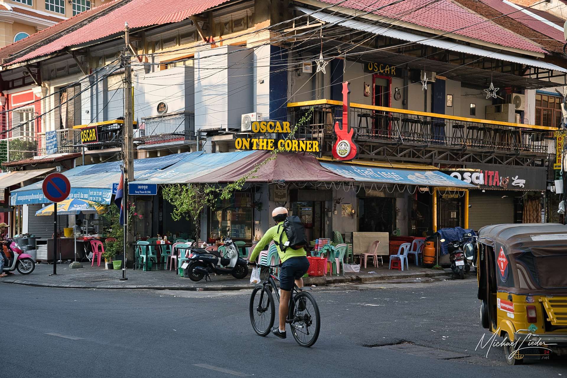 Dazwischen bewegt sich Phnom Penh wie immer unbeirrt weiter. TukTuks schlängeln sich durch Lücken, die eigentlich keine sind, Motorroller fließen in einem Strom, der keiner erkennbaren Logik folgt, Fahrräder kämpfen tapfer mit, und irgendwo dazwischen gleiten hochmotorisierte Sportwagen vorbei, als hätten sie sich in der falschen Realität verlaufen.