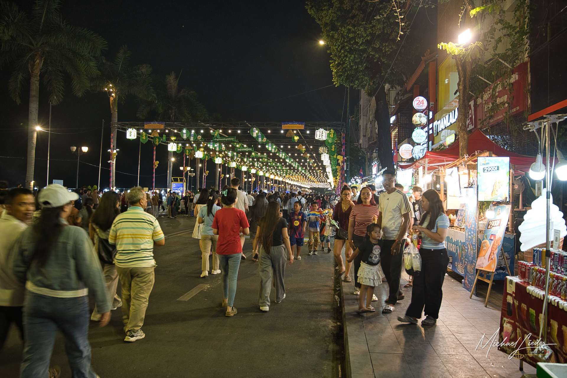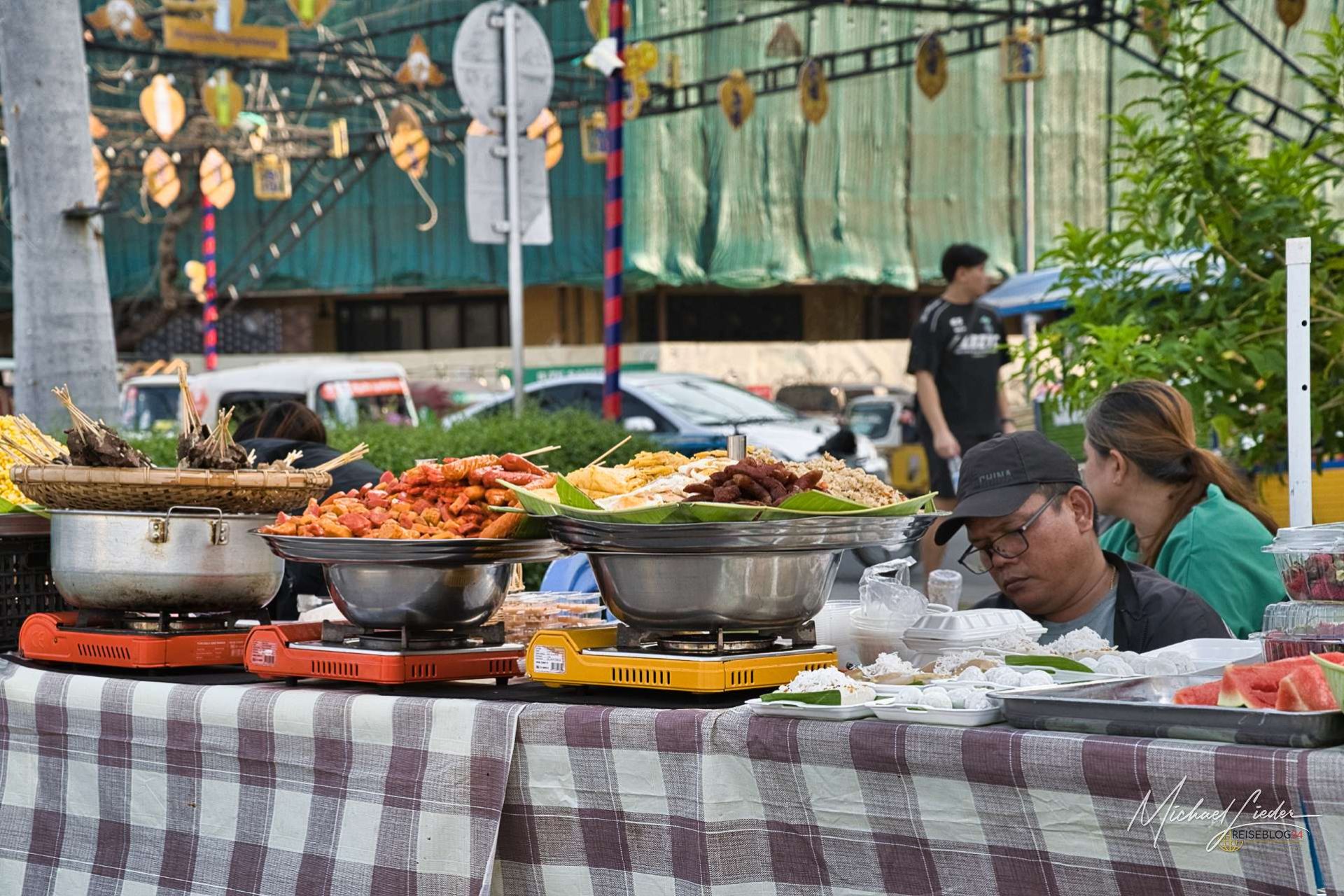 „Ein paar Stände“ ist hier eine Untertreibung, so frech, dass sie fast schon wieder Mut beweist. Entlang der Uferpromenade steht nämlich nicht einfach ein Nachtmarkt. Da steht eine ganze Armee aus Garküchen, Grillplatten, Plastikhockern, dampfenden Töpfen und Küchen auf Rädern, die aussehen, als hätten sie schon zwei Monsunzeiten und drei Familienfeste überlebt. Ein paar Hundert Stände? Locker.