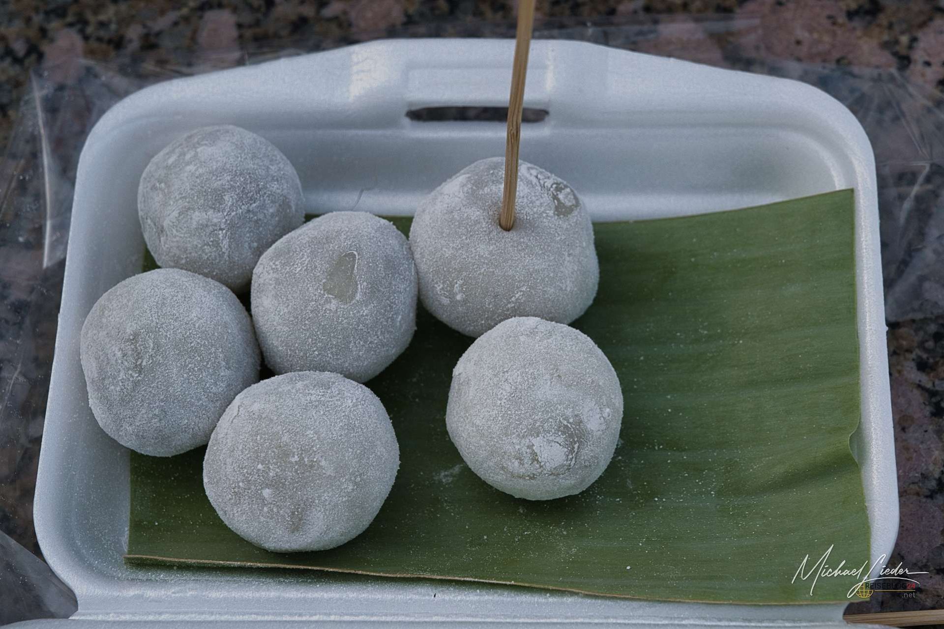 Was wie ein harmloses Kokosbällchen aussieht, entpuppt sich dann plötzlich als überraschend herzhafte Gemüsefüllung. Und ein knusprig wirkender Hähnchenspieß kann eine Konsistenz haben, bei der man kurz überlegt, ob hier versehentlich ein panierter Ast verarbeitet wurde. Nicht alles trifft sofort den eigenen Geschmack. Aber genau das gehört dazu. Wer an der Riverside unterwegs ist, sollte nicht erwarten, nur kulinarische Volltreffer zu landen. Es geht eher darum, sich Stück für Stück durchzukosten, von oben nach unten, von links nach rechts und mit wachsender Neugier wieder zurück.