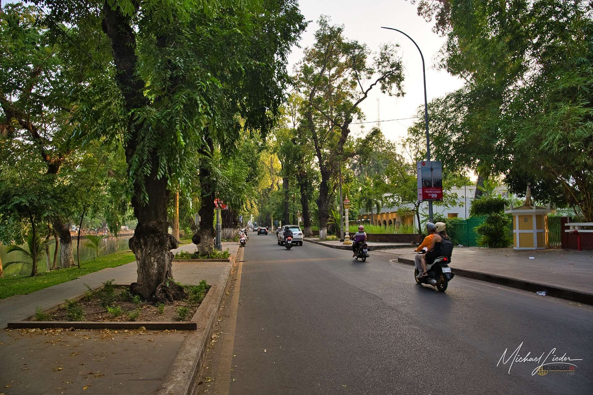 Wir laufen vom Hotel in Richtung Stadt und mit jedem Schritt wird klar: Hier fühlt es sich erstaunlich richtig an. Das, was uns schon aus der TukTuk Perspektive entgegengeweht ist, bestätigt sich jetzt zu Fuß. Breite Straßen, viel Grün, Bäume, die nicht nur dekorativ herumstehen, sondern tatsächlich Schatten spenden. Fast so, als hätte sich hier jemand Gedanken gemacht. Verrückt.