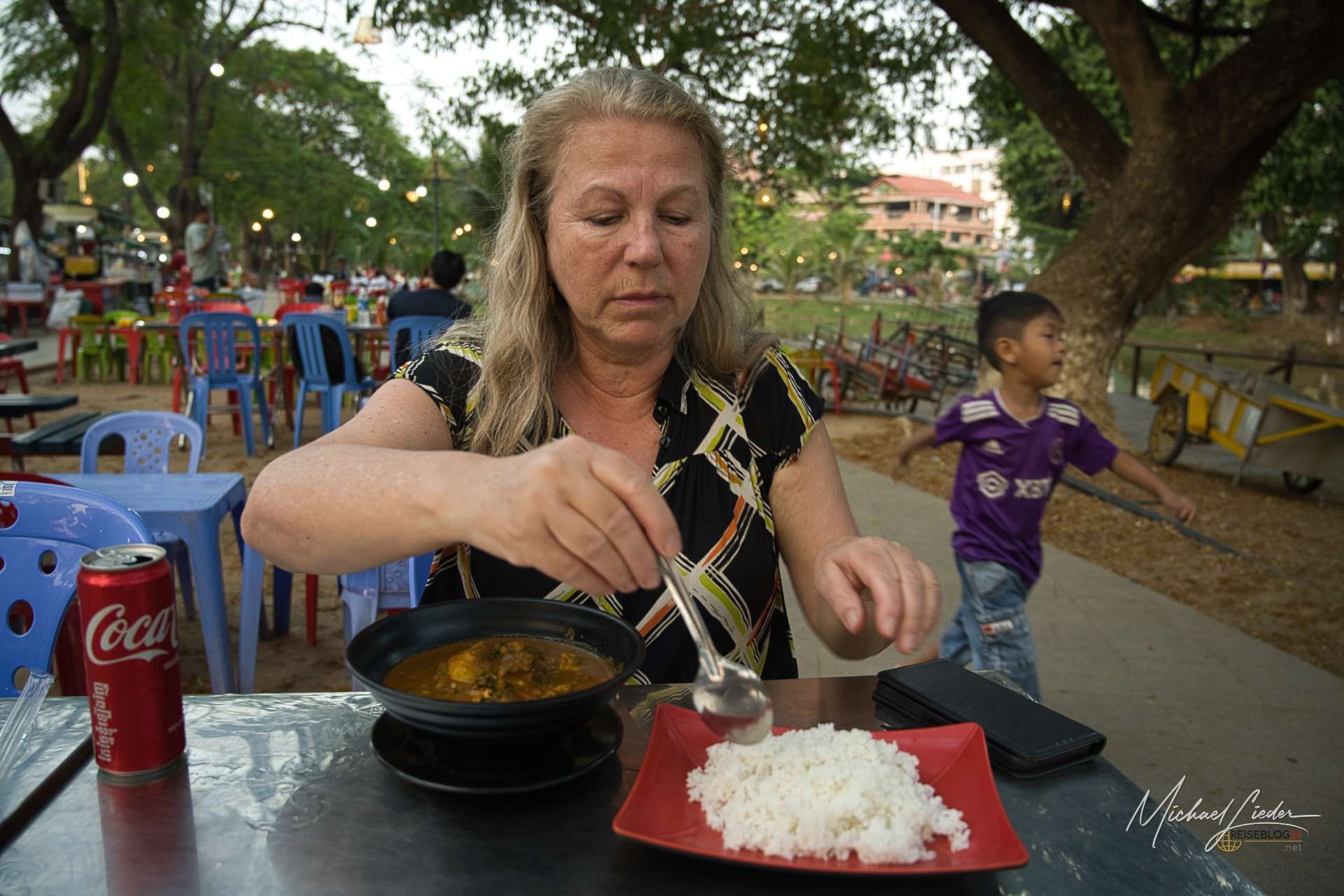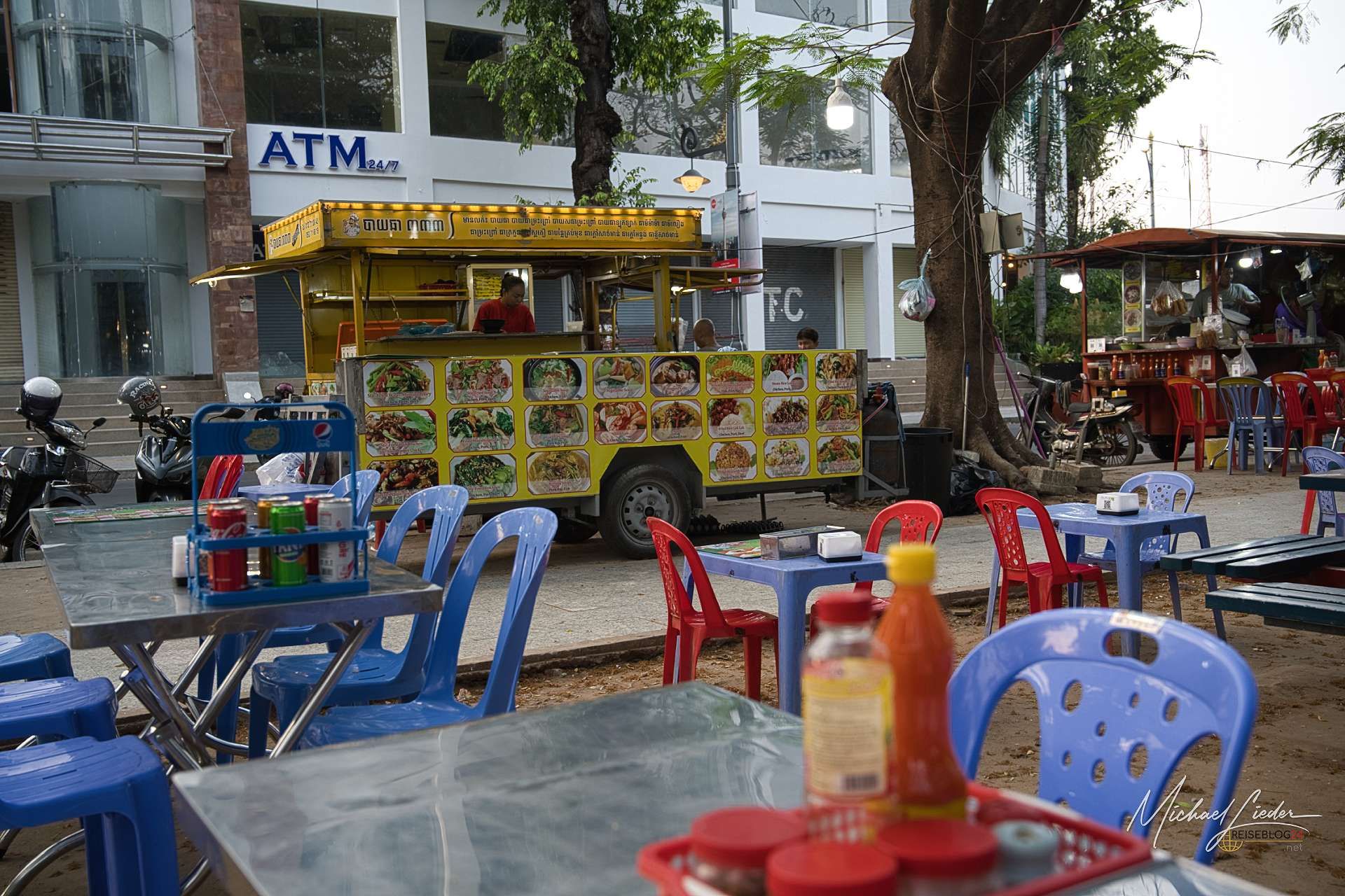 Was sofort auffällt: Die Streetfood-Szene meint es gut mit dem Rücken. Keine Mini-Plastikhocker wie in Phnom Penh, sondern echte Stühle. Luxus, auf kambodschanisch übersetzt.