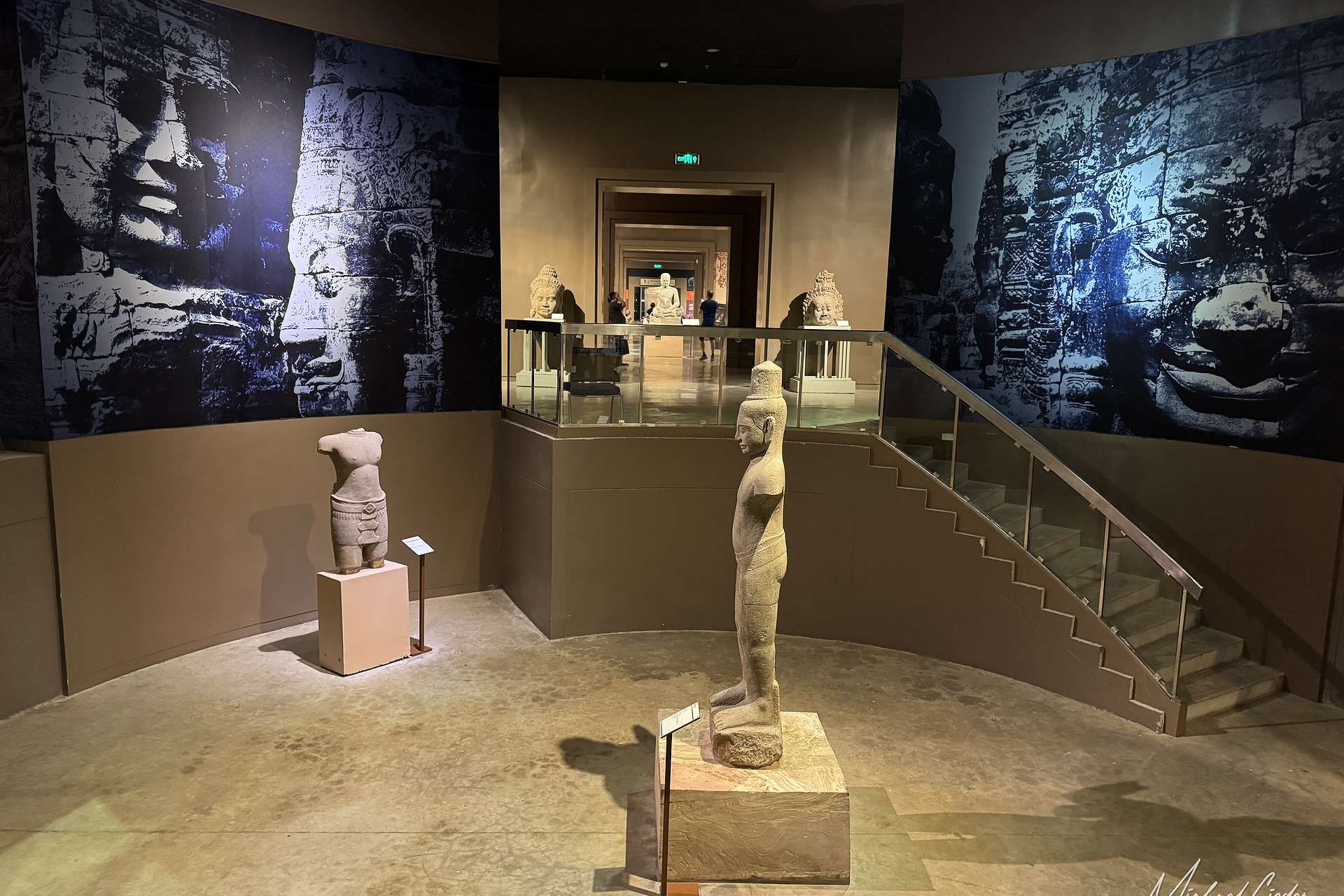 Danach geht es durch die Epochen der Khmer. Raum für Raum, Jahrhundert für Jahrhundert. Alles wirkt geschniegelt, geschniegelt genug, um fast zu vergessen, dass es hier um ein Reich geht, das einst voller Leben, Macht und wahrscheinlich auch Chaos war. Die Ausstellungsstücke selbst holen einen aber schnell zurück: kunstvoll gearbeitete Statuen, Reliefs mit feinsten Details, Zeugnisse einer Kultur, die deutlich mehr war als nur ein paar beeindruckende Steinhaufen im Dschungel.