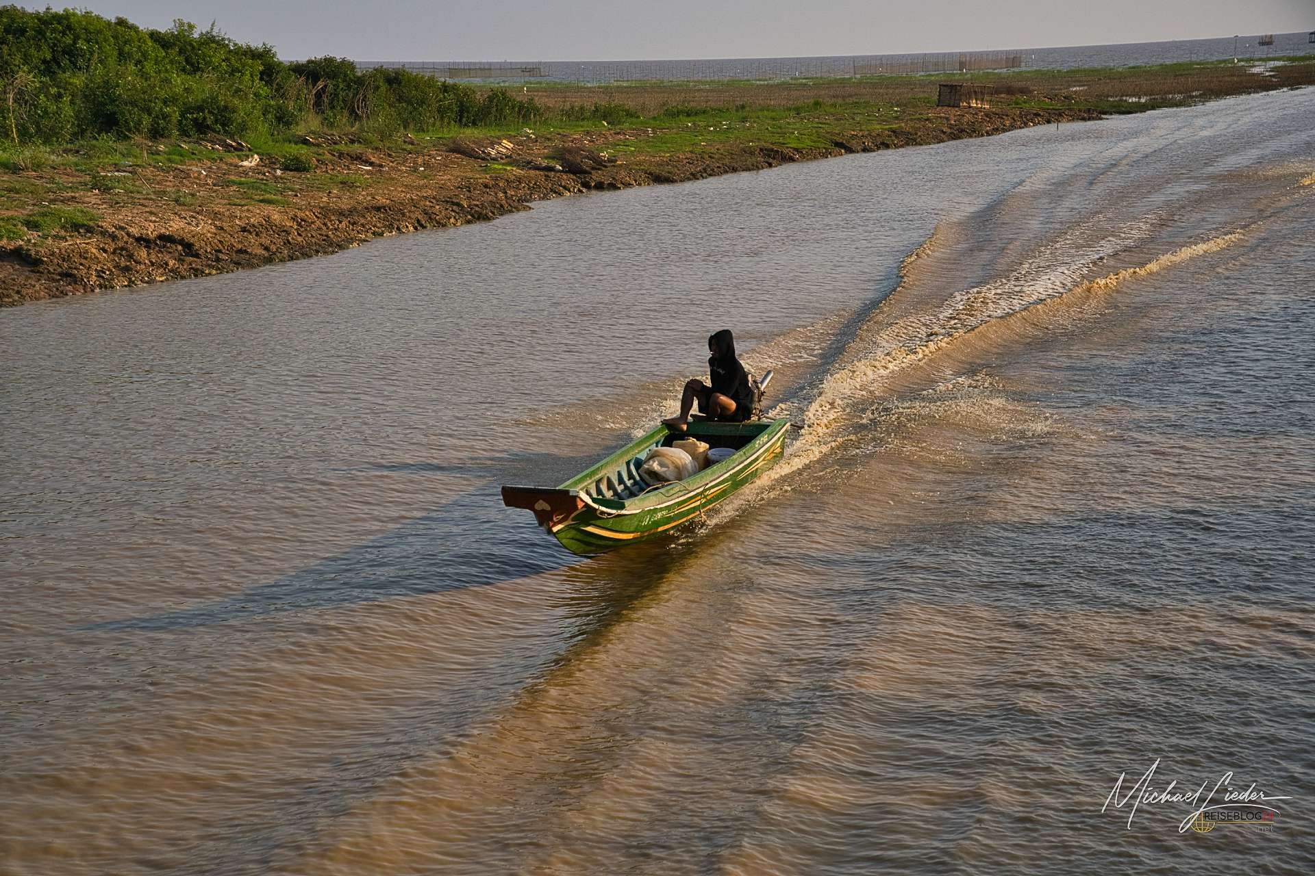 Langsam tuckern wir los. Dieses sonore Knattern des Motors hat etwas Beruhigendes, fast schon Meditatives, wenn man sich darauf einlässt. Mangroven ziehen vorbei, das Wasser wird breiter, die Welt ein bisschen ruhiger. Irgendwann verschwimmen Ufer und Horizont ineinander und man merkt, wie klein man hier draußen eigentlich ist. Und dann tauchen sie auf: Häuser, die nicht entscheiden wollen, ob sie Land oder Wasser gehören. Schwimmend, schaukelnd, irgendwie absurd und gleichzeitig völlig logisch.