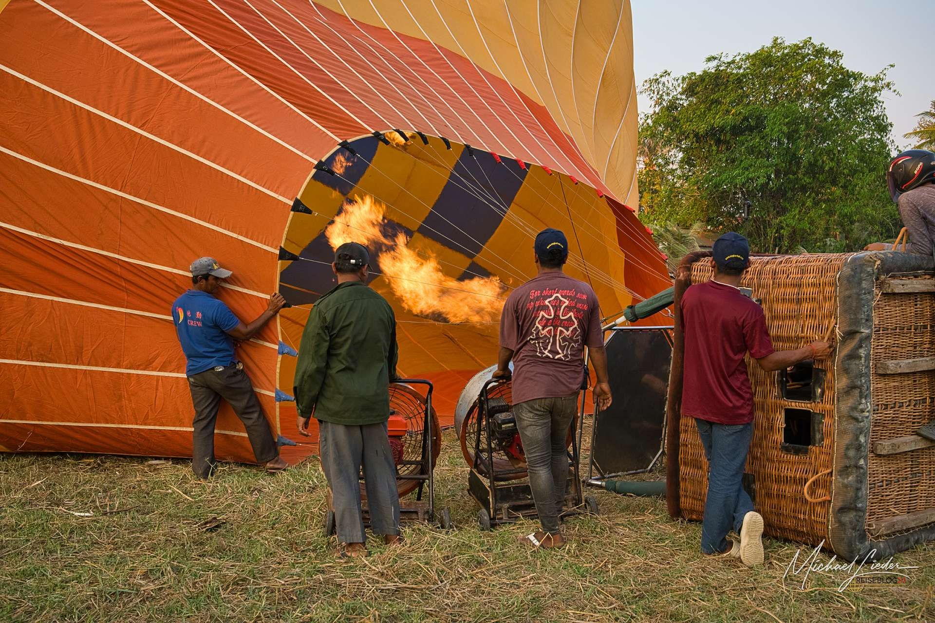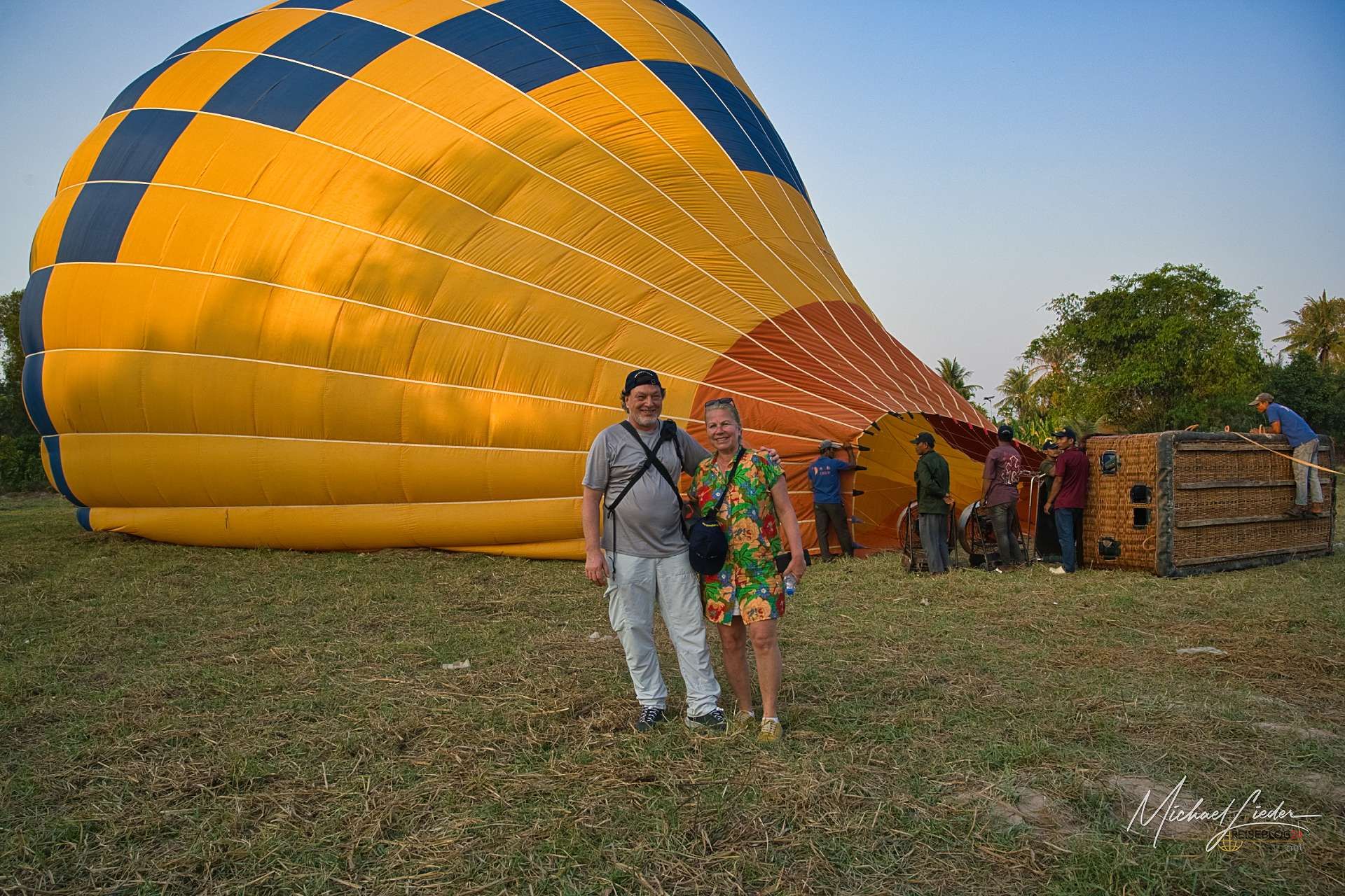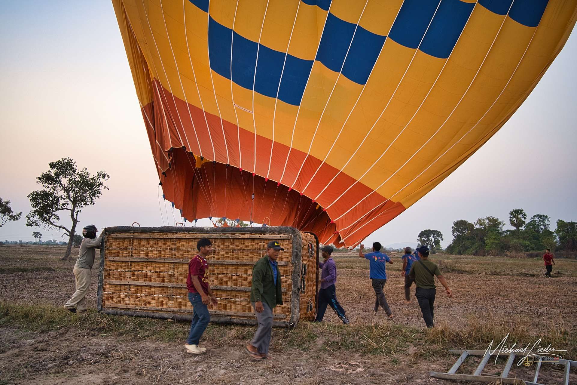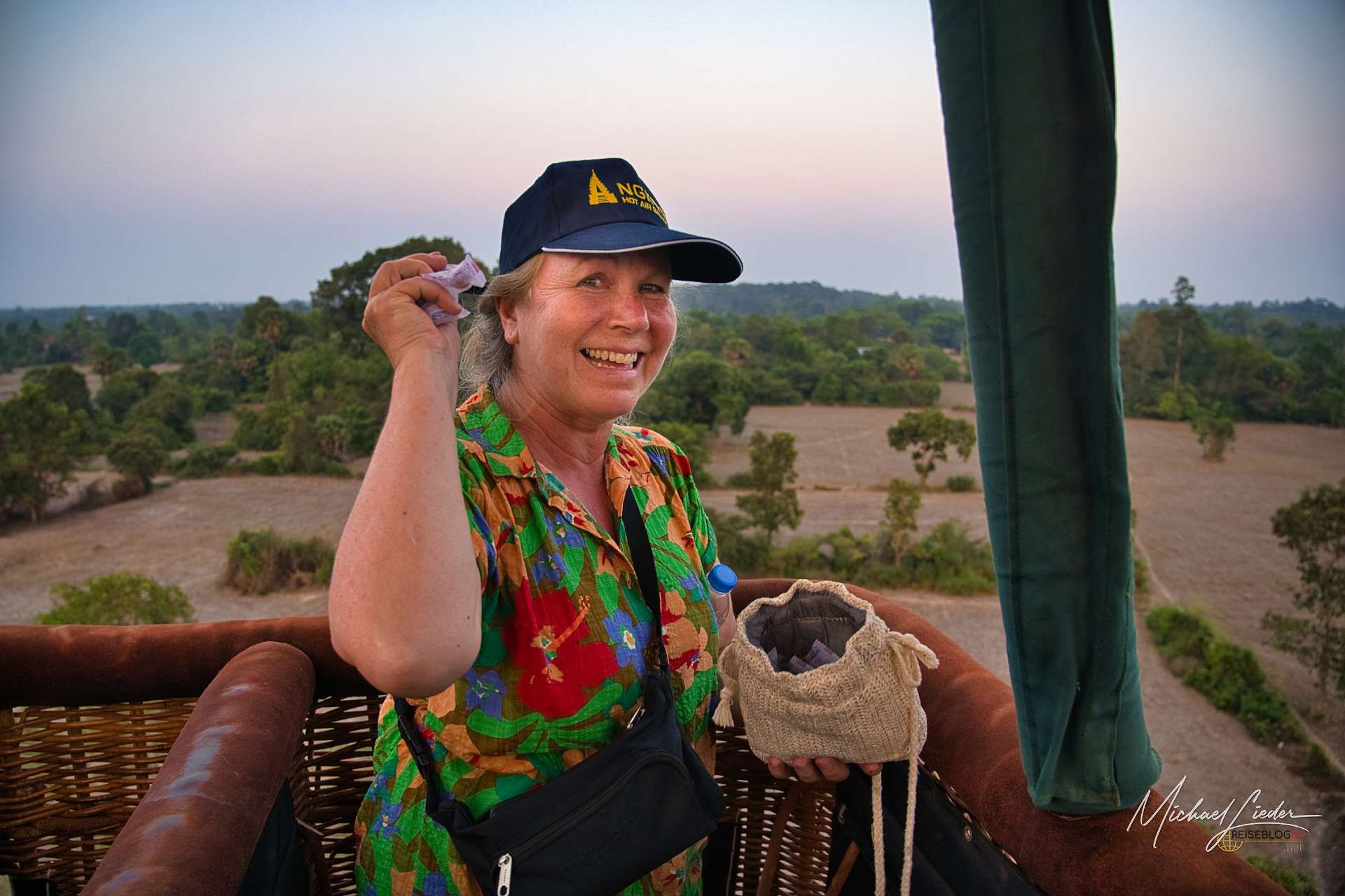 Dass der Ballon nicht über die Tempelanlagen von Angkor Wat fliegen darf, ist erst einmal so ein kleiner Stich ins Reise-Ego. Man kommt schließlich nicht bis nach Siem Reap, um dann… daneben zu starten. Aber gut, Regeln sind Regeln, also hebt man eben ein Stück außerhalb ab – mit der leisen Hoffnung, dass sich das Ganze trotzdem lohnt.
