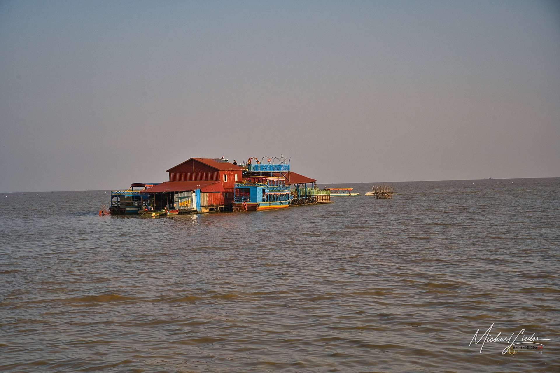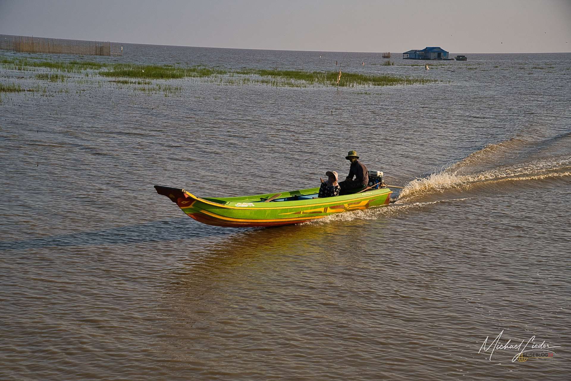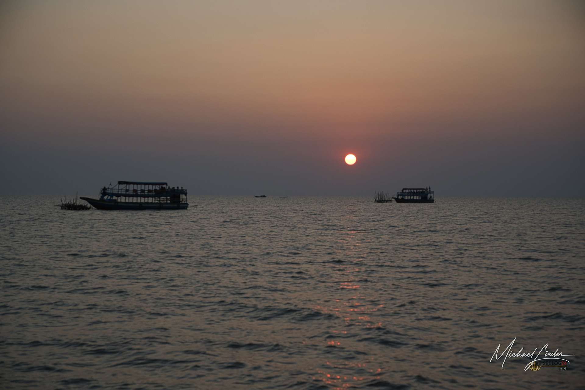 Und weil ein Perspektivwechsel selten reicht, ging es dorthin, wo alles wieder weit wird: zum Tonle Sap. Der größte See Kambodschas klingt erst mal nach einer dieser Behauptungen, die Reiseführer gern in den Raum werfen. Also überprüfen. Vor Ort stehen, schauen, wirken lassen. Ergebnis: Das andere Ufer? Unsichtbar. Selbst in der Trockenzeit. Der See zieht sich wie eine eigene kleine Welt bis zum Horizont, ruhig, fast stoisch. Die abendliche Bootstour hatte genau dieses Tempo, das man unterwegs so selten findet. Kein Programm, kein Druck. Nur Wasser, Licht und dieses langsame Verschwinden der Sonne, als hätte sie es heute nicht eilig. Zwei Perspektiven an einem Tag – und plötzlich ergibt alles ein bisschen mehr Sinn. Oder zumindest fühlt es sich so an.