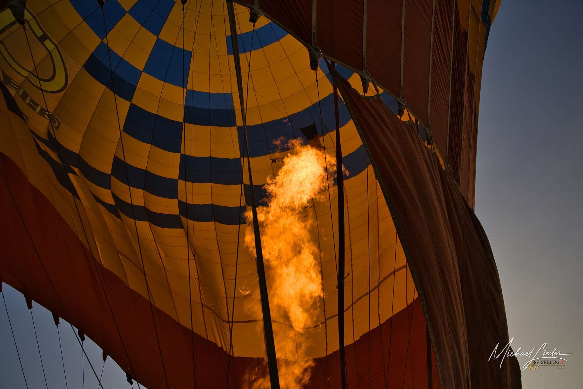 Dieses Stoffungetüm, das da noch wie ein müder Wal auf dem Boden lag, begann langsam zu leben. Erst Luft, dann Hitze. Der Brenner fauchte, als hätte er etwas zu beweisen, und mit jedem Stoß richtete sich der Ballon ein Stück mehr auf. Ein Moment zwischen Technik und Magie. Und ja, man merkt ziemlich schnell: Das hier ist nichts für Hobby-Bastler. Da steckt Routine drin, Erfahrung, und eine Gelassenheit, die man sich selbst in solchen Momenten gerne leiht.