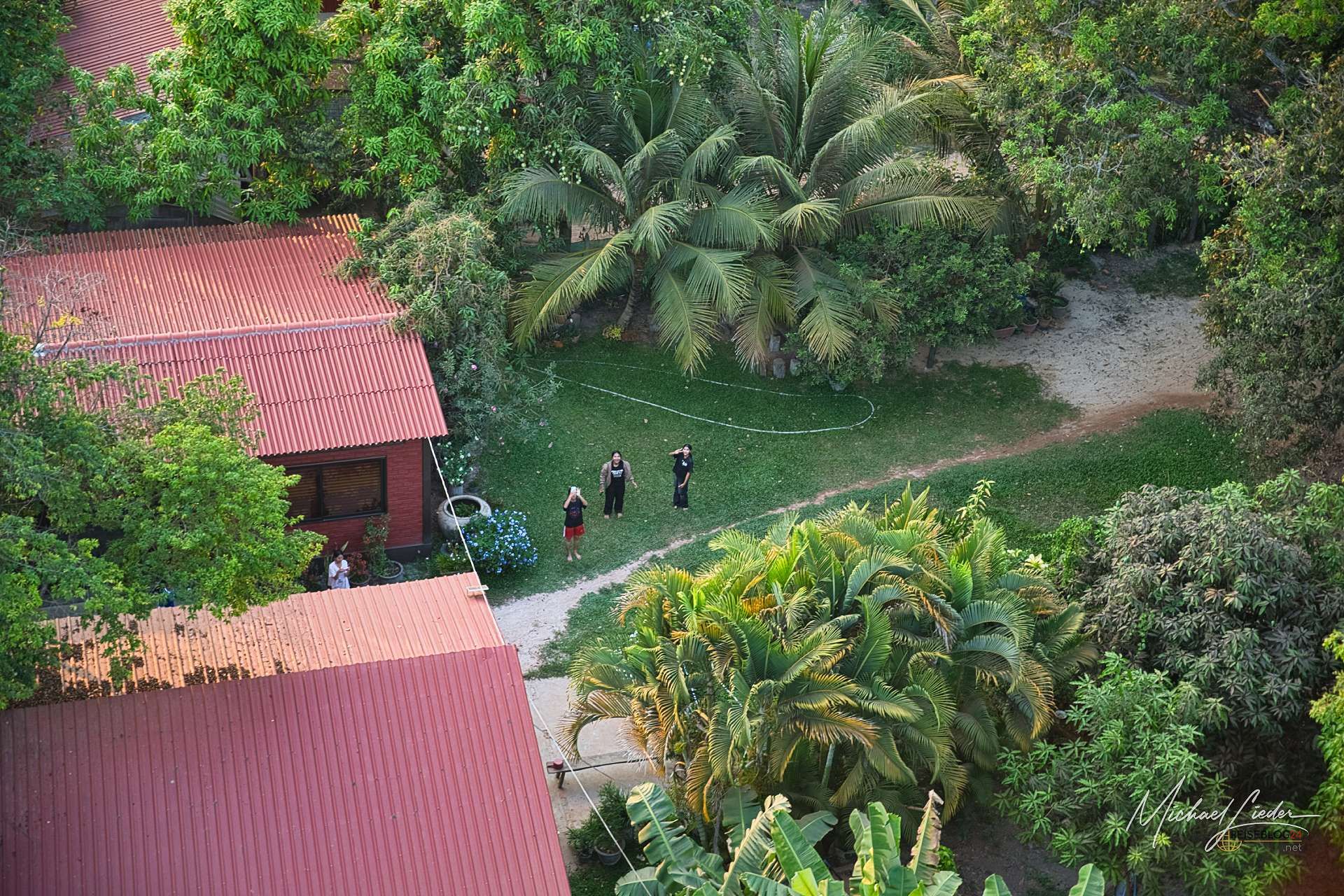 Die klassischen Wege rund um Siem Reap? Die dürfen andere ablaufen, geschniegelt zwischen Tempelplan und Selfiestick. Wenn schon keine Drohne erlaubt ist, dann eben mit Stil nach oben: im Ballon. Lautlos hebt man ab, und plötzlich liegt alles da unten wie ein perfekt arrangiertes Modell – fast verdächtig ordentlich für eine Welt, die sonst so gern improvisiert. Angkor Wat wirkt aus der Höhe weniger monumental, dafür ehrlicher. Kein Gedränge, kein Stimmengewirr. Nur dieser ruhige Moment, in dem man merkt, dass man gerade genau am richtigen Ort ist. Sabine hat sich das mit dem „mal eben in die Luft gehen“ erwartungsgemäß anders vorgestellt. Zwischen Vorfreude und leichtem Zweifel lag genau dieser schmale Grat, auf dem gute Erinnerungen entstehen. Am Ende war es auch für sie weniger eine Mutprobe als stiller Genuss. Und ich gebe zu: Diese Idee aus der Reiseplanung heraus war eine der besseren. Manchmal zahlt sich dieses „Komm, wir probieren das jetzt einfach“ eben aus.