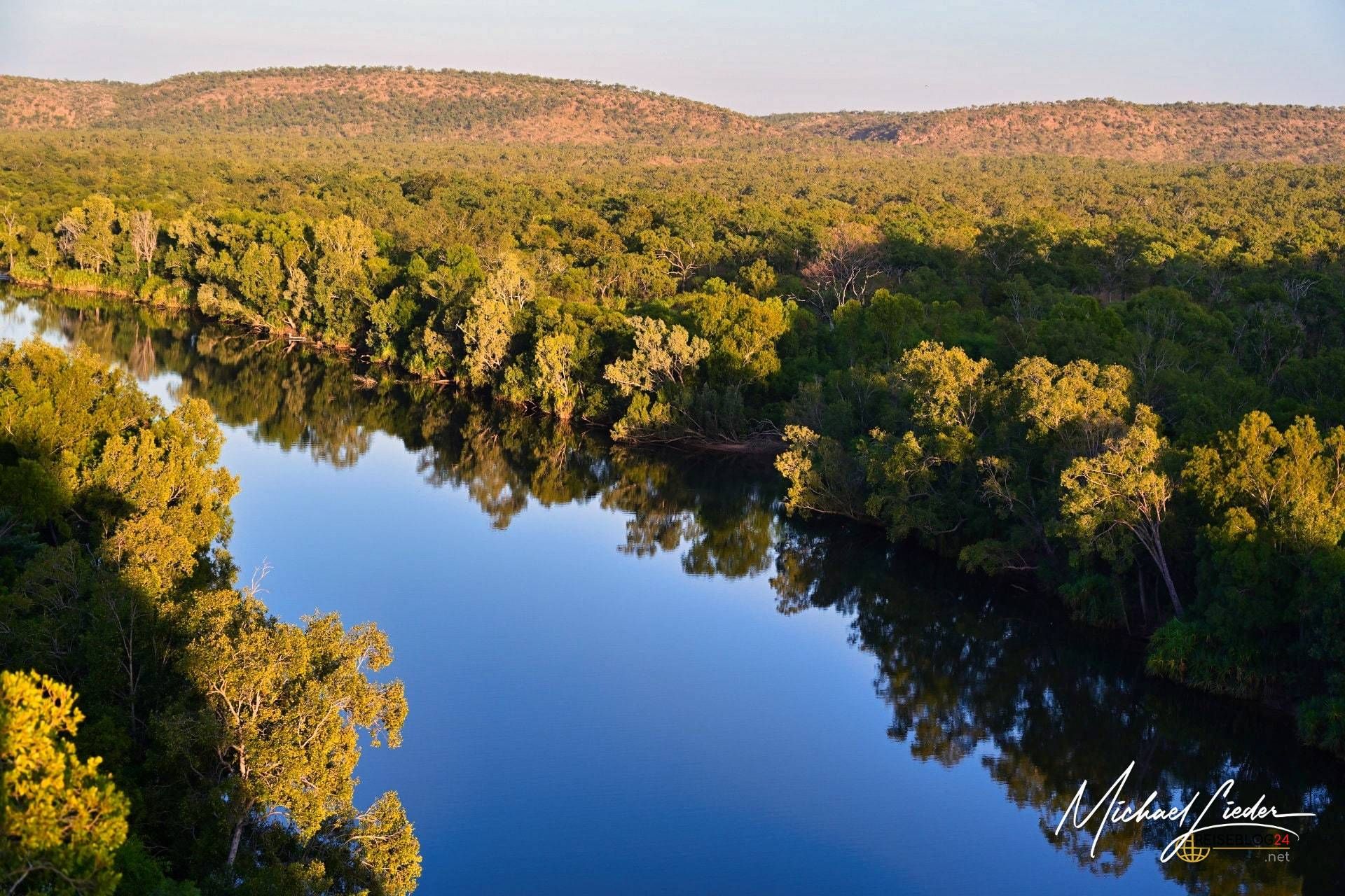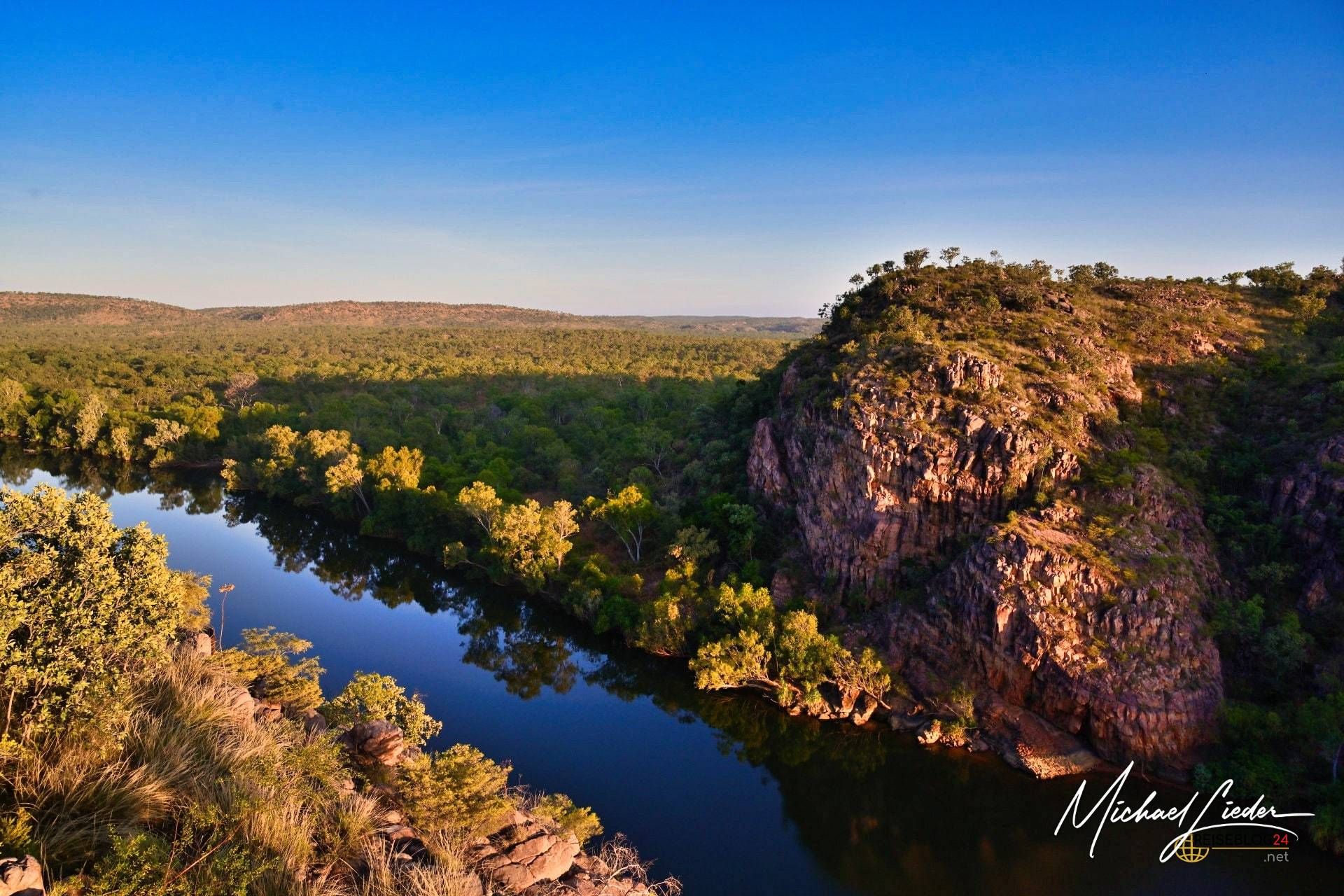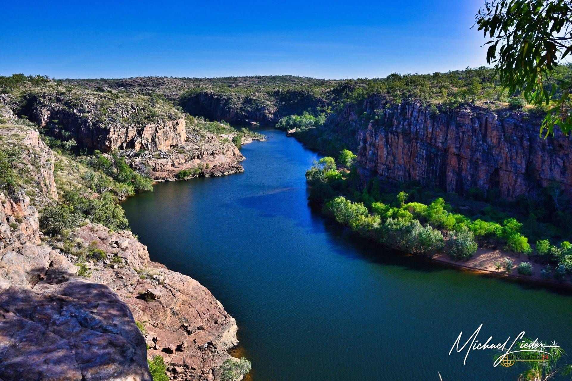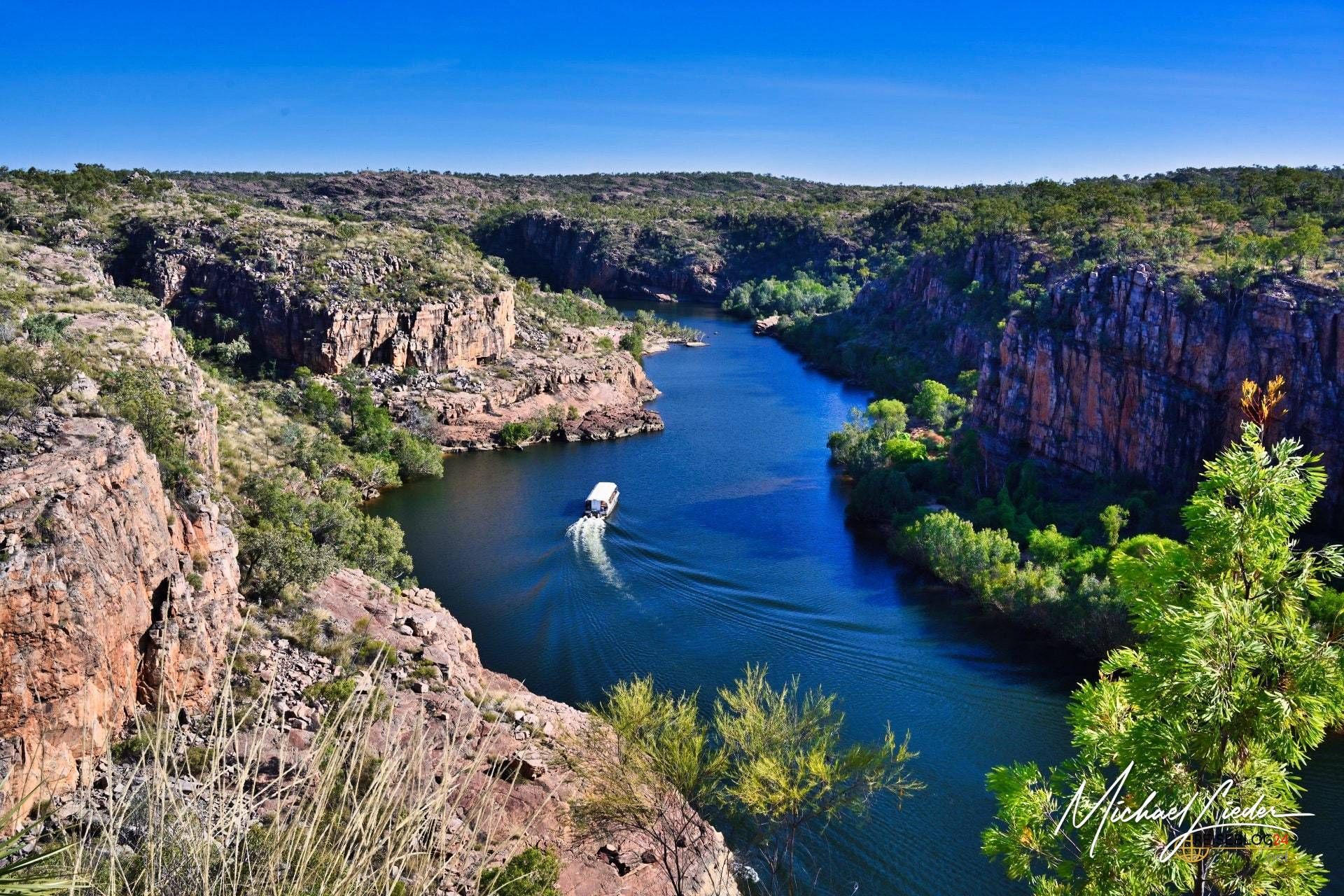 Als ich zum ersten Mal die majestätischen Felswände der Katherine Gorge im Nitmiluk-Nationalpark erblickte, blieb mir für einen Moment der Atem stocken. Ihre schiere Größe und die sanft geschwungenen, glatten Gesteinsschichten, die sich über mehrere Kilometer erstrecken, wirkten fast surreal. Das tiefblaue, ruhig dahinfließende Wasser des Katherine River bildete einen faszinierenden Kontrast zu den rostroten Klippen – ein Anblick, der mich sofort in seinen Bann zog.