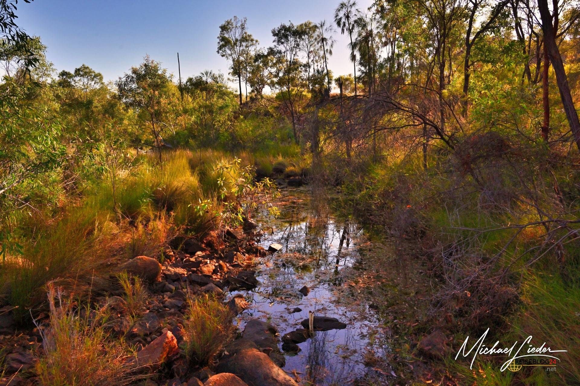 Unser Ausgangspunkt für dieses Vorhaben war der hervorragend gelegene Campingplatz an der Katherine Gorge – und der entpuppte sich schnell als echtes Basislager mit Komfortbonus. Zentral gelegen, durchdacht angelegt und erstaunlich gut ausgestattet. Das Highlight: ein Pool mit glasklarem Wasser mitten auf dem Gelände. Nach einem langen Wandertag klingt das nach Luxus. In der Realität stellte sich das Wasser als eiskalt heraus – aber genau das macht es perfekt. Einmal rein, kurz die Luft anhalten, und die Beine wissen wieder, dass sie existieren.