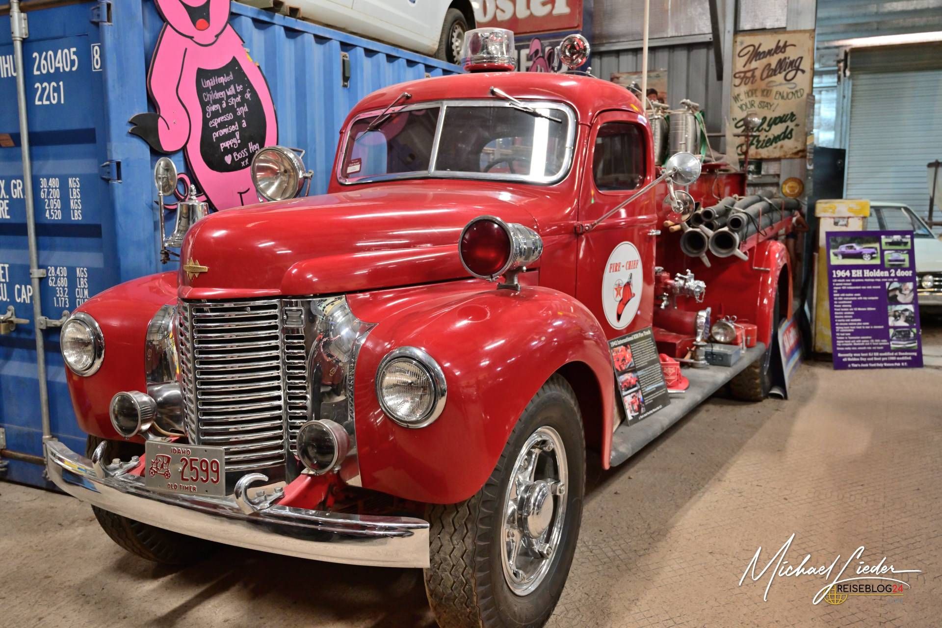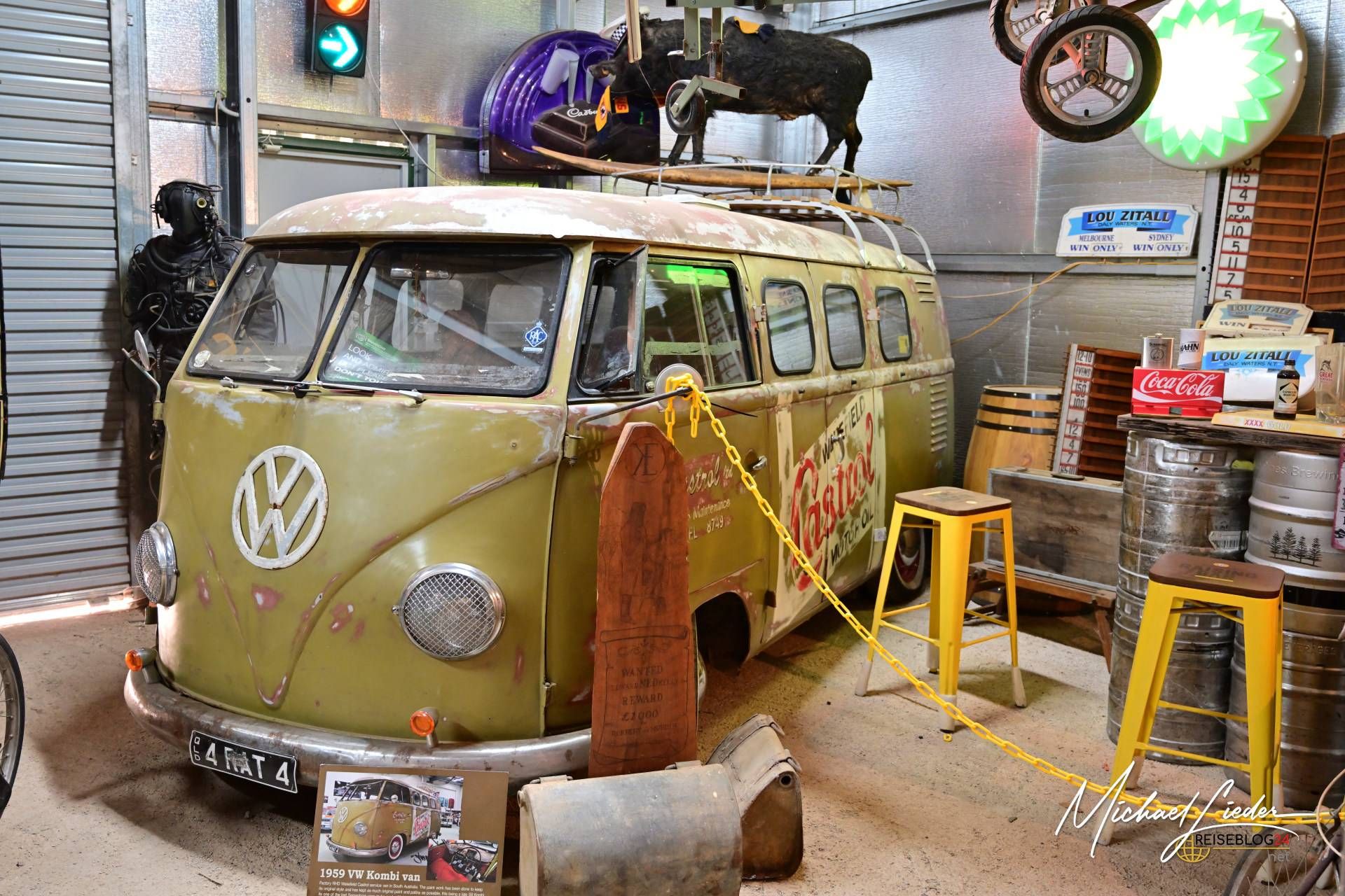 Neben den Fahrzeugen gab es unzählige weitere Exponate zu entdecken. Von alten Zapfsäulen über Werkzeugkästen bis hin zu Vintage-Werbetafeln – jedes Stück wirkte, als hätte es hier im Outback ein zweites Leben bekommen.