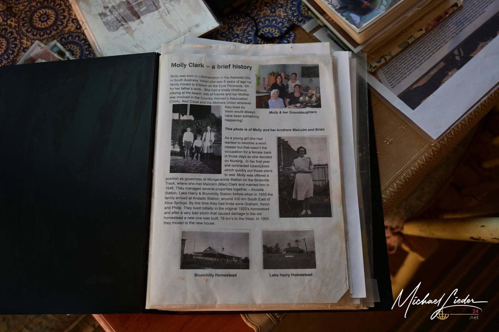 Die Familie Lassetter, die diese Farm seit Generationen führt, empfing mich herzlich und erzählte mir Geschichten über die Herausforderungen und Freuden des Lebens im Outback. Besonders beeindruckend war die Geschichte von Molly Clark, einer legendären Outback-Frau, die diese Station einst führte und für ihren Pioniergeist bekannt wurde.
