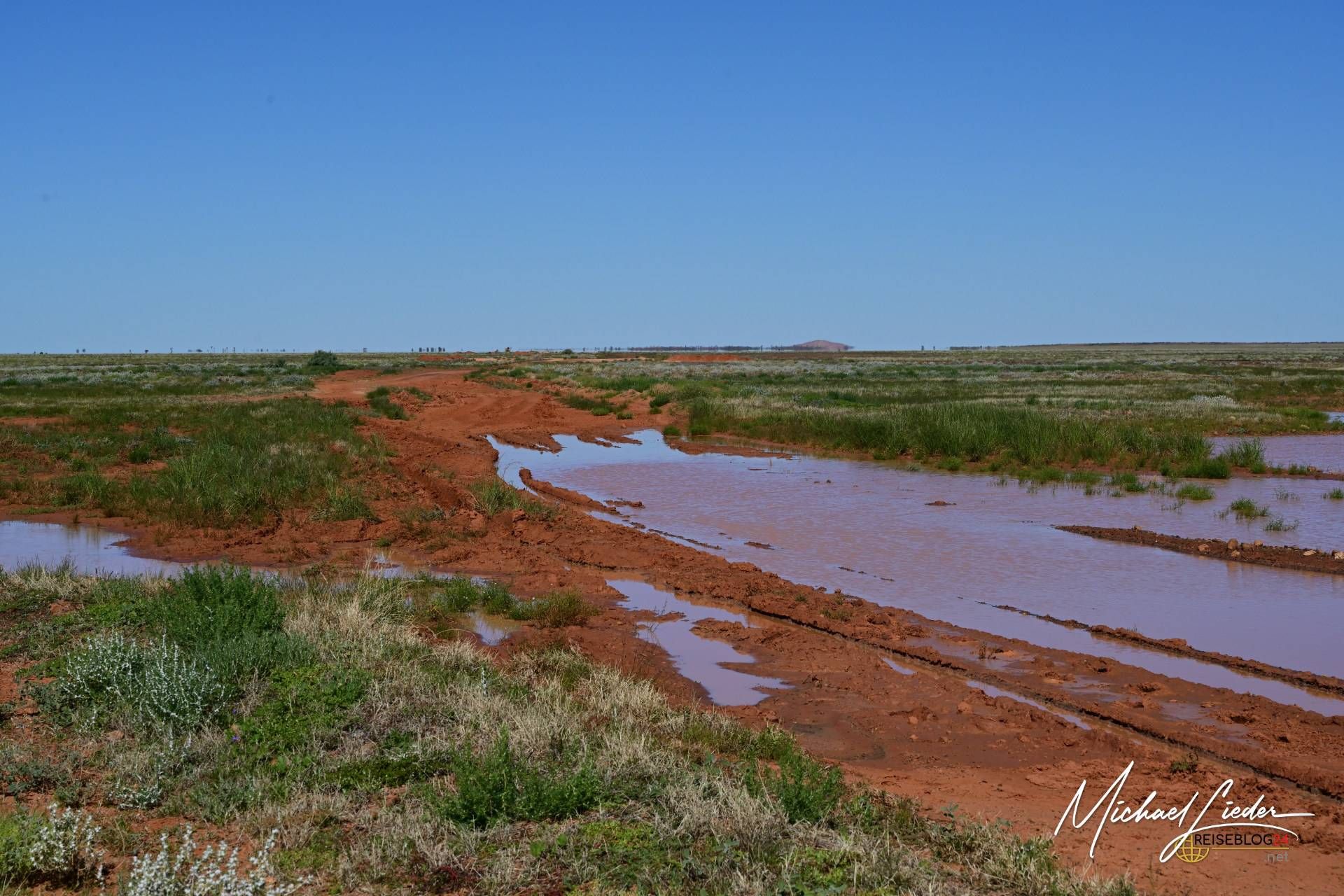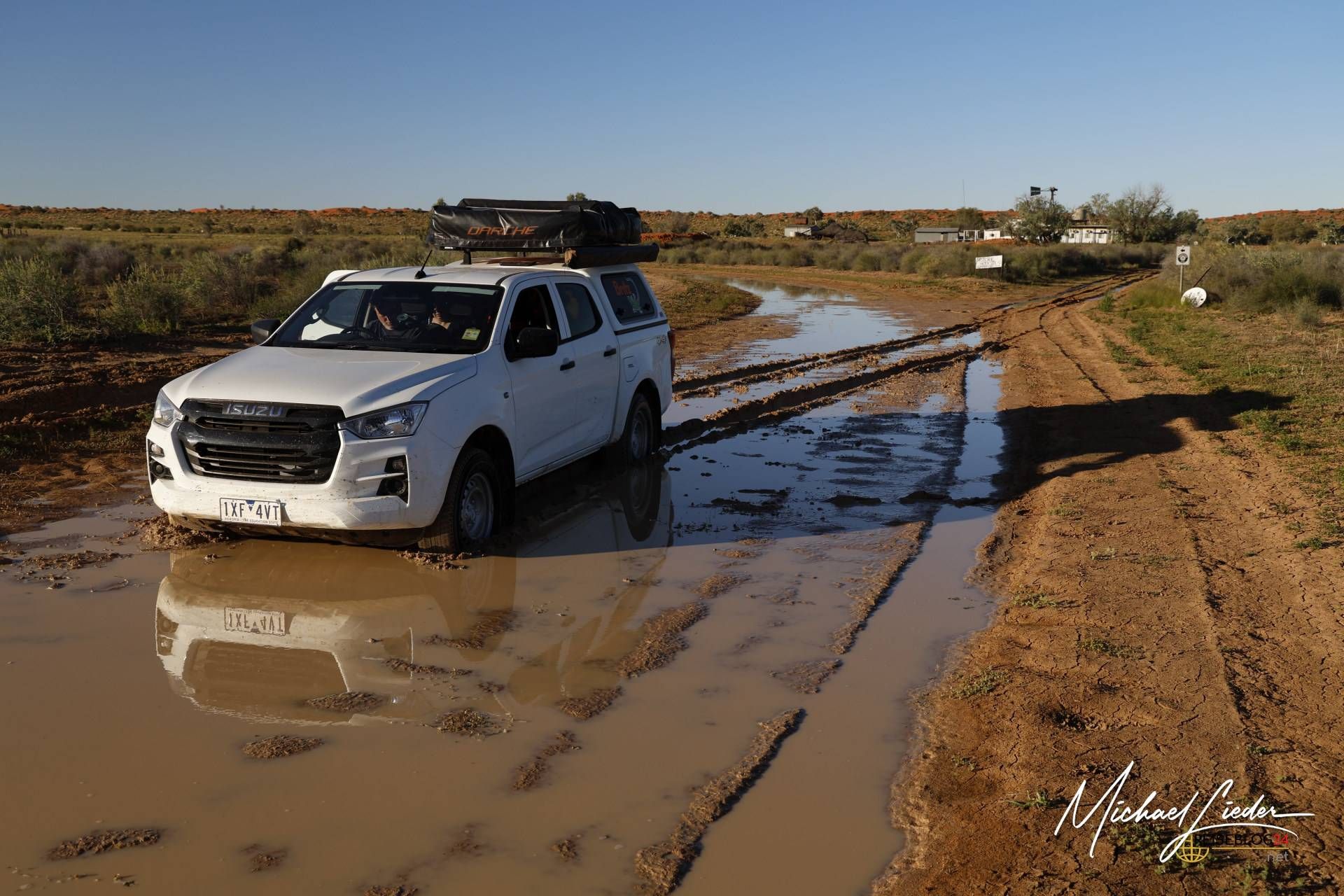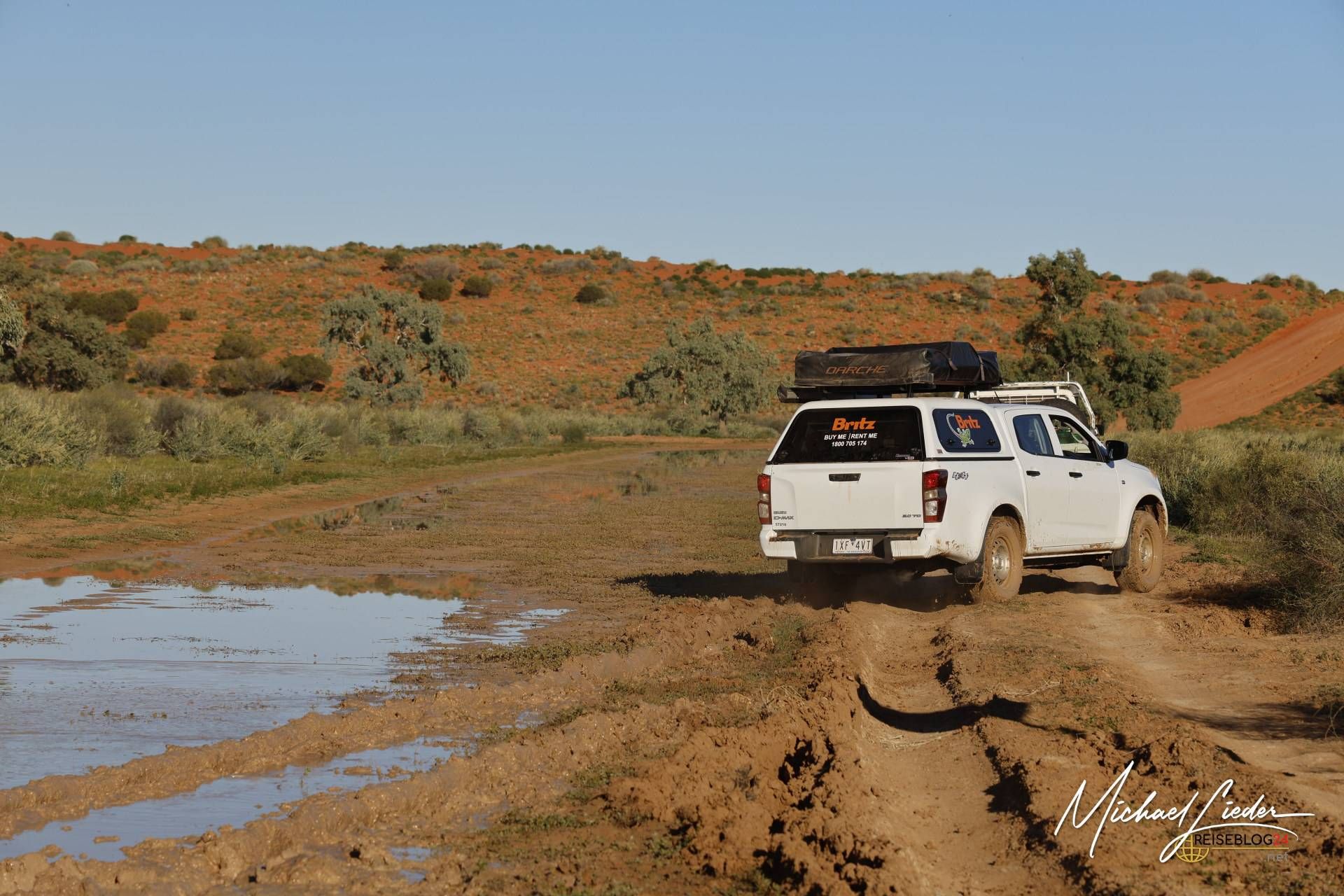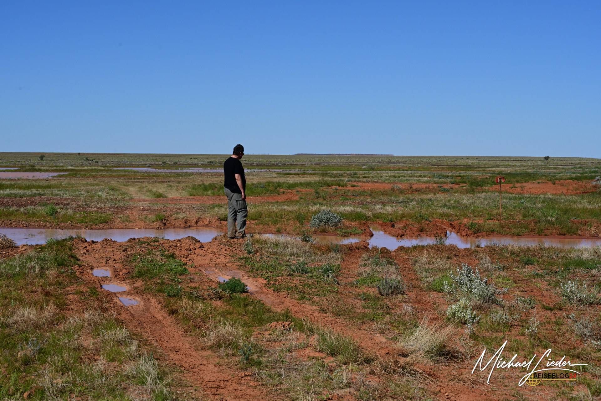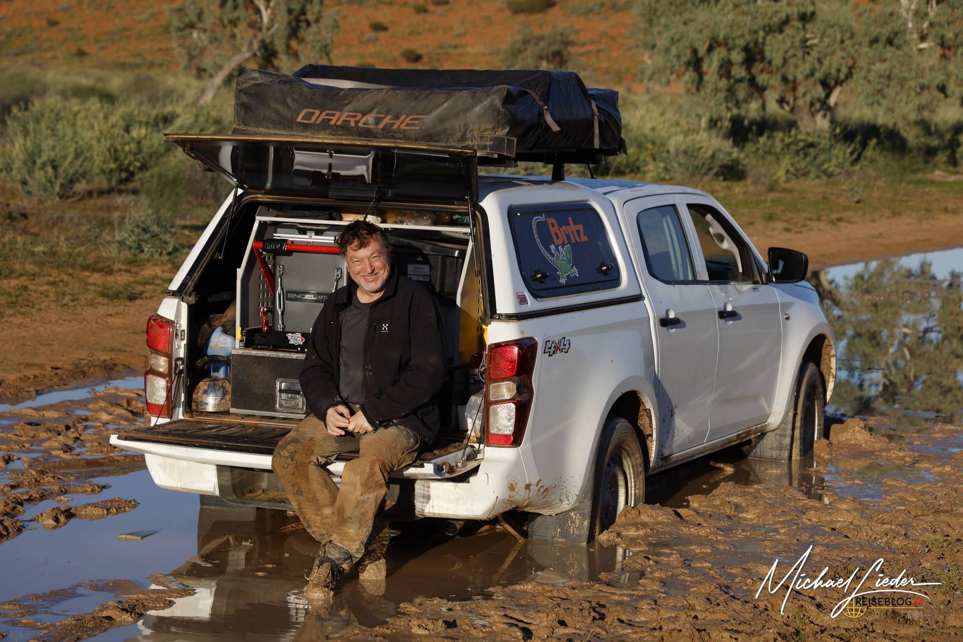Nach einer kurzen Pause, in der wir die stille, fast unheimliche Atmosphäre auf uns wirken ließen, entschieden wir uns, weiterzufahren. Doch dann passierte das, was man als echten Outback-Klassiker bezeichnen könnte. Ich habe eine – sagen wir mal – unscheinbare Pfütze völlig unterschätzt. Was harmlos wirkte, entpuppte sich als wahre Falle.