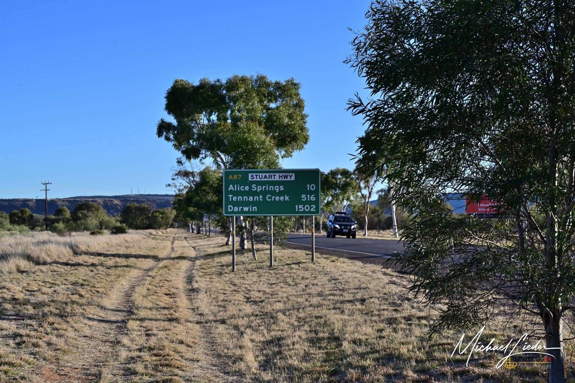 Meine Reise begann in Alice Springs, einer kleinen, aber bedeutenden Stadt im Northern Territory – oft als Tor zum Outback bezeichnet. Von hier aus führte mich der Weg zunächst Richtung Flughafen. Dort angekommen, nahm ich die Straße, die links am Flughafengelände vorbeiführt – der offizielle Startpunkt des Tracks zur Old Andado Station.