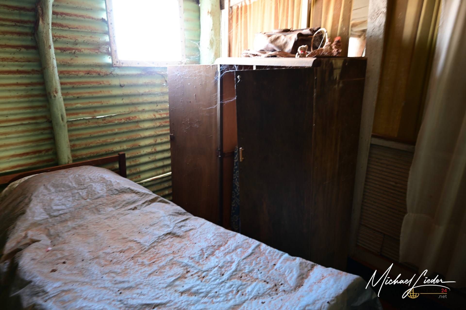 Ein kleiner Erkundungsgang führte mich zum hinteren Teil der Station. Dort entdeckte ich eine Reihe von Hütten, die früher offenbar als Unterkünfte für Reisende dienten. Zu unserer Überraschung waren sie offen – und sogar mit richtigen Betten ausgestattet! Zugegeben, einfach, nur mit Matratzen, aber in unserem Fall ein wahrer Luxus. Die Hütten wirkten, soweit man das an einem verlassenen Ort beurteilen kann, relativ gepflegt.