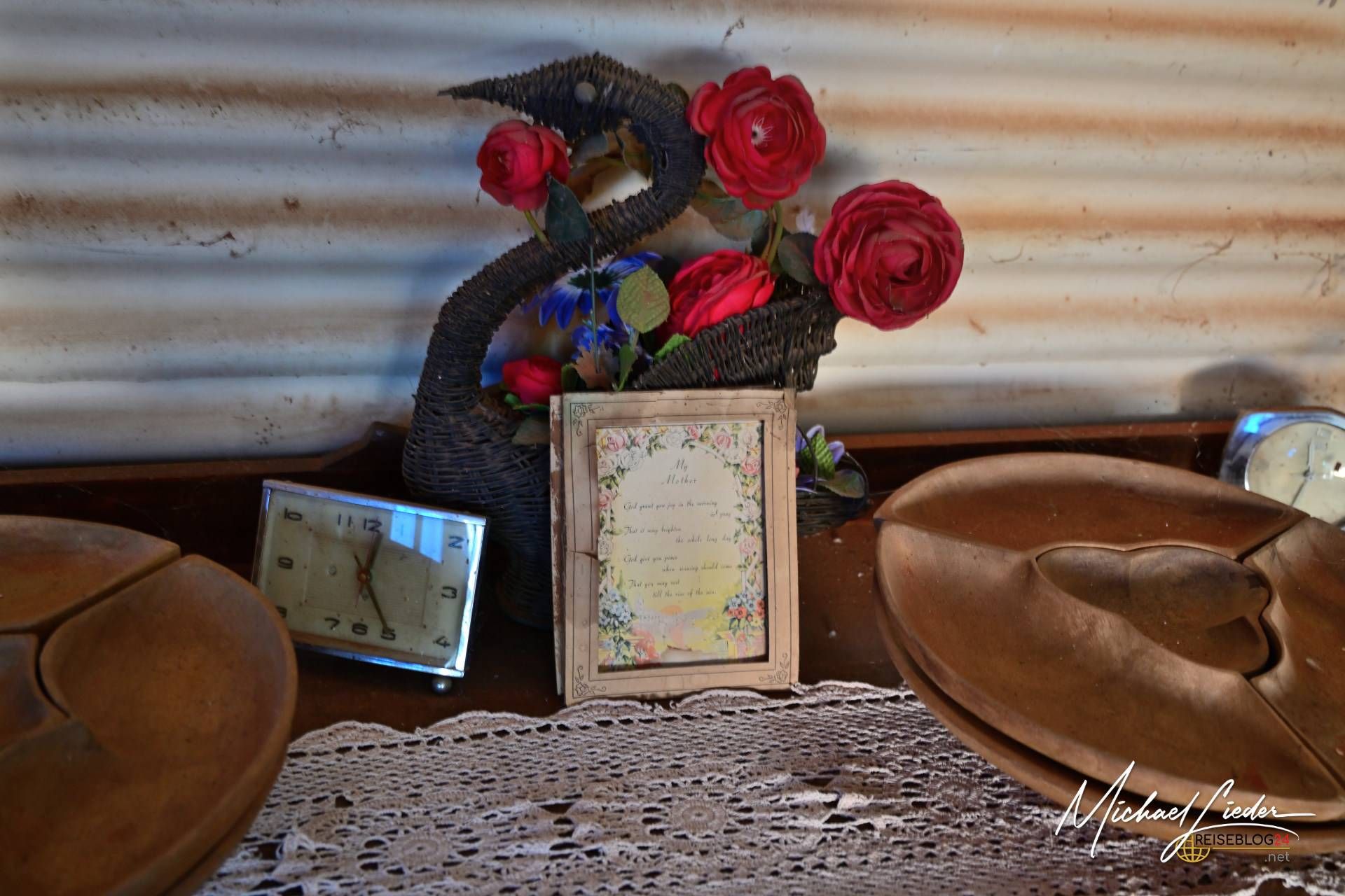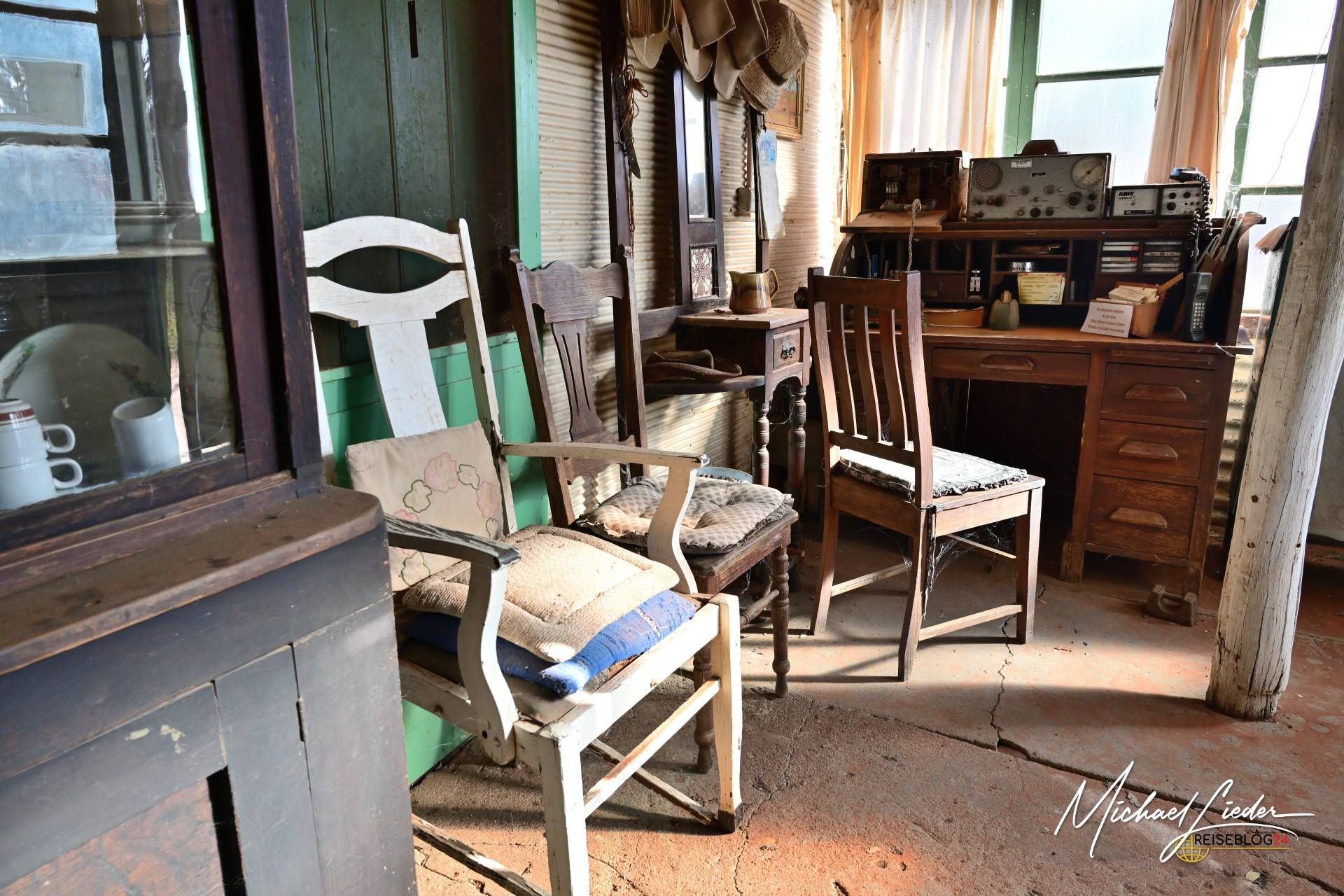 Wir hatten gehofft, jemanden anzutreffen – vielleicht einen Verwalter oder sogar einen Nachfahren der Clarks. Besonders Roland war gespannt, da er bei seinem letzten Besuch noch mit Molly selbst sprechen konnte. Doch diesmal war niemand zu Hause. Kein freundliches Gesicht, keine vertraute Stimme, die uns begrüßte – nur die Stille der Wüste und das entfernte Klappern des Windrades.