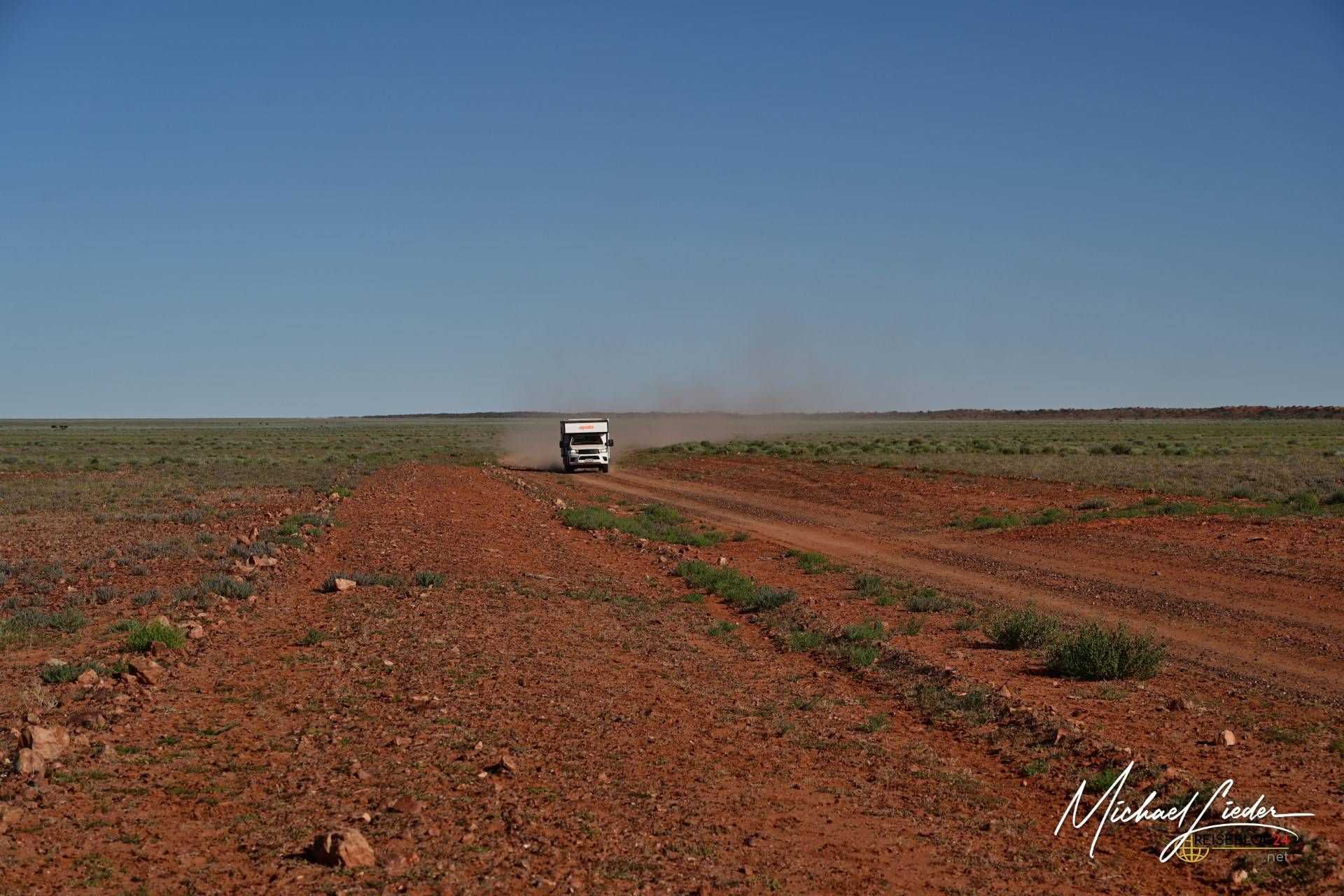 Der Fahrer nickte uns nur kurz zu, ließ uns keine Gelegenheit für lange Dankesreden und verschwand wieder in einer Staubwolke Richtung Station. Einfach und effizient – typisch Outback eben.