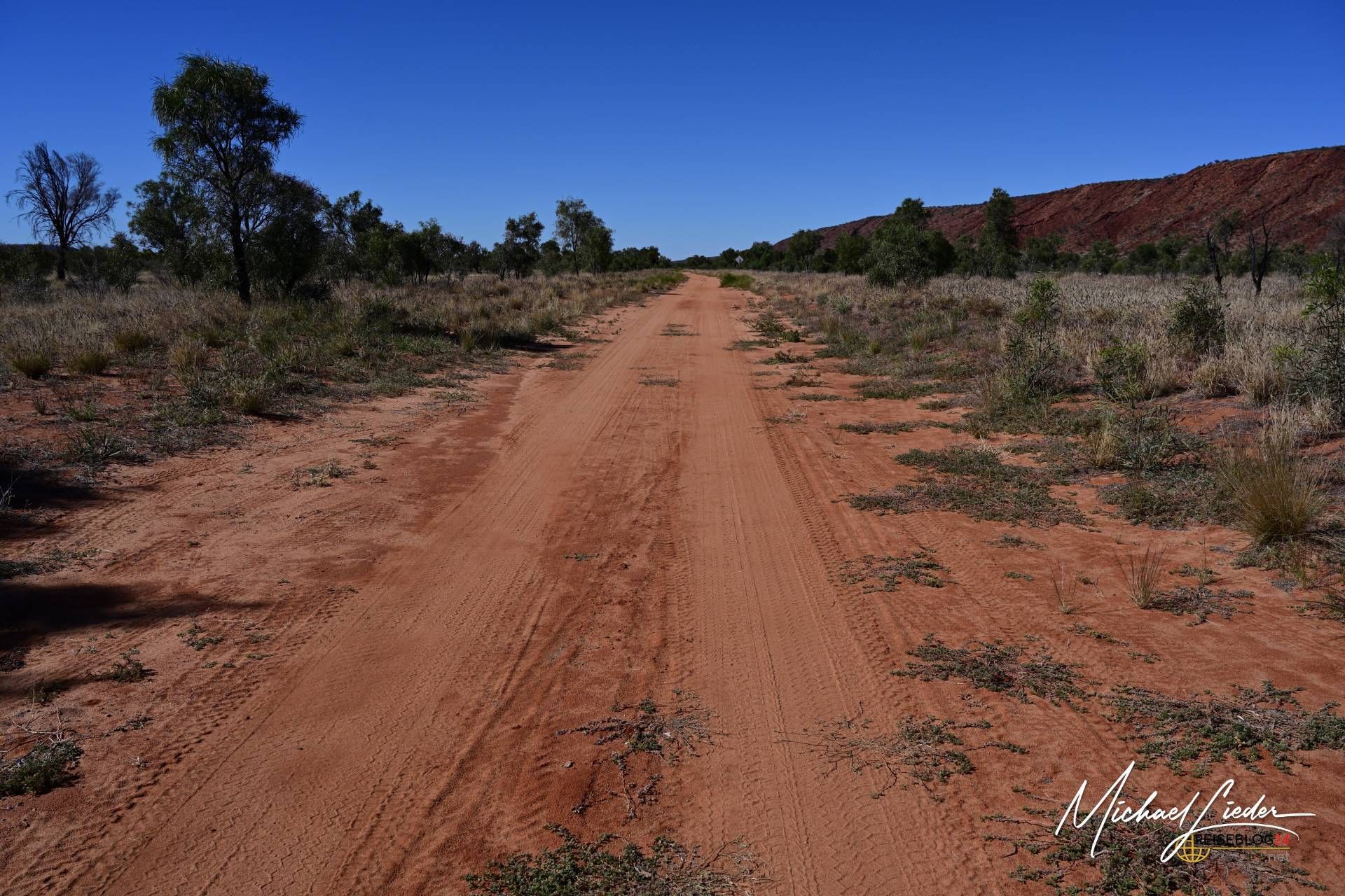 Meine Reise begann in Alice Springs, der kleinen Stadt im Northern Territory es geht in Richtung Flughafen und die Straße links daran vorbei ist der Startpunkt der Tracks. Wenn du auf dem Asphalt der Straße die wilden Spuren von Donuts der Stadtjugend siehst, bist du richtig. Von dort aus führte mich ein langer, staubiger Track durch endlose Weiten und vorbei an kargen Landschaften. Die Vorfreude wuchs mit jedem Kilometer, denn ich wusste, dass ich bald an einem ganz besonderen Ort ankommen würde.