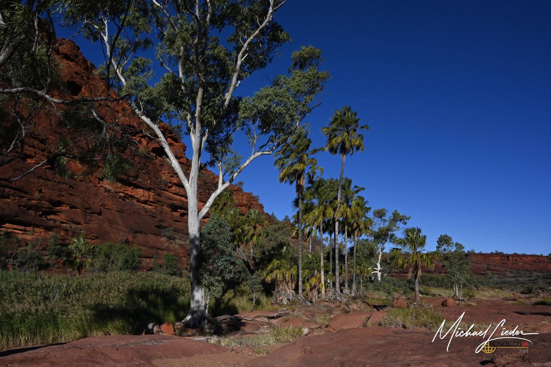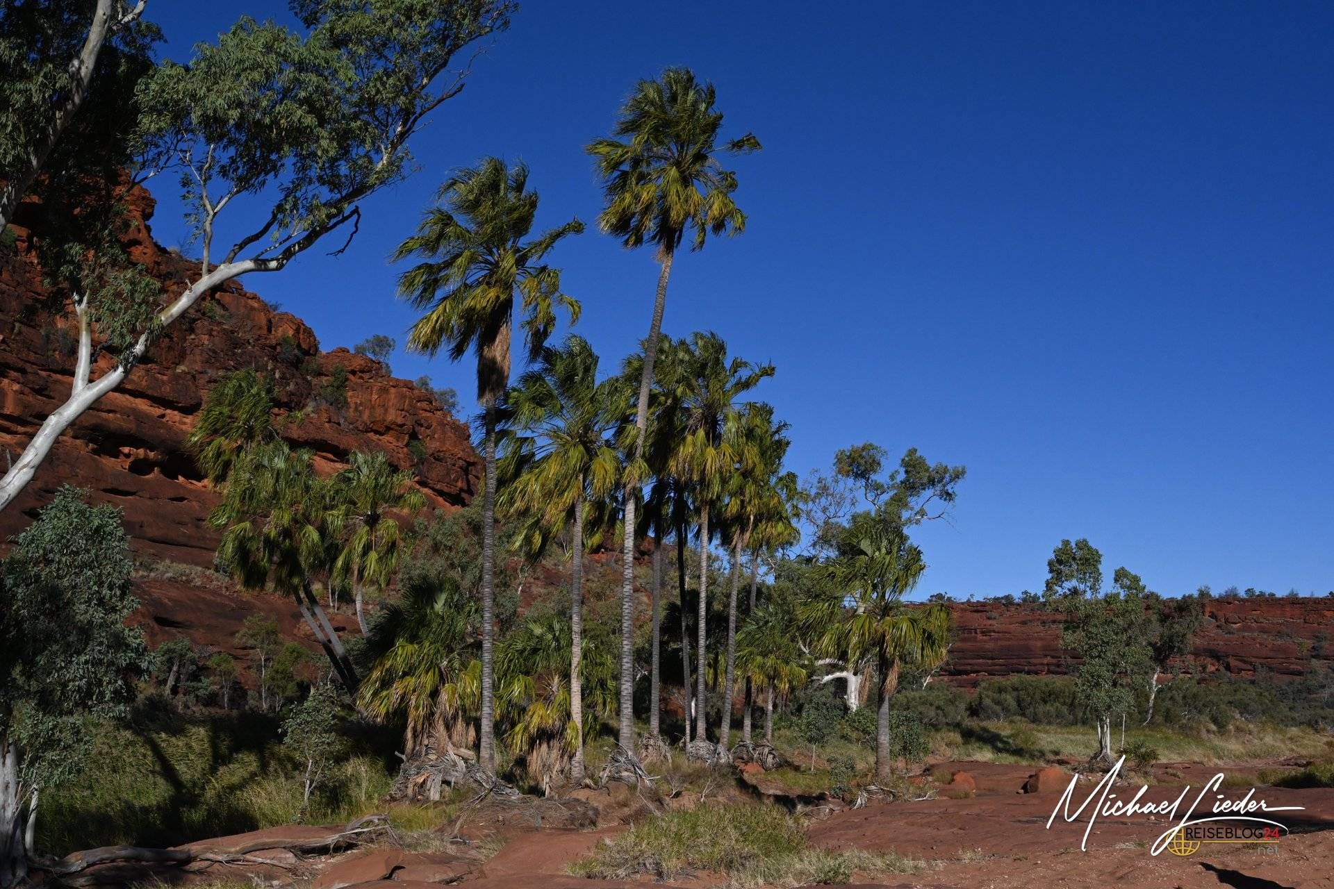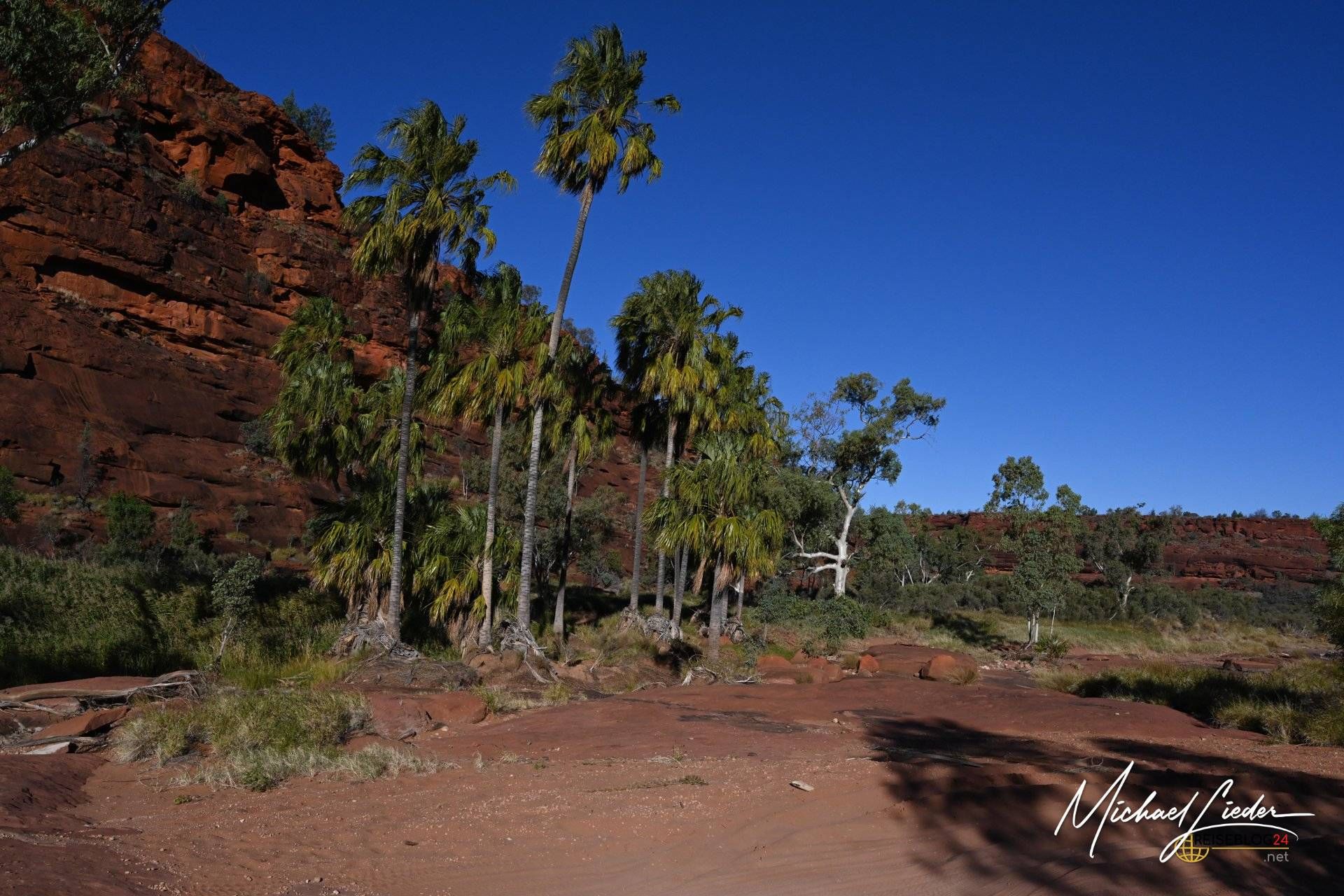Von Palm Valley lässt sich schwer sprechen, ohne ins Schwärmen zu geraten. Dieser Ort ist kein schneller Wow-Moment, sondern ein langsames Begreifen. Einer dieser Plätze, an denen Australien zeigt, was es wirklich kann – jenseits von Postkarten, Klischees und Instagramfiltern. Rote Felsen, die in der Sonne glühen, und dazwischen Palmen, die hier eigentlich niemand erwarten würde. Und doch stehen sie da. Stolz. Unerschütterlich. Seit sehr langer Zeit.