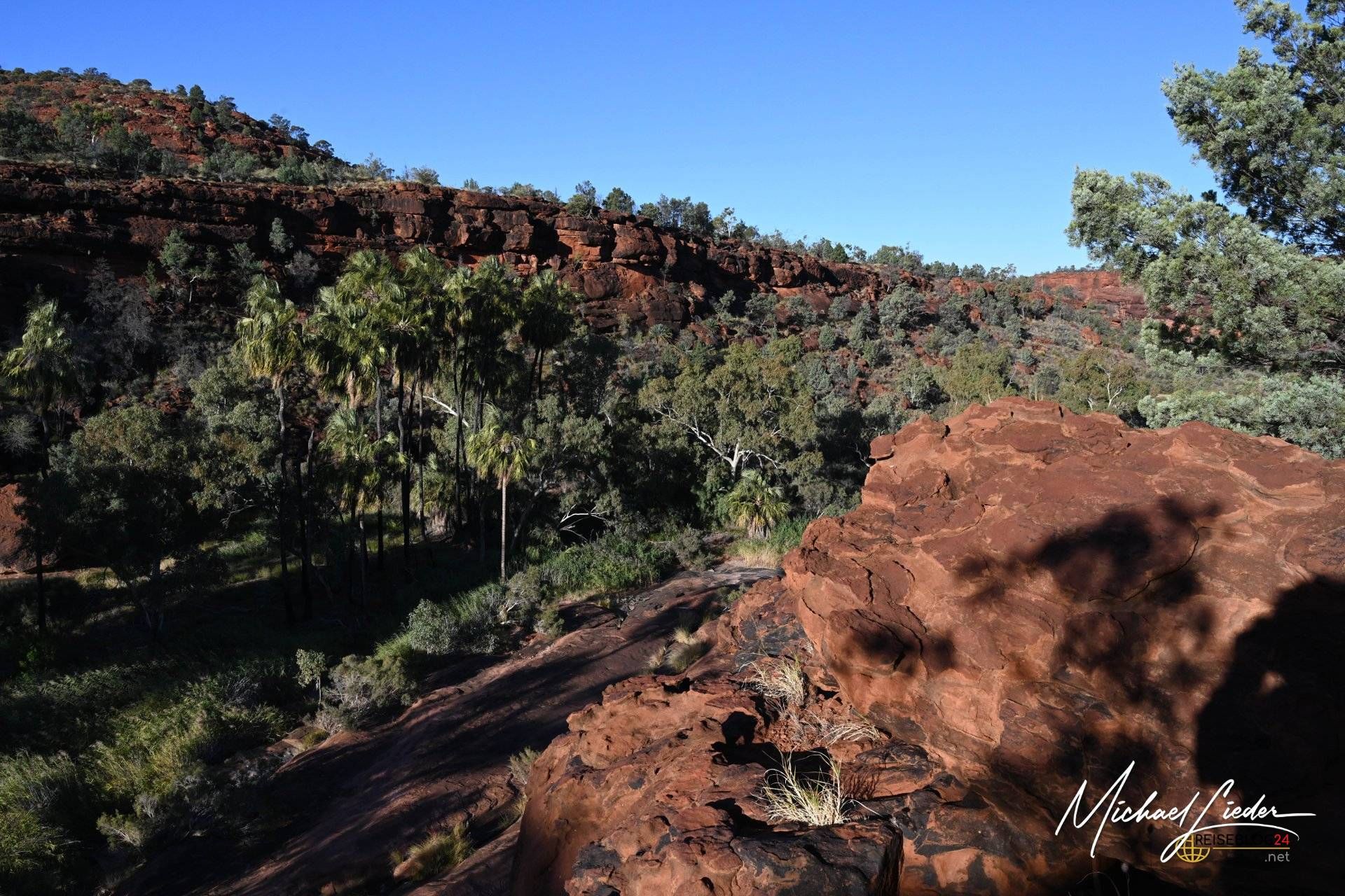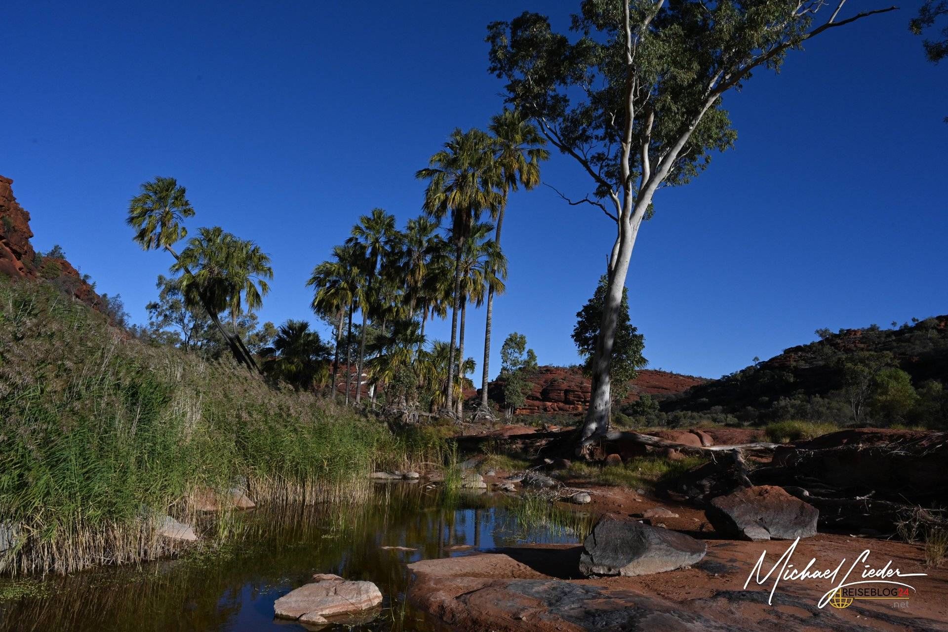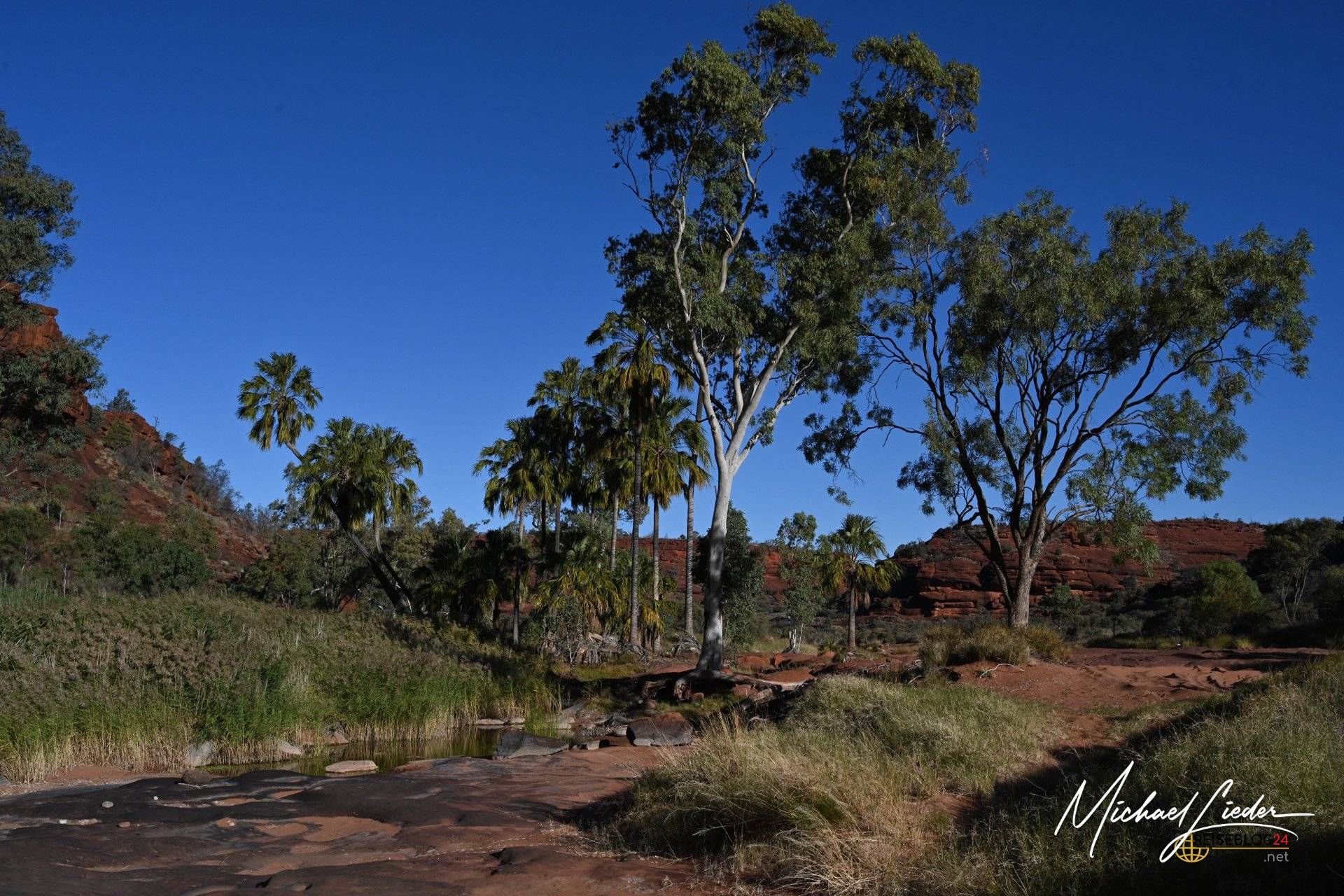 Von Palm Valley lässt sich schwer sprechen, ohne ins Schwärmen zu geraten. Dieser Ort ist kein schneller Wow-Moment, sondern ein langsames Begreifen. Einer dieser Plätze, an denen Australien zeigt, was es wirklich kann – jenseits von Postkarten, Klischees und Instagramfiltern. Rote Felsen, die in der Sonne glühen, und dazwischen Palmen, die hier eigentlich niemand erwarten würde. Und doch stehen sie da. Stolz. Unerschütterlich. Seit sehr langer Zeit.
