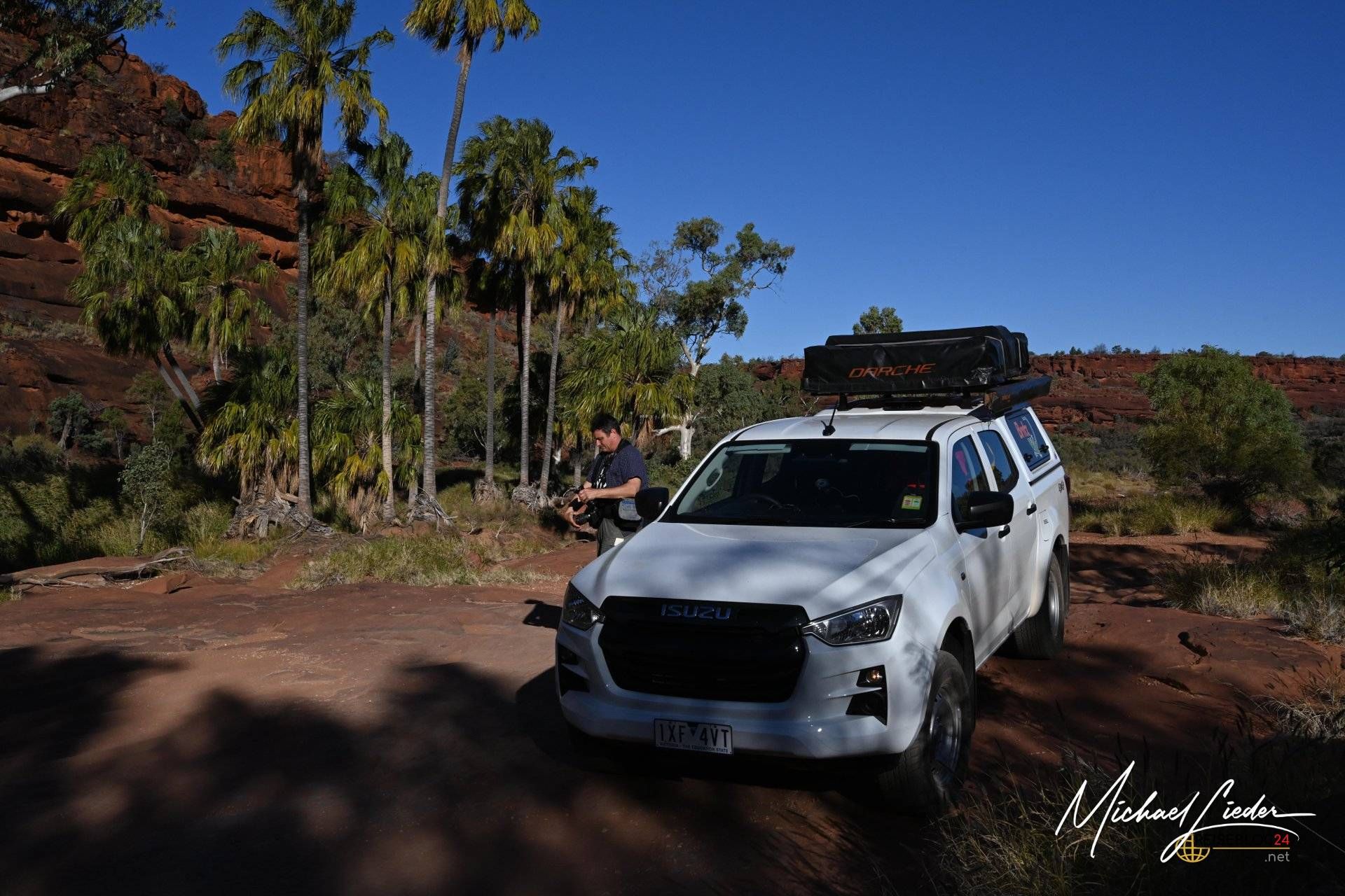Die Fahrt ins Palm Valley war bereits ein kleines Abenteuer für sich und gab uns einen ersten Vorgeschmack auf die raue und ungezähmte Schönheit des australischen Outback. Die anspruchsvolle Strecke forderte nicht nur unser Allradfahrzeug, sondern auch unsere Aufmerksamkeit und Fahrkünste. Doch genau das machte den Reiz dieser Tour aus – die Mischung aus Herausforderung und Belohnung.