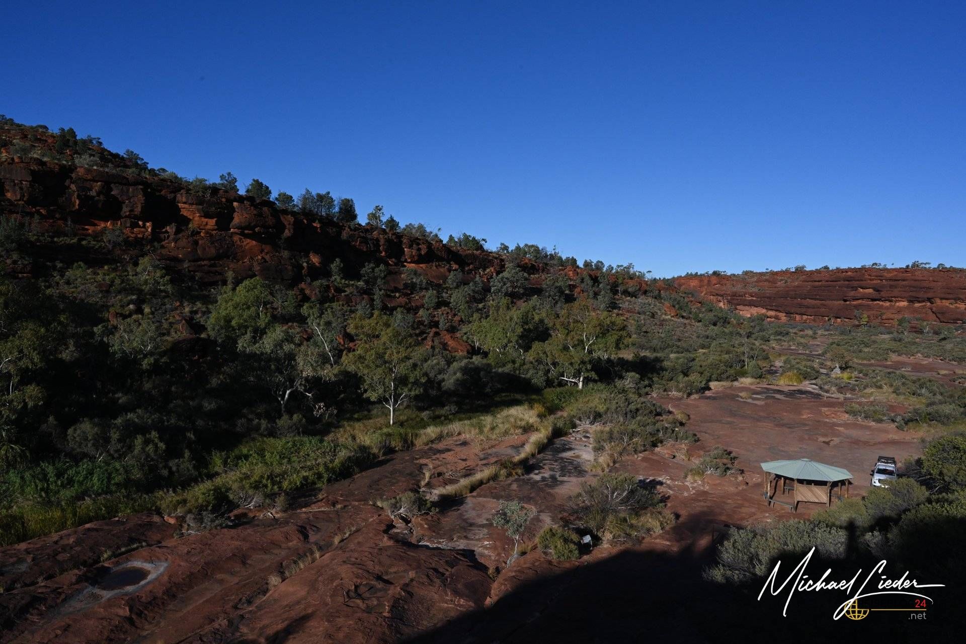 Von Hermannsburg erreicht man nur mit dem Geländewagen nach 22 km das Palm Valley mit seinen einzigartigen red cabbage palms, nach denen das Tal benannt ist. In der Nähe der Cycadeen Gorge gibt es Campingplätze. Der Zeltplatz ist mit Toiletten, warmen Duschen, Gasgrills und Picknicktischen ausgestattet. Unbedingt Online-Vorbuchen, wie so oft in Australien, wer nicht auf der Gästeliste des Rangers steht, darf nur im Overflow Bereich übernachten. Von hier starten einige schöne Wanderungen, eine Karte findet man auf der Infotafel des Camps. Weiter auf etwa halber Strecke, ist eines der wenigen Wasserlöcher, das immer Wasser führt. Die paar Kilometer weiter bis zu den Palmen lohnen sich, besonders am Abend zum Sonnenuntergang oder früh am Morgen zum goldenen Sonnenaufgang. Eine Wanderung entlang des Tales auf einem gut ausgeschilderten Rundweg dauert ca. 2,5 Std. und sollte auf jeden Fall zum Besuchsprogramm gehören, also genug Zeit dafür reservieren!