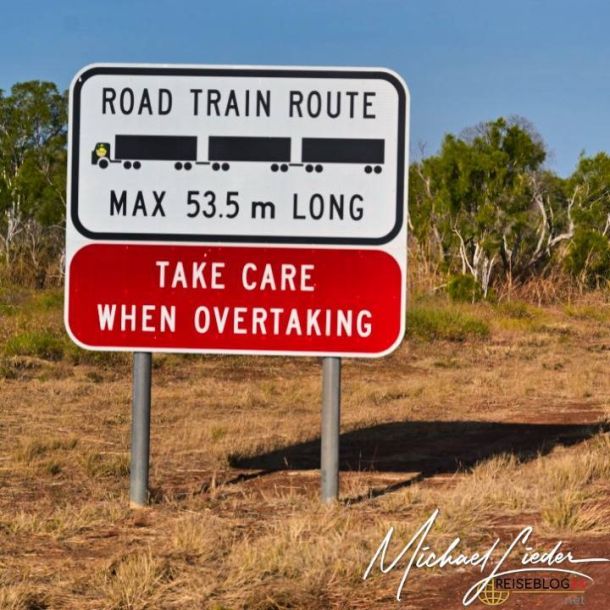 - Vorsicht beim Überholen der Road Trains (LKW-Gespanne bis über 50 m)