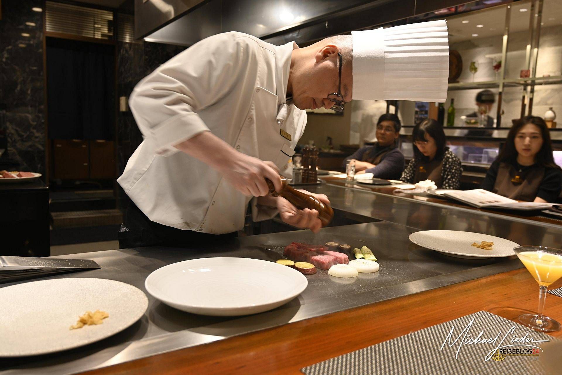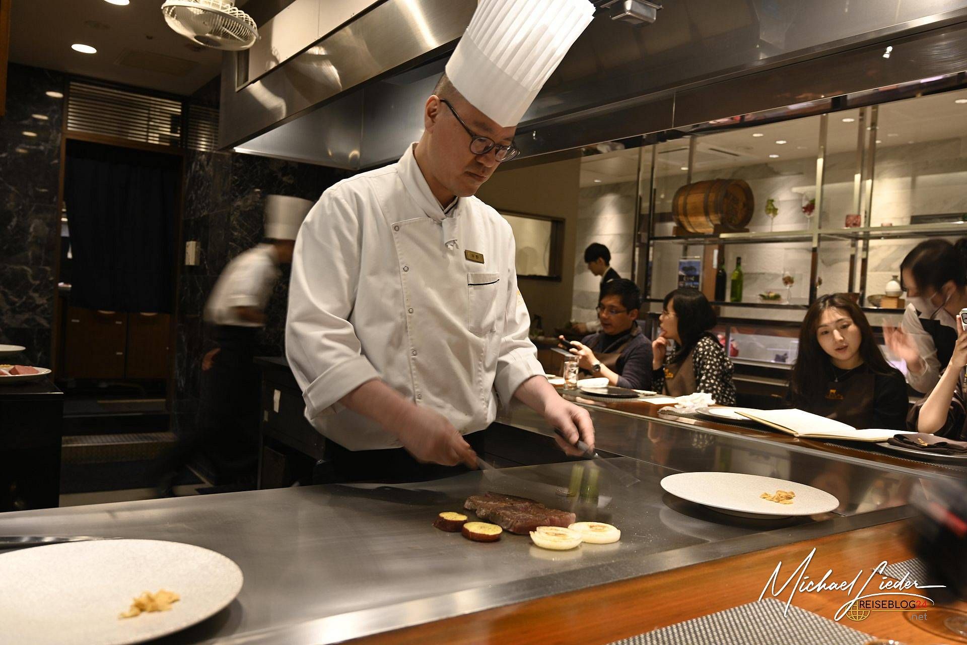 Schon Wochen vor Abflug begann meine Vorbereitung. Nicht etwa auf Tempel, Zugverbindungen oder japanische Etikette – nein, ich studierte Speisekarten und Tischordnungen. Denn wer in einem renommierten Kobe-Restaurant speisen will, muss eines tun: frühzeitig reservieren. Ich entschied mich für das Restaurant Kobe Plasier, verborgen im Erdgeschoss des "the B Kobe" Hotels – von außen unscheinbar, von Feinschmeckern jedoch flüsternd weiterempfohlen. Die Buchung war präzise geplant. Neben dem Datum galt es, eine exakte Uhrzeit zu wählen, denn spontane Besuche sind hier so willkommen wie ein Gabelmesser beim Sushi-Essen. Wer rechtzeitig reserviert, darf sich sogar seinen Platz am Tresen reservieren – der logische Ort für alle, die sich das Schauspiel der Zubereitung nicht entgehen lassen wollen. Showküche auf Japanisch – diszipliniert, kunstvoll und mit der Exaktheit eines Uhrwerks.