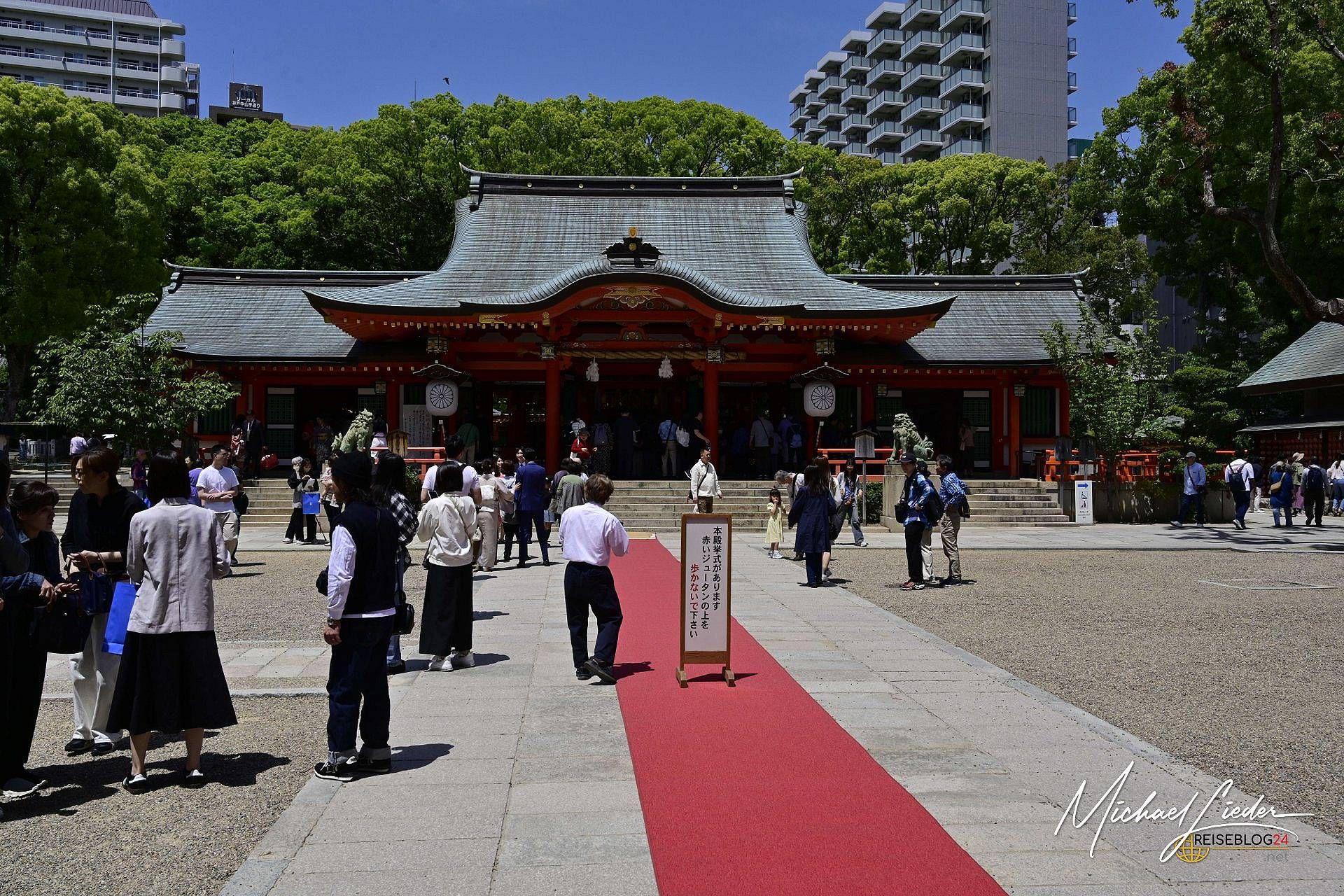 Auf den ersten Blick wirkt Kobe wie eine von vielen Großstädten in Japan – funktional, geschäftig, ein wenig gesichtslos. Aber auf den zweiten Blick, oder besser gesagt: beim ziellosen Herumirren nach dem Verdauungsspaziergang, offenbart sich der Charme. In der Innenstadt stießen wir plötzlich auf einen großen Shintō-Schrein – und auf eine Szene, die so japanisch war, dass man sie sich kaum hätte ausdenken können.