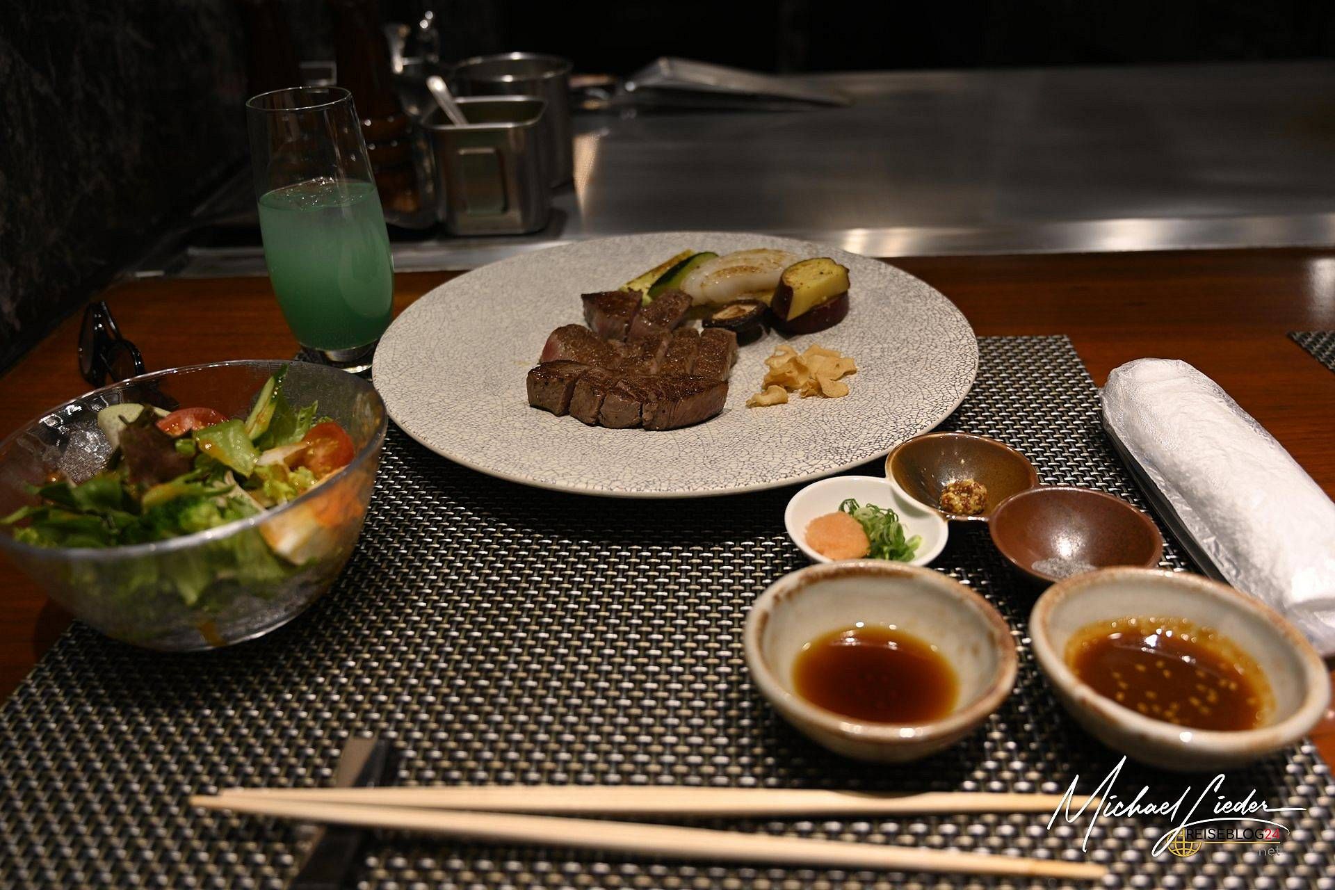 Wir hatten vorgesorgt – Reservierung an der Theke, erste Reihe. Denn wenn schon sündigen, dann mit Stil und direktem Blick auf das heiß zischende Teppan. Das Fleisch wurde mit einer Hingabe zubereitet, die mich fast vergessen ließ, wie sehr mein Kontostand gerade weinte. Aber in diesem Moment, mit Stäbchen in der einen und Glückseligkeit in der anderen Hand, war alles gut. Japanisch gut.