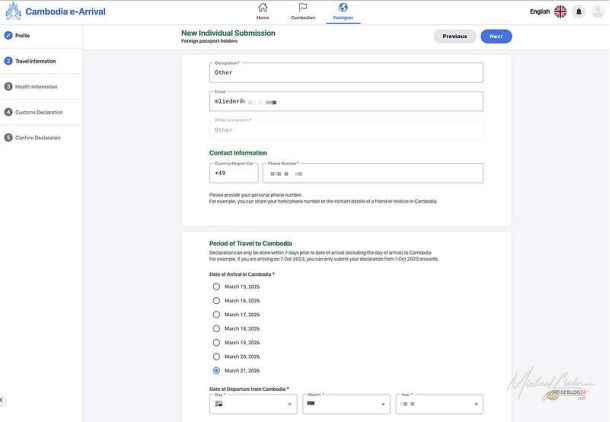 • Cambodia Arrival nicht vergessen