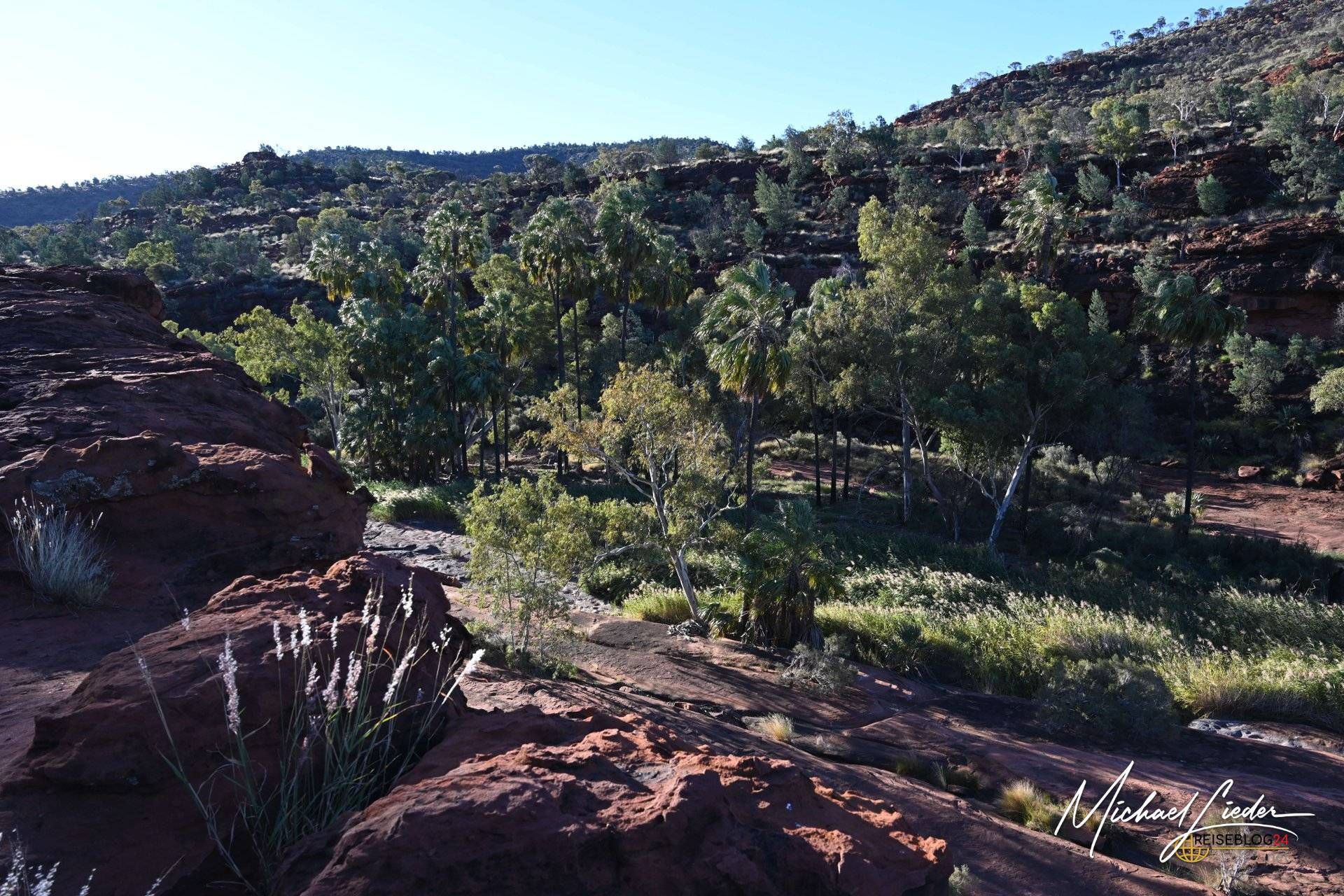 Von Palm Valley lässt sich schwer sprechen, ohne ins Schwärmen zu geraten. Dieser Ort ist kein schneller Wow-Moment, sondern ein langsames Begreifen. Einer dieser Plätze, an denen Australien zeigt, was es wirklich kann – jenseits von Postkarten, Klischees und Instagramfiltern. Rote Felsen, die in der Sonne glühen, und dazwischen Palmen, die hier eigentlich niemand erwarten würde. Und doch stehen sie da. Stolz. Unerschütterlich. Seit sehr langer Zeit.